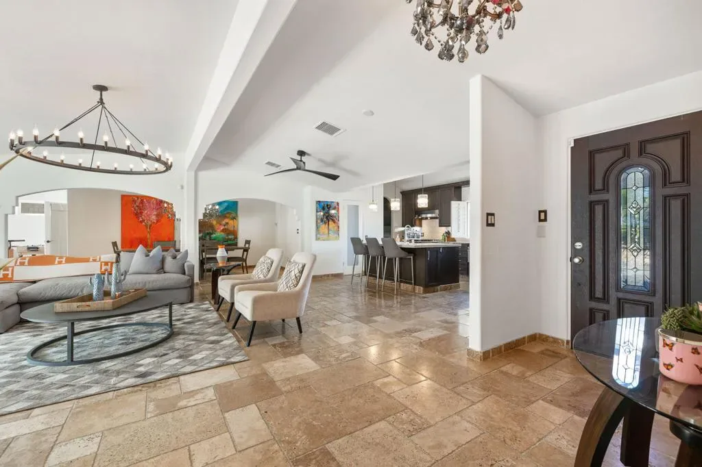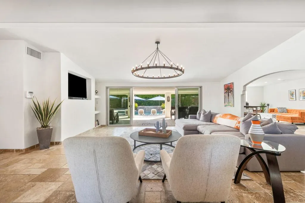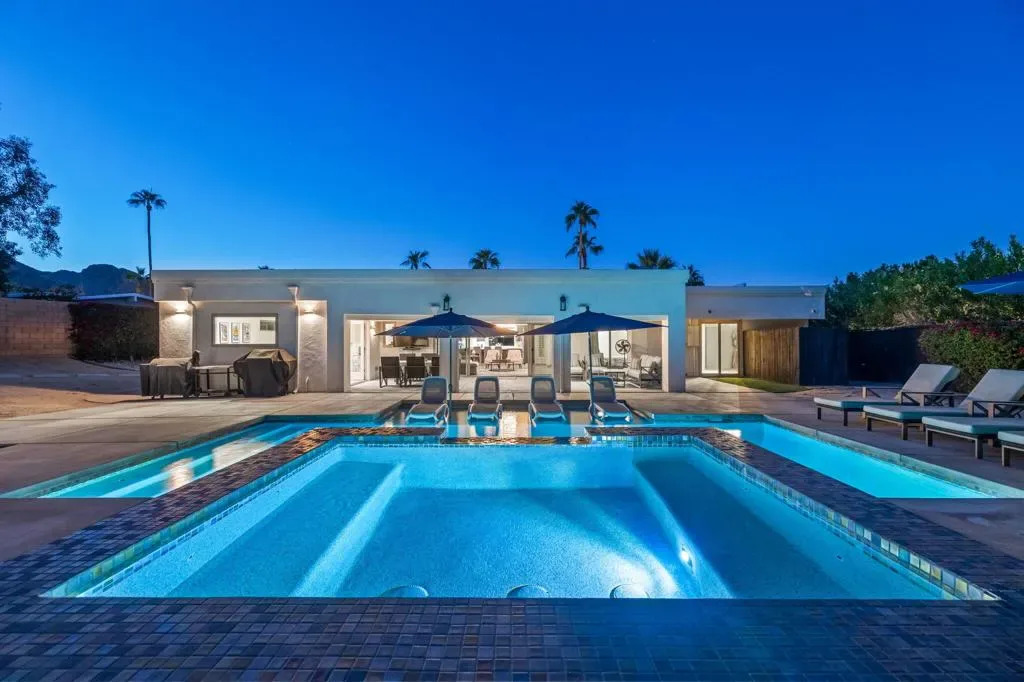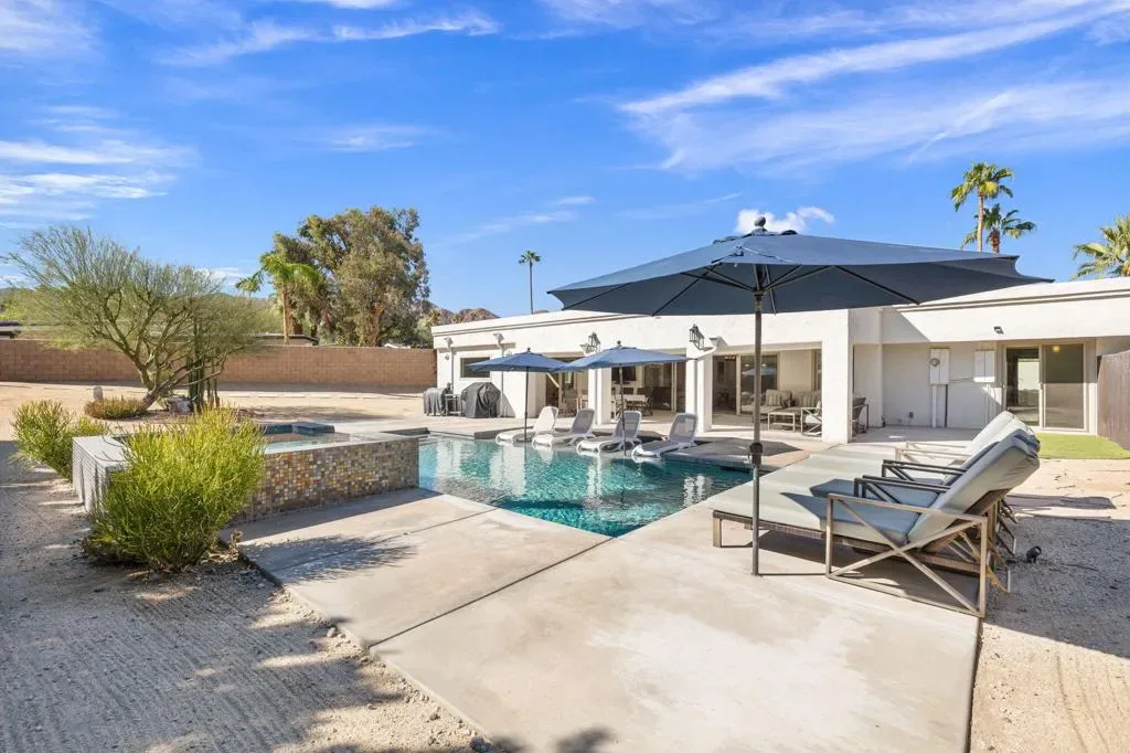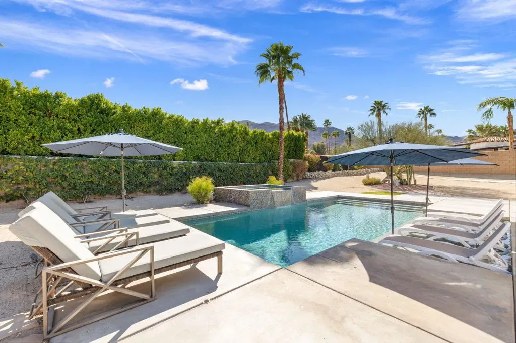 PRICED to SELL. Magnesia Falls Cove is a hidden gem in the heart of Rancho Mirage. No HOA hassles! This designer desert home has been a great family retreat and occasional rental. FULLY FURNISHED and ready for the season, furniture, amazing art and accessories included in the price! 4 bedrooms and 3 baths in 2,580 square feet on an oversized lot. 2 car garage. Great open kitchen for cooking and entertaining, LARGE living room, dining room and den/media room. Quiet and private PRIMARY SUITE with giant shower and massive closet, outdoor tub & shower as a fun bonus area. AND 3 additional bedrooms! UPDATED resort pool with Pentair equipment package, pebble finish, tanning shelf, umbrellas, raised spa with waterfall. NO work to be done, just arrive, take in the mountain views and RELAX!2 minutes to ”The River” shopping and dining, 10 minutes to premier shopping and dining on EL Paseo Drive. Surrounded by hiking, golf and tennis opportunities. NOTE: INSTANT gratification found HERE and a quick, clean escrow is available.