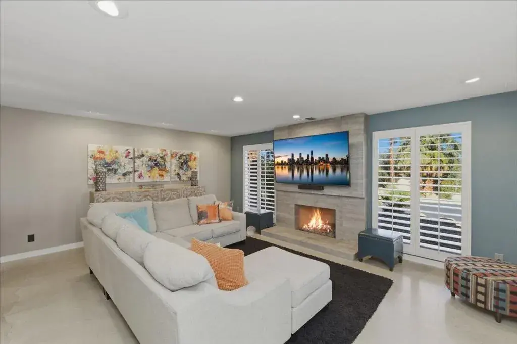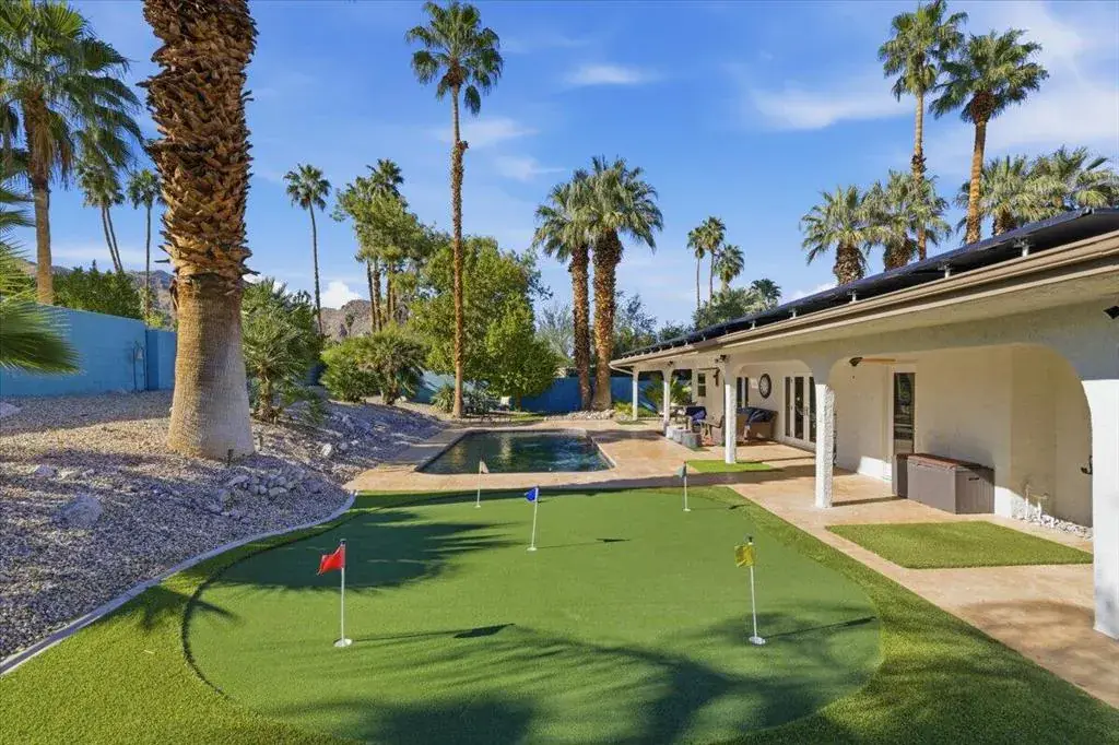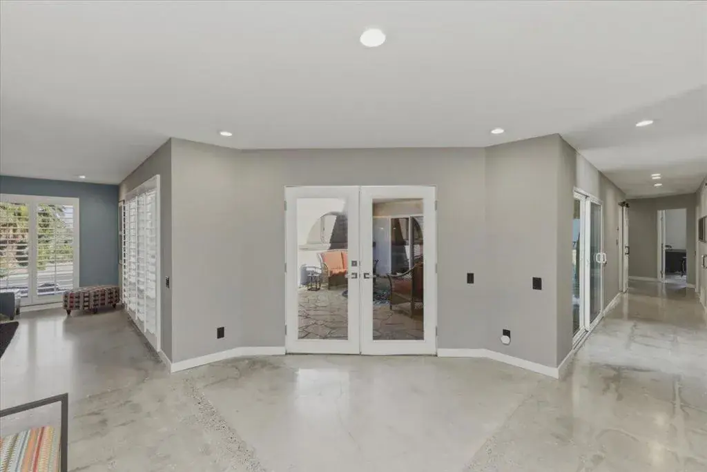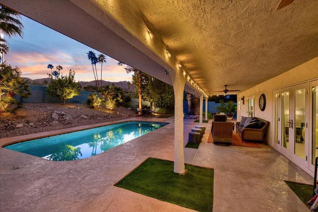 Magnesia Falls Cove! Edgy, eclectic, and impeccably clean, this timeless contemporary showcases polished concrete floors and a sleek galley kitchen open to the family room–ideal for effortless entertaining. Formal dining features a stylish coffee bar, perfect for hosting or everyday enjoyment.The residence offers two spacious ensuite bedrooms with beautifully updated modern baths, plus a versatile third bedroom/office and an additional guest bath.An inviting entry courtyard may be enclosed for enhanced privacy, while the exceptionally private backyard delivers resort-style living with a PebbleTec pool, artificial turf, putting green, and a terraced citrus garden–creating your own personal Shangri-La.Stunning. Effectively priced at $1,398,500.Conveniently located near premier hiking, theaters, restaurants, and retail.And the views? Simply magnificent.