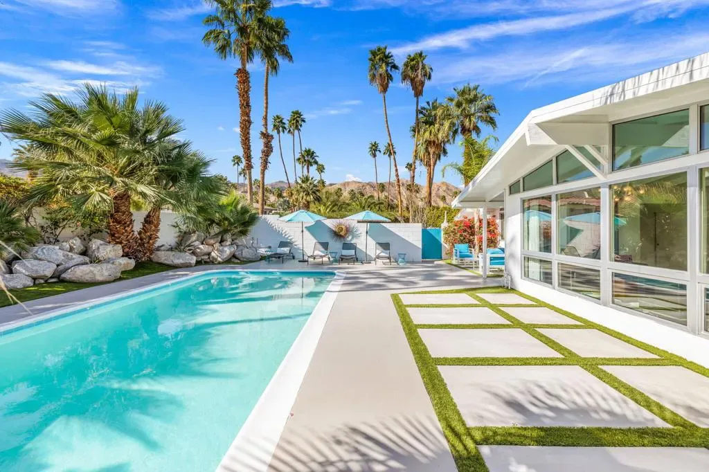 ****NEW PRICE**** 3/16/2026A True ‘Mid-Century’ Jewel in Magnesia Falls CoveThis stylish 1956 Mid-Century home offers three bedrooms plus a flexible office/den or optional fourth bedroom. The open floor plan seamlessly connects the living room, kitchen, and dining area, thoughtfully designed to showcase the home’s iconic architecture.WALLS OF GLASS blur the line between indoors and out, flooding the interior with natural light and framing breathtaking poolside, mountain, and desert views. Enjoy sweeping mountain vistas from nearly every angle, both inside and outside.Outdoor lounging spaces are ideal for relaxing, entertaining, or simply soaking in the beauty of the cove. This is a rare opportunity to own an architecturally significant Mid-Century retreat in one of the area’s most desirable neighborhoods.Additional features include OWNED SOLAR. Many homes of this era and style in the neighborhood are believed to have had involvement from television host Art Linkletter, adding to the historic allure of this exceptional property.