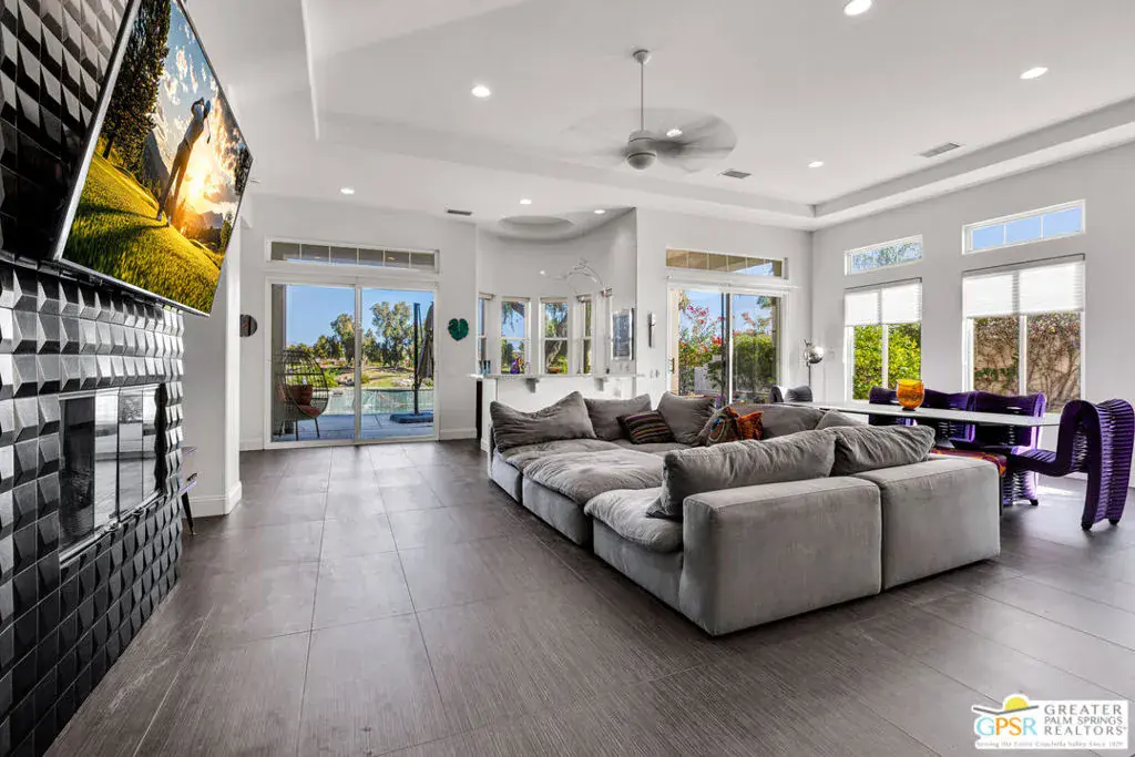 A true backyard oasis situated directly on the golf course, with expansive fairway and mountain views. Enjoy relaxed desert living with a private pool and spa, creating the perfect outdoor retreat. Inside, high ceilings enhance the open floor plan, offering a light and airy feel throughout. The dining area flows seamlessly into a chef’s kitchen featuring granite countertops, black stainless steel appliances, a center island, breakfast bar, dinning area, and ample cabinetry. Additional features include a water softener system, instant hot water throughout, newer dual-zone HVAC units, and a leased 48-panel solar system (Power Purchase Agreement) that produces power well beyond the current homeowner’s usage. The primary suite offers direct patio access and a spa-like bath with walk-in glass-enclosed shower, soaking tub, dual vanities, and two walk-in closets. Guest bedrooms are thoughtfully separated from the primary suite. This home is part of a beautifully maintained, guard-gated community with additional roving security and low HOA dues. HOA benefits include cable TV, lighted tennis and pickleball courts, a community pool/spa, and concierge trash service. Whether full-time or seasonal, this home offers the best of desert living in the heart of Rancho Mirage.
