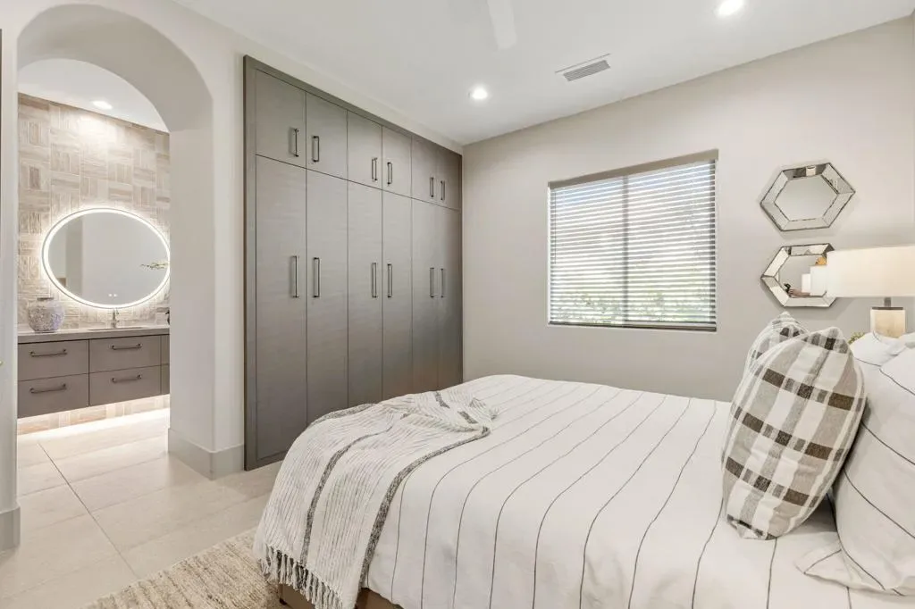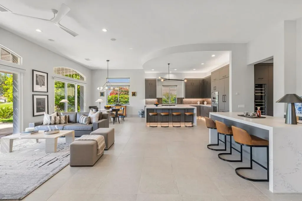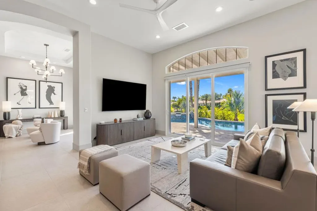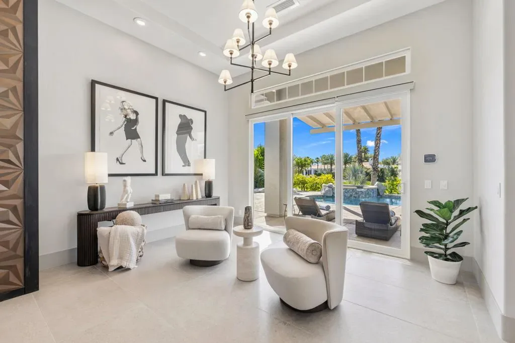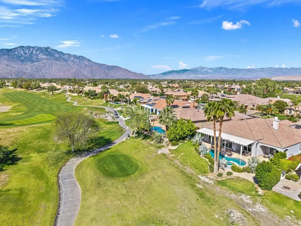 Located in the highly desirable Mira Vista community in Rancho Mirage, this beautifully upgraded 3-bedroom, 3.5-bathroom residence with a stunning office offers sophisticated desert living in an exceptional setting overlooking the 17th fairway of the Gary Player golf course.From the moment you enter, a dramatic custom-tiled fireplace makes an unforgettable statement, anchoring the living space with architectural elegance. Expansive interiors are thoughtfully designed for both grand entertaining and relaxed everyday living, seamlessly blending refined finishes with effortless comfort.The custom chef’s kitchen is both elegant and functional, featuring Thermador appliances, custom cabinetry with premium Fenix finishes, and a striking oversized Compac Quartz island that anchors the space. Just beyond, a sophisticated wet bar complete with a Thermador wine tower, refrigerator, and ice maker creates the ultimate setting for hosting in style.The primary suite occupies its own private wing of the home, offering a peaceful retreat with custom built-in cabinetry and direct access to the backyard. The spa-inspired primary bathroom includes two walk-in closets, dual vanities and a soaking tub designed for indulgent relaxation.Step outside to a beautifully designed backyard with a pool and spa, a pergola providing shaded lounging space, and lush, thoughtfully curated landscaping that ensures both privacy and tranquility.This exceptional Mira Vista home combines thoughtful upgrades, elegant design, and a prime location. Schedule your private showing today!
