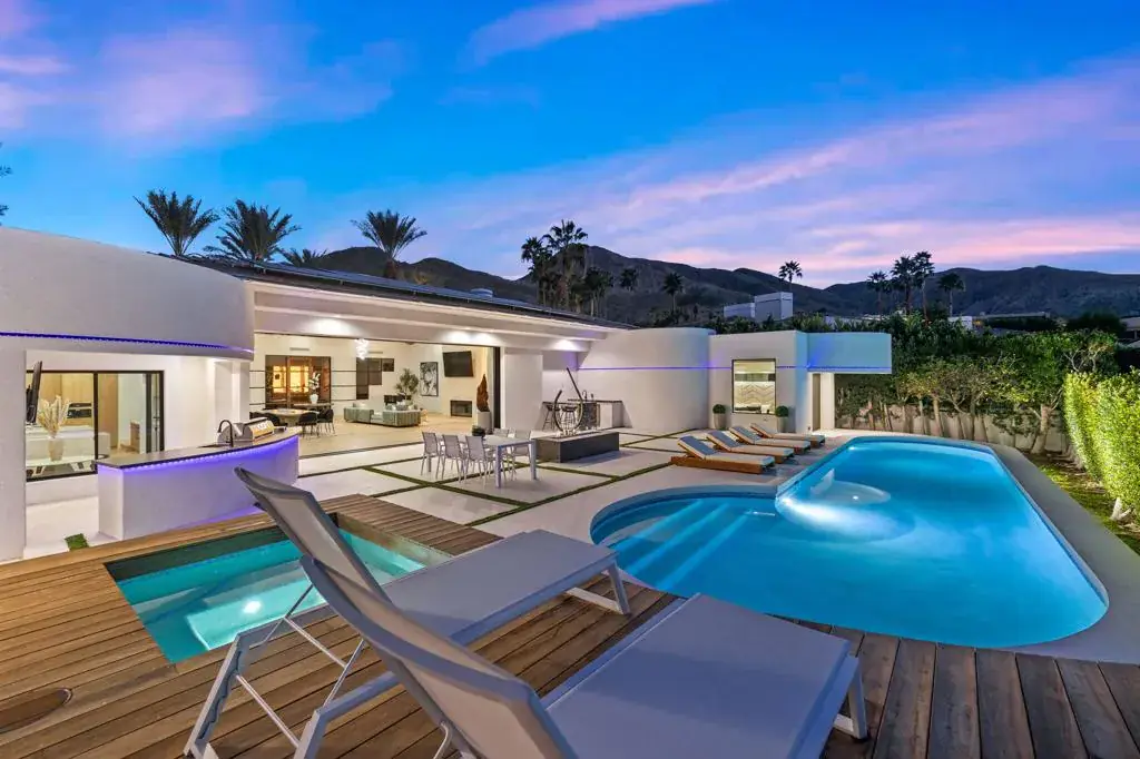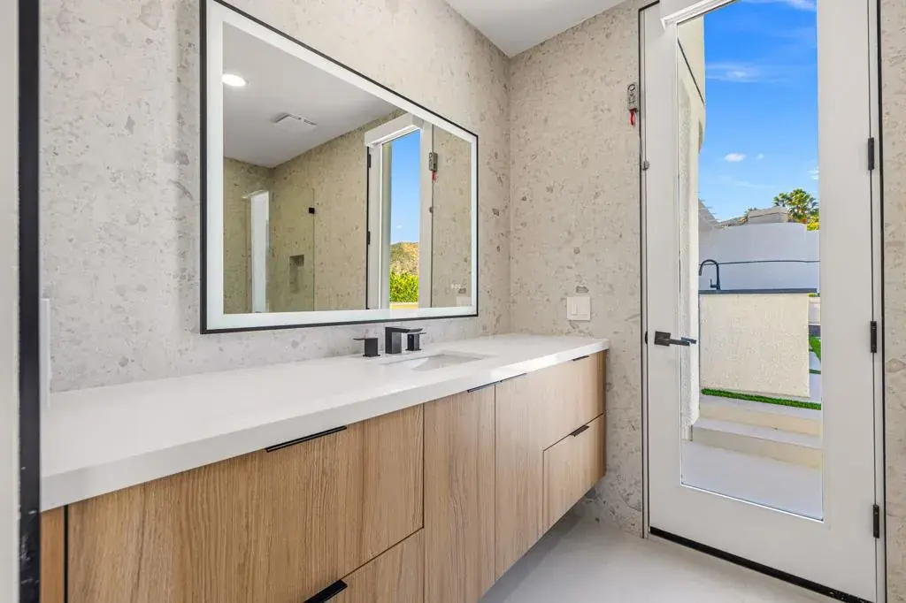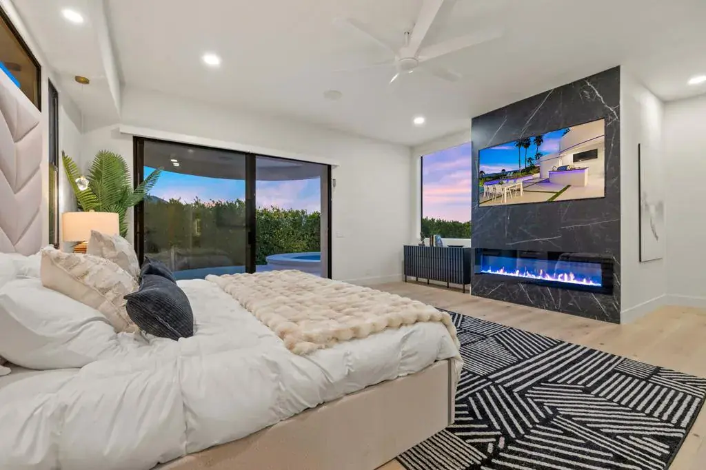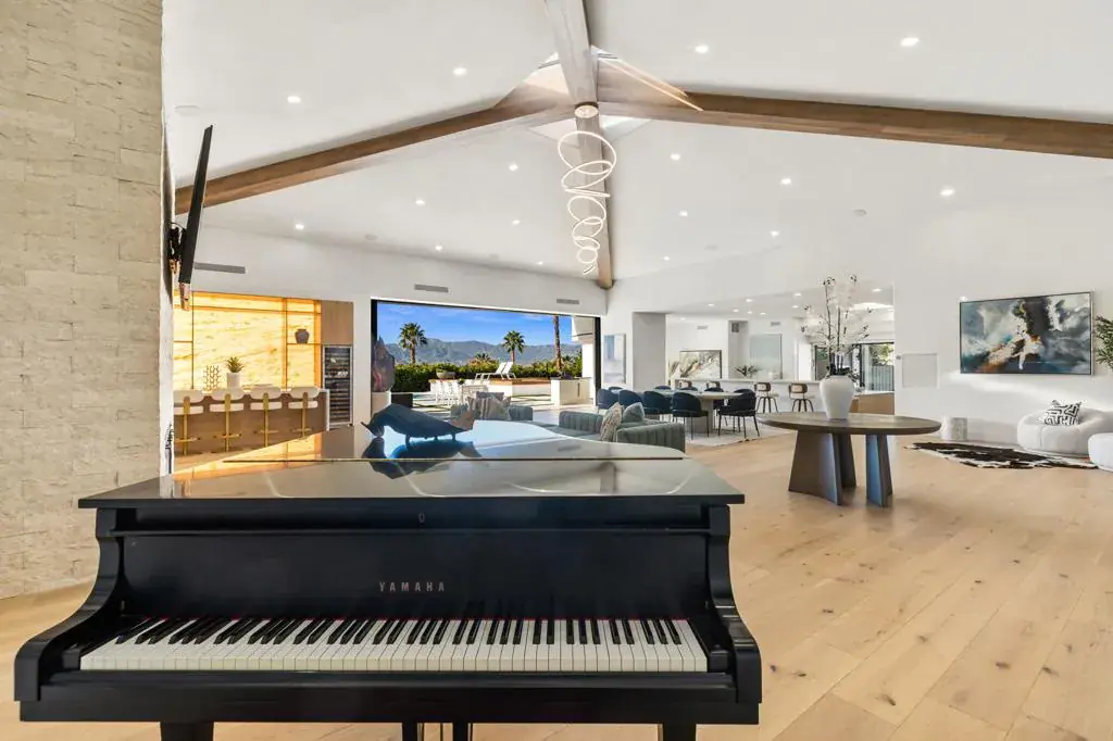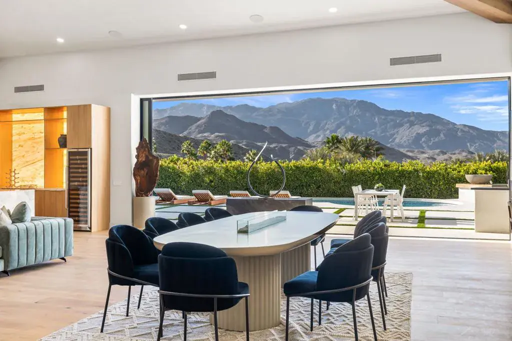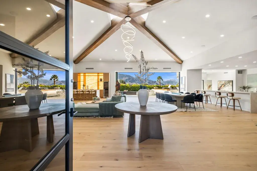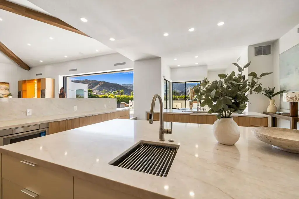 Set high within the gates of Mirada Estates, 36 Mirada Circle is a quietly spectacular home designed to feel as good as it looks. This residence was completely reimagined as a soft modern retreat where natural materials, clean lines, and light-filled spaces come together in balance.From the moment you enter, the home opens wide. Eighteen-foot ceilings with exposed wood beams, wide-plank white oak floors, and walls of glass create an immediate sense of calm and scale. The views stretch across the valley toward the San Jacinto Mountains and shift beautifully throughout the day and evening. From the living room, you can even watch planes glide into Palm Springs, a subtle reminder of just how elevated this setting truly is.At the heart of the home, a 25-foot pocket sliding door disappears completely into the wall, allowing indoor and outdoor living to flow as one. Living, dining, and entertaining spaces open effortlessly to the exterior where evenings are spent poolside, fires lit, and the valley glowing below.The kitchen is both striking and inviting, designed for gathering, lingering and cooking with ease. A walk in panty keeps everything beautifully tucked away, while a custom, backlit bar anchors the space with warmth, texture and a sense of quiet drama. The home offers five en suite bedrooms and six baths, including a private casita ideal for guests, extended family, or a home office. Each suite feels calm and intentional, with spa-inspired bathrooms and refined finishes throughout.The primary suite is a true retreat. Wrapped in floor-to-ceiling stone, the bathroom evokes the feeling of a personal spa with a freestanding jetted tub, walk-in shower, private sauna, and two generous walk-in closets with custom built-ins.Outdoors, the home lives like a private resort. Expansive terraces, a pool and spa, fire features & outdoor dining areas are positioned to take in the views and desert sky. Whether hosting a gathering or enjoying a quiet morning coffee, the setting feels effortless and serene.Mirada Estates is a 24-hour guard-gated community with the rare advantage of neighboring The Ritz-Carlton, Rancho Mirage. Residents enjoy preferred access & discounts to dining, spa, fitness, and hotel services, bringing five-star amenities into everyday life.This is a home created with intention. Elevated, warm, and deeply livable. A place that feels just as special on a quiet Tuesday as it does on a celebratory weekend.