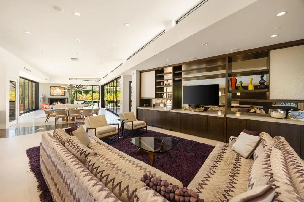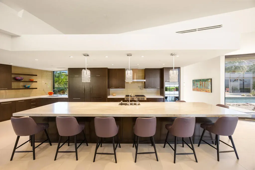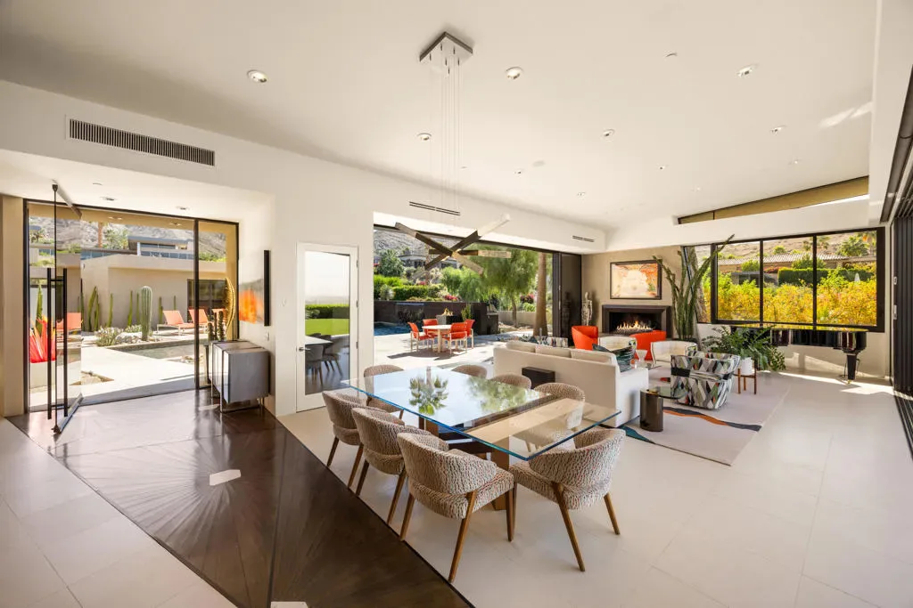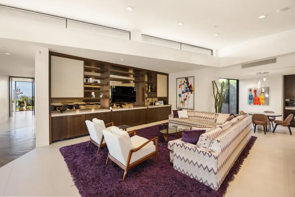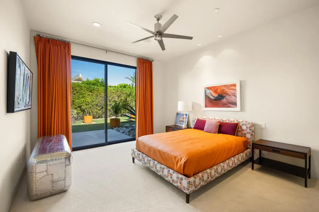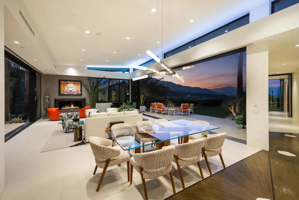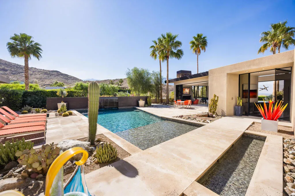 Perched on a prime corner lot within the prestigious Mirada Estates, this exceptional residence captures sweeping, unobstructed views that truly elevate desert living. Expansive walls of glass invite the outdoors in, framing breathtaking panoramas of the surrounding mountains and valley. As evening falls, the shimmering city lights of Palm Springs create a magical backdrop you’ll never tire of.Spanning 5,677 square feet, this thoughtfully designed home offers 5 spacious bedrooms and 4.5 baths, including a private, detached two-bedroom guest house–perfect for hosting guests in comfort and style. Every detail has been meticulously curated, showcasing hand-selected custom finishes such as elegant Walker Zanger stone slabs, sleek Dornbracht fixtures in the kitchen and primary bath, Toto toilets, and a spa-inspired primary suite complete with a steam shower. A striking backlit onyx sink highlights the powder room, while custom fire features and premium appliances and lighting add warmth and sophistication throughout.Designed for effortless indoor-outdoor living, the backyard is an entertainer’s dream. Enjoy a resort-style experience with a sparkling pool, tanning shelf, two relaxing spas, and a one-of-a-kind swim-up grotto bar–perfect for cooling off with a drink without ever leaving the water. Not to be forgotten is the spacious 4 car garage able to accommodate all of your vehicles and storage needs. As a resident of Mirada Estates, you’ll also enjoy exclusive privileges at the five-star Ritz-Carlton, including fine dining, preferred room rates, and access to world-class spa and fitness amenities–bringing a true luxury resort lifestyle right to your doorstep.