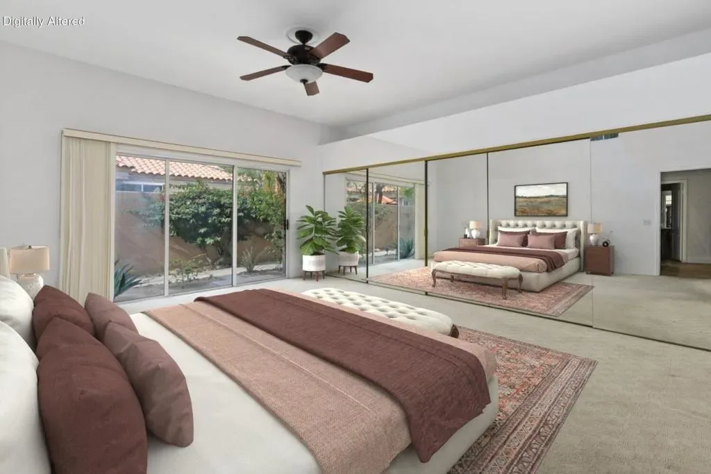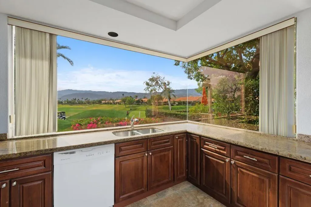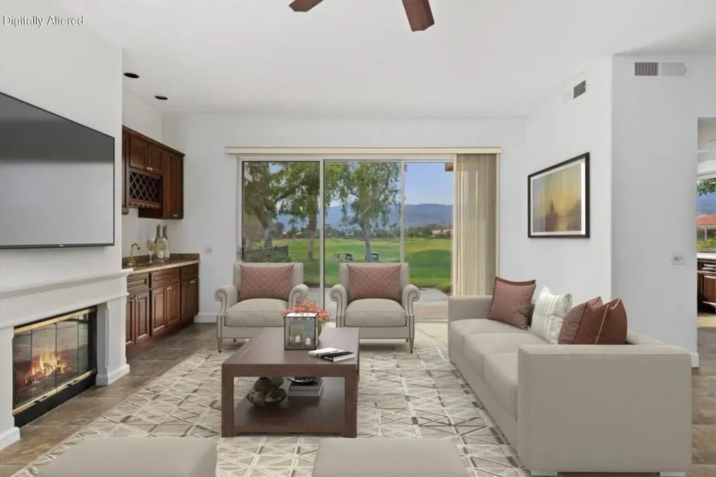 Welcome to Mission Hills Country Club. Perfectly positioned on the iconic Pete Dye Golf Course. This 3 bedroom, 2 bath home offers 1,806 square feet of living space, framed by stunning golf course and mountain views. From the moment you enter, natural light fills the home, highlighting the open layout and seamless indoor-outdoor connection. The upgraded kitchen features generous storage, ideal for everyday living and entertaining alike. The spacious living room is accented by a stylish wet bar, creating an inviting setting. Expansive windows and glass doors capture the sweeping double fairway vistas and dramatic mountain backdrops, bringing the beauty of the outdoors inside. The primary suite serves as a tranquil retreat, while two additional bedrooms provide versatility for guests, a home office, or family accommodations. Residents of Mission Hills Country Club enjoy world-class amenities, including championship golf, renowned tennis and pickleball facilities, fitness center, and a beautifully remodeled clubhouse that serves as a vibrant hub for social and recreational activities. Memberships are available. Just minutes from world-class dining, shopping, and entertainment, this home offers the perfect balance of privacy, luxury, and convenience.
