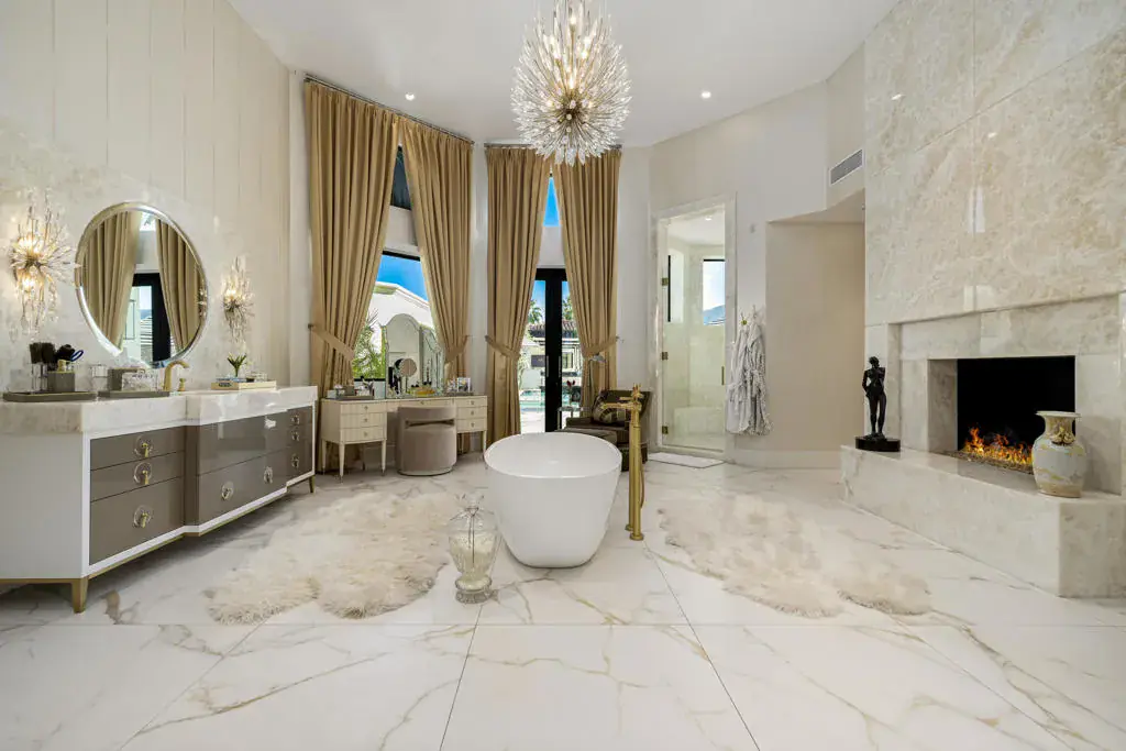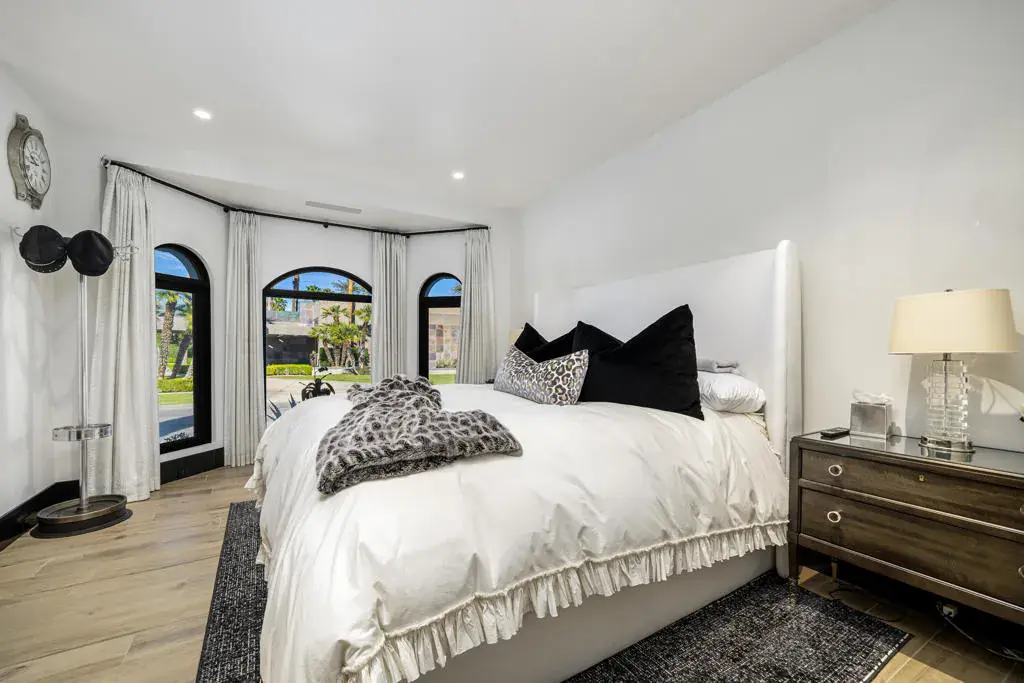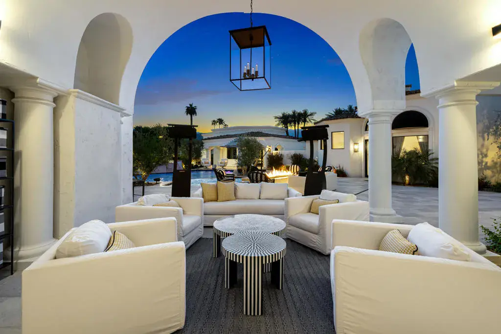 Behind the 24-hour guarded gates of Mission Ranch in Rancho Mirage, this renovated and modernized 1.26-acre estate offers nearly 9,400 square feet of upgraded living space and a rare 10-car garage configuration designed with collectors in mind.The flexible floor plan includes eight ensuite bedrooms, offering generous space for guests, extended stays, or home office needs. Extensive attention to detail is evident throughout, including the artistic use of Venetian plaster in place of traditional wallpaper, adding depth and architectural character.The standout 8-car tandem showcase garage is designed to accommodate eight vehicles as currently configured and is engineered to support up to four vehicle lifts, allowing capacity for as many as 12 vehicles. Electrical infrastructure for lifts is already integrated into the floor. A separate 2-car attached garage services the main residence. Properties offering this level of secure vehicle storage and expansion potential are exceptionally limited in Rancho Mirage.A dramatic foyer opens to grand-scale living areas with soaring ceilings and natural flow for everyday living and entertaining. The chef’s kitchen features Sub-Zero and Wolf appliances, dual dishwashers, an oversized island, and a full butler’s kitchen for additional prep and storage.The primary suite is a private retreat with dual spa-inspired bathrooms and custom dressing areas.Outdoor living includes a resort-style pool and spa with fire and water features, expansive terraces, and a fully lighted private tennis court accommodating tennis, pickleball, and basketball — a rare amenity in the area.Mission Ranch offers 24-hour guard-gated security and community equestrian facilities. Located minutes from Eisenhower Medical Center, golf, dining, and shopping, this property combines space, upgrades, garage capacity, and a prime Rancho Mirage location.