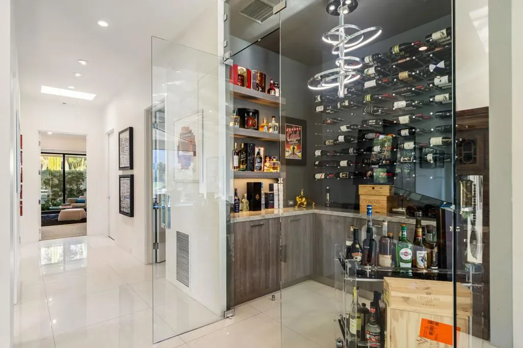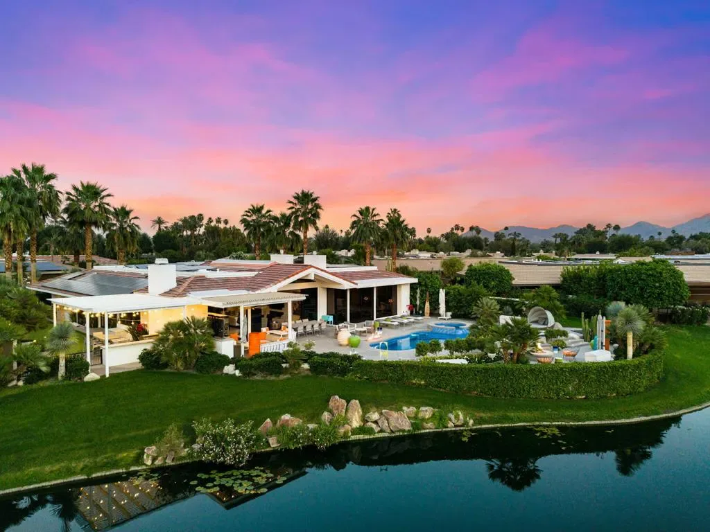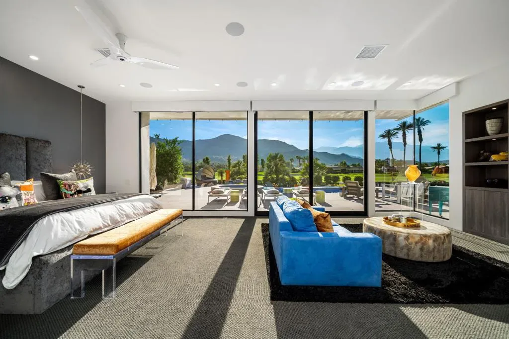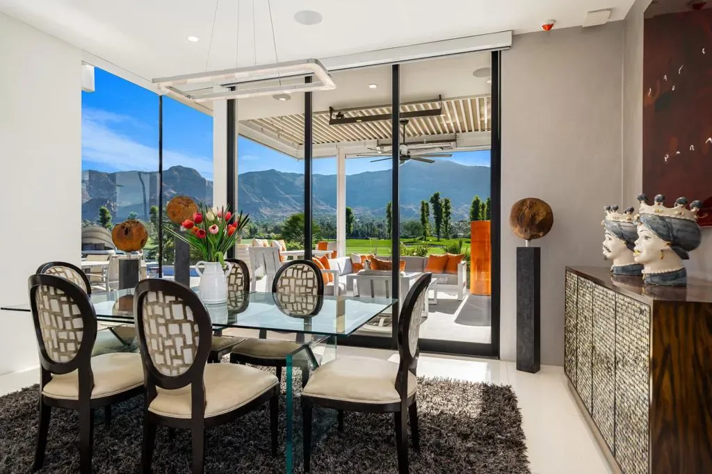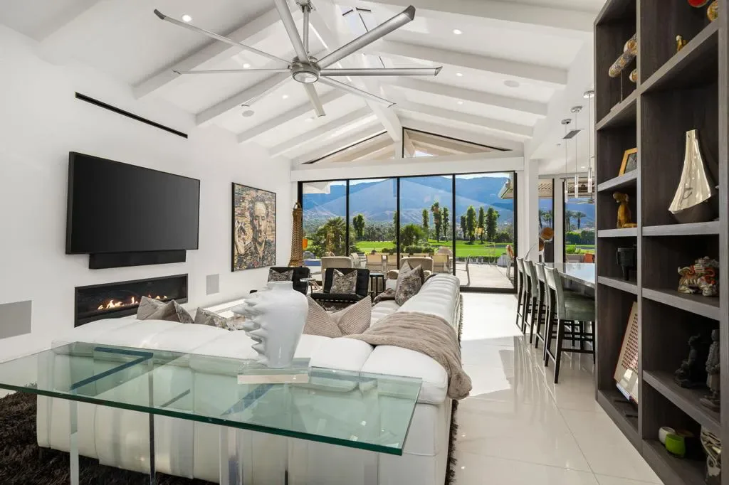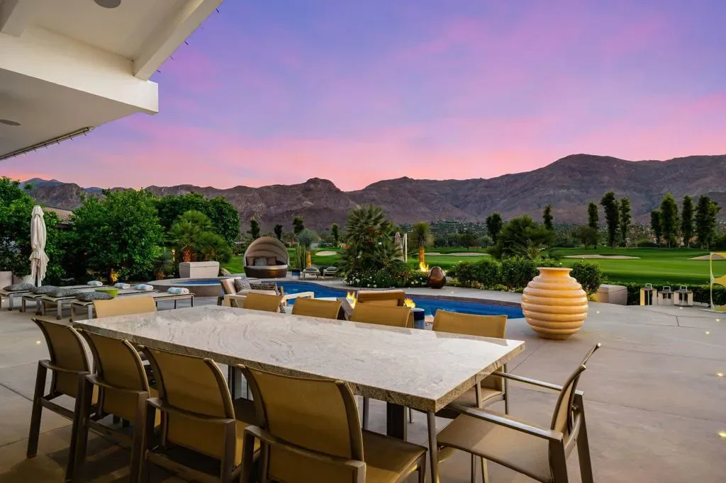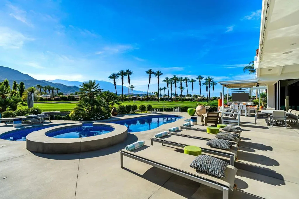 Commanding double fairway and Southwest mountain views, this fully reimagined modern estate in the prestigious Club at Morningside is set on one of Rancho Mirage’s most coveted lots. This 4BD/5BA residence offers seamless indoor-outdoor living with soaring ceilings, smooth-finish walls, and expansive glass opening to a private resort-style setting. A fully integrated Savant smart home system controls lighting, climate, and shades, complemented by a 91-panel owned solar system. The chef’s kitchen features top-tier Thermador appliances, dual dishwashers, an under-counter Sub-Zero beverage refrigerator, and a striking glass wine display. Outdoor living is elevated by a custom blue glass-tile saltwater pool and spa, an expansive patio, a BBQ island, a misting system, custom lighting, and a six-hole putting green. A fully equipped cabana with pop-up TV, heaters, fans, and automated shades ensures year-round enjoyment. The primary suite captures double fairway views and offers a fireplace, sitting area, spa bath, steam room, and dual vanities, plus a separate air-conditioned bonus room. Additional highlights include a dramatic 11-foot pivot entry and a custom garage with epoxy floors, glass doors, built-ins, and golf cart space.