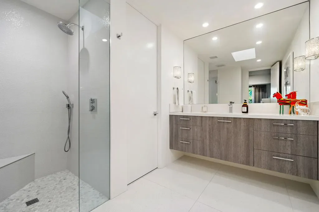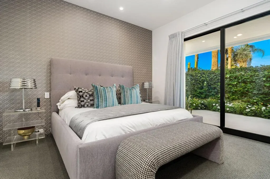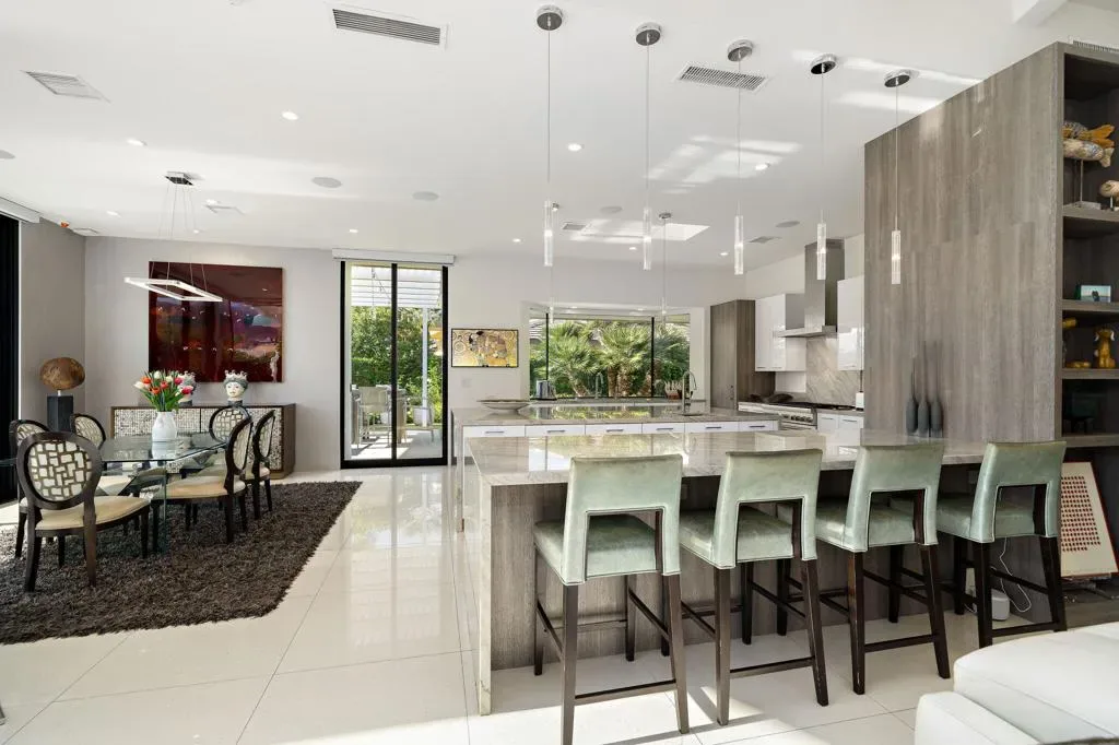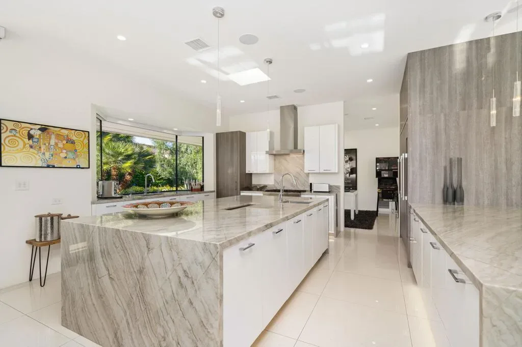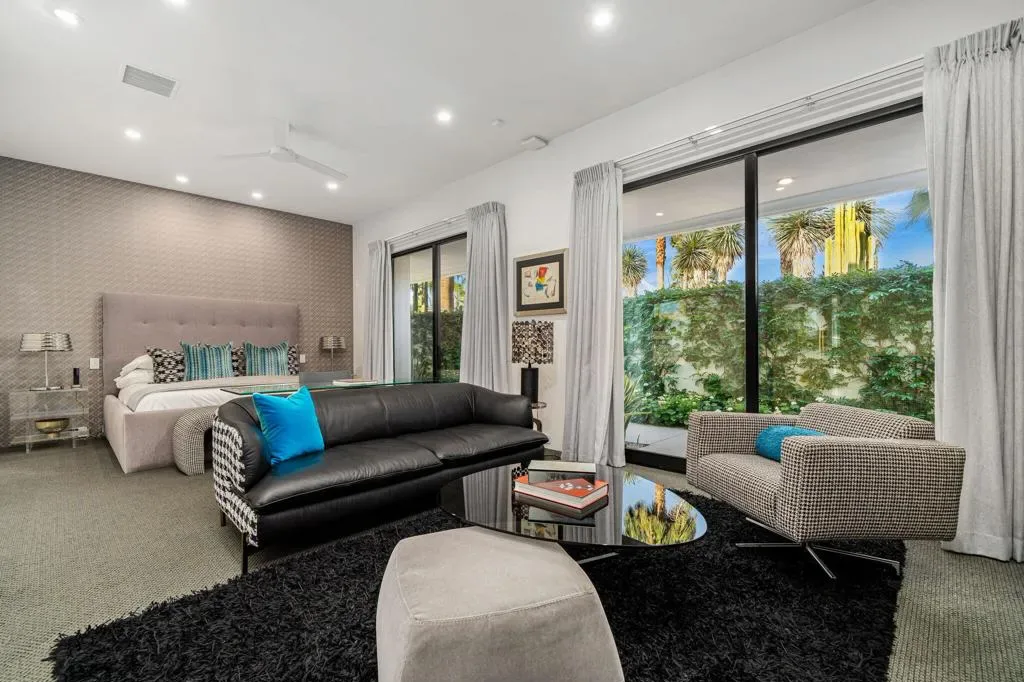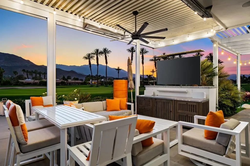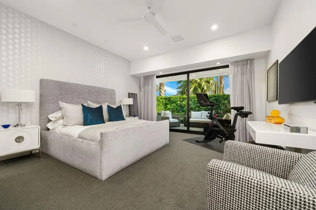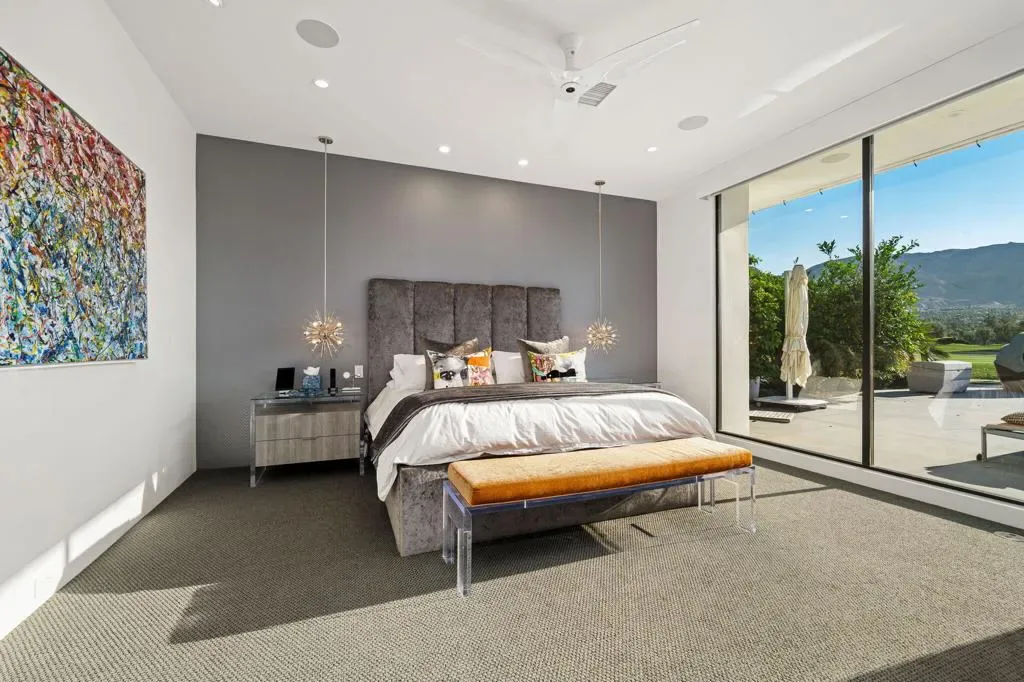 Commanding double fairway and Southwest mountain views, this fully reimagined modern estate in the prestigious Club at Morningside is set on one of Rancho Mirage’s most coveted lots. This 4BD/5BA residence offers seamless indoor-outdoor living with soaring ceilings, smooth-finish walls, and expansive glass opening to a private resort-style setting. A fully integrated Savant smart home system controls lighting, climate, and shades, complemented by a 91-panel owned solar system. The chef’s kitchen features top-tier Thermador appliances, dual dishwashers, an under-counter Sub-Zero beverage refrigerator, and a striking glass wine display. Outdoor living is elevated by a custom blue glass-tile saltwater pool and spa, an expansive patio, a BBQ island, a misting system, custom lighting, and a six-hole putting green. A fully equipped cabana with pop-up TV, heaters, fans, and automated shades ensures year-round enjoyment. The primary suite captures double fairway views and offers a fireplace, sitting area, spa bath, steam room, and dual vanities, plus a separate air-conditioned bonus room. Additional highlights include a dramatic 11-foot pivot entry and a custom garage with epoxy floors, glass doors, built-ins, and golf cart space.
