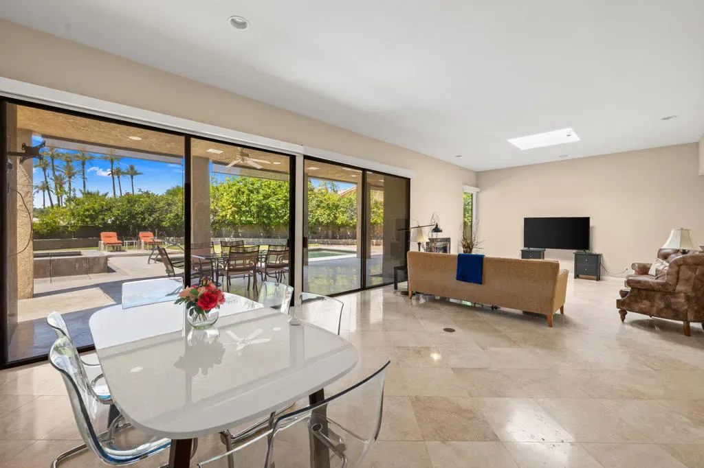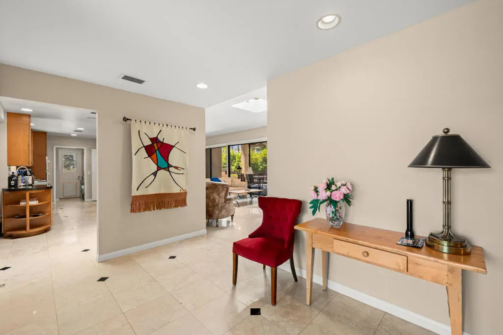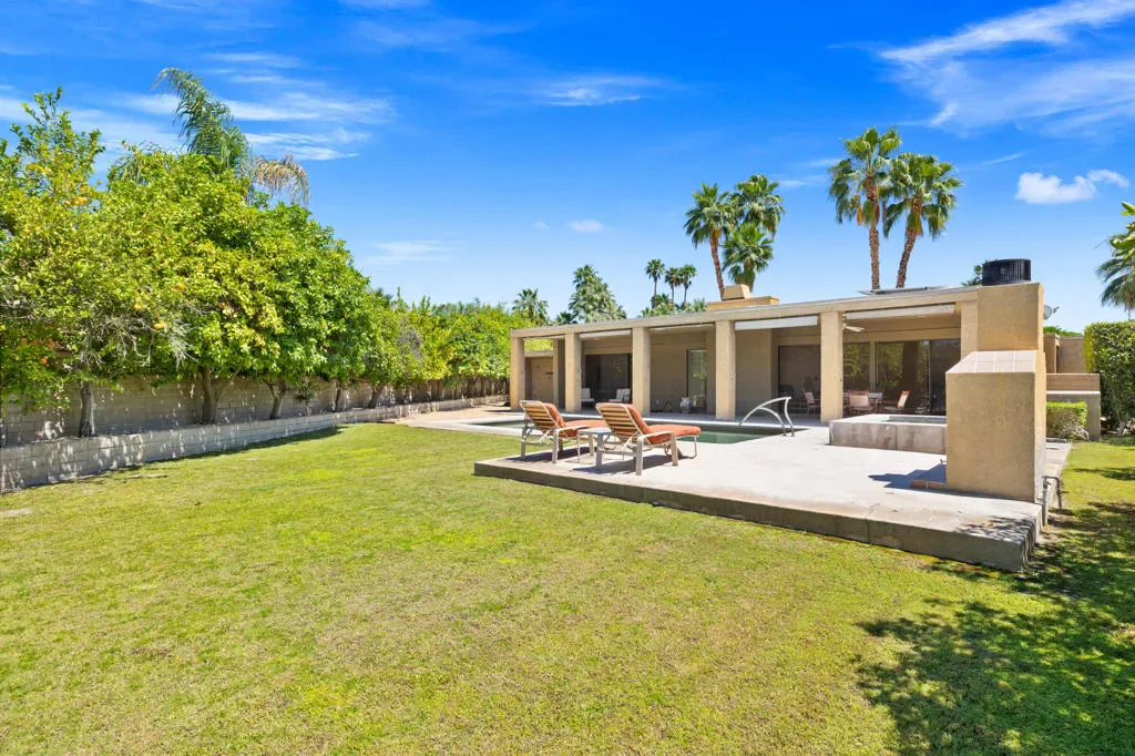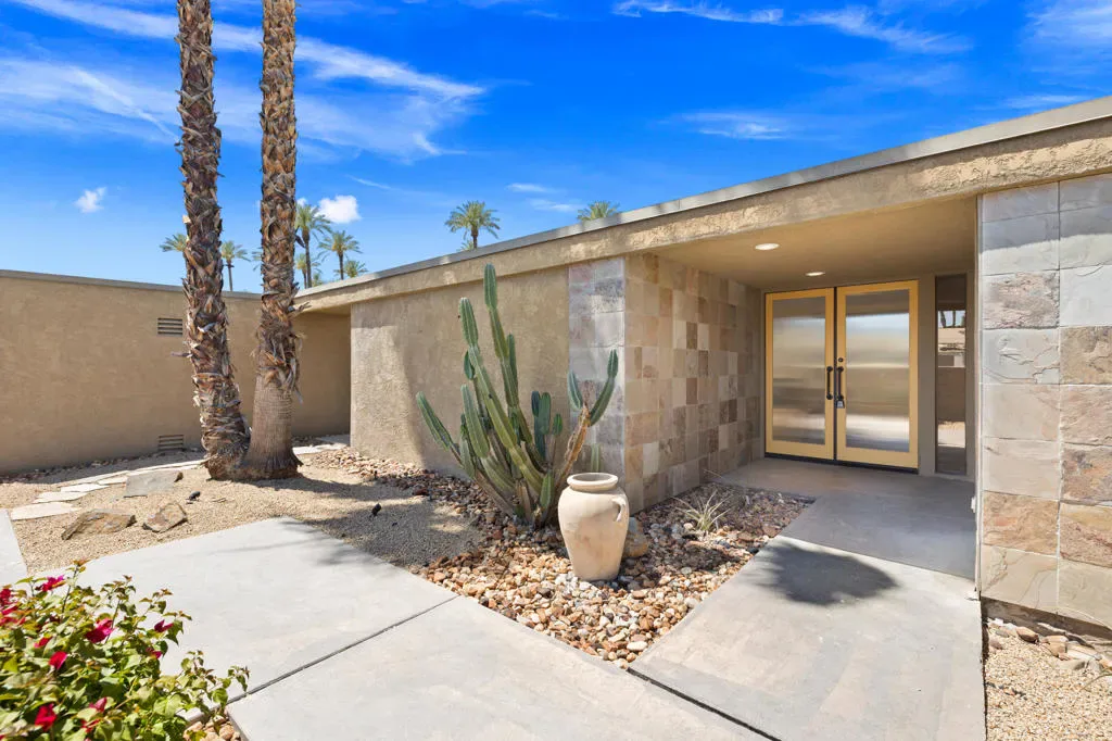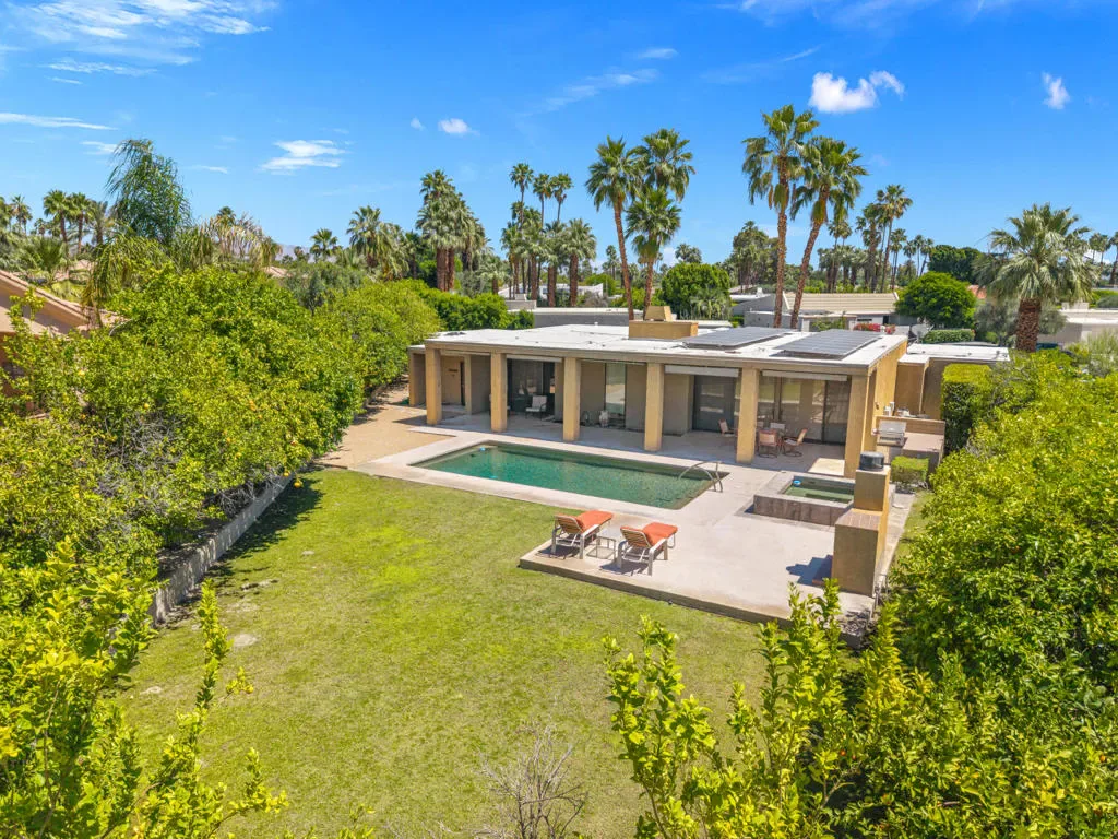 This stunning late Mid Century mountain view home in the Tamarisk area, has been beautifully updated with high ceilings double door entry, travertine floors throughout, newer lap pool/spa, outdoor A spacious covered terrace for extended entertaining with fireplace, built in BBQ ,family room or dining room off kitchen, gourmet kitchen, enormous Great Room and laundry room. Owned solar, so electric is low. The location and neighborhood is unsurpassed. Across from the famous Butterfly house.
