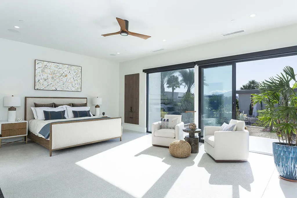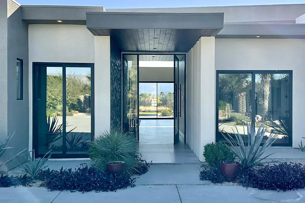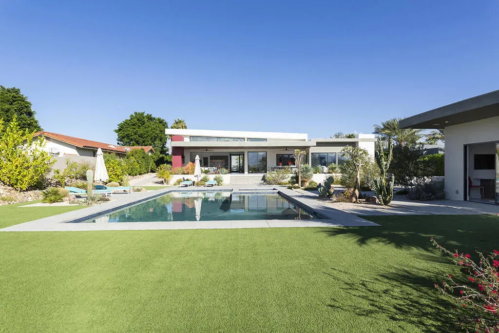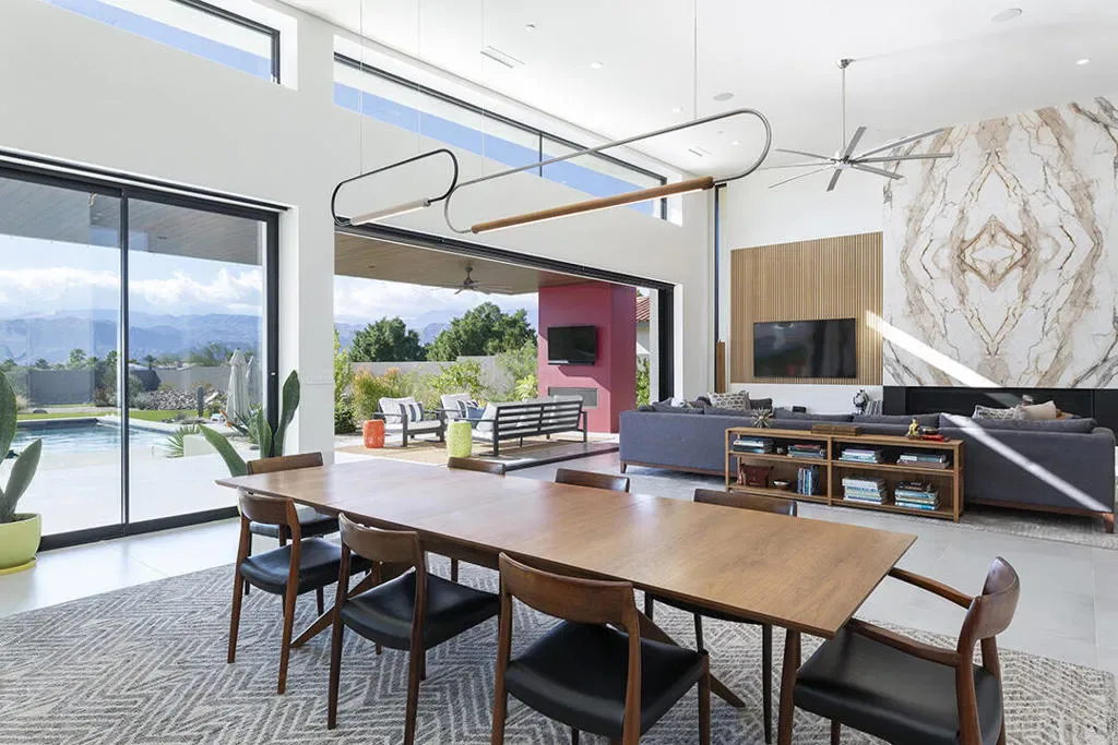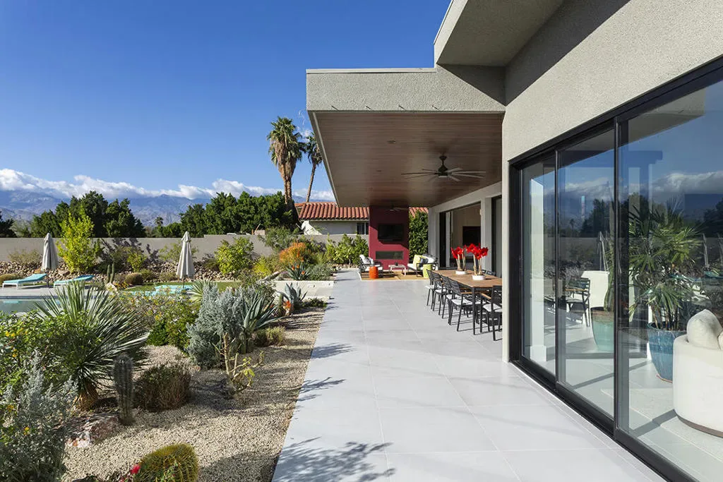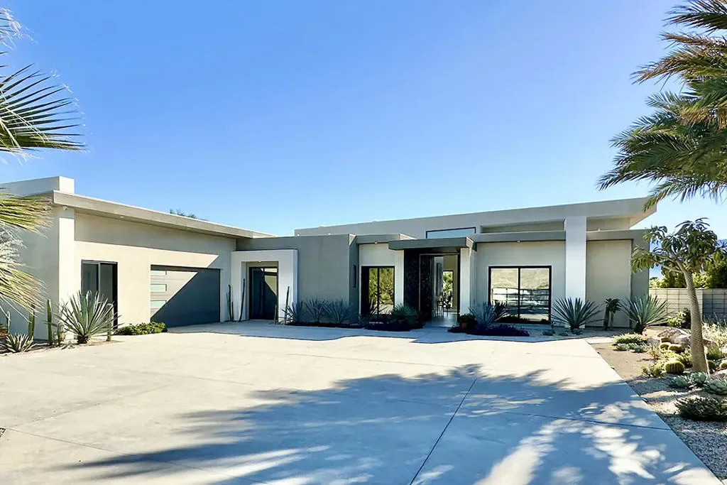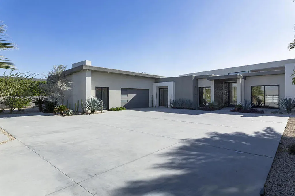 This exceptionally designed, ultra-private contemporary home was completed in 2022 and is set on a three-fourths-acre lot. The property features a generous motor court with a motorized entry gate, an ideal southern orientation that captures spectacular mountain views, and a home that represents a compelling blend of modern architecture, thoughtful layout, and resort-style living.Entering through the pivoting glass front door, a grand entry hall leads to the sophisticated and inviting central living space beyond. Both comfortable and visually striking, this area features vaulted ceilings, clerestory windows, a well-appointed wet bar, and a generous living area centered around a wide horizontal fireplace accented with bookended marble and contemporary wood detailing. The open dining room and chef’s kitchen extend beyond, with the kitchen offering a full suite of Thermador appliances, light gray modern wood cabinetry, a substantial eat-in prep island, and a butler’s pantry.In the living room, a wall of sliding glass doors pocket away, allowing for a seamless connection between the interior and the covered outdoor living and dining areas. A wood-accented overhang with a professional misting system provides shade while framing elevated views of the Sean Lockyer-designed landscape and the mountains beyond. The backyard is thoughtfully arranged with an outdoor kitchen, a fire-pit conversation area, and a detached casita with an en-suite bath. The casita also includes a pool bath accessible from the exterior, offering added convenience for guests.Within the main residence, the tranquil primary suite enjoys direct access to the rear covered patio and pool areas, along with serene mountain views. The spa-inspired en-suite bathroom features dual vanities, a large walk-in shower, a soaking tub, and a spacious walk-in closet. Three additional bedrooms are located within the main home, each with its own en-suite bathroom. A generous media room, guest powder bath, and a bonus room positioned off the motor court at the far end of the two-car garage provide additional flexibility. This bonus space could serve as an optional sixth bedroom, home gym, or office.Located just minutes from premier shopping and dining, this contemporary estate also offers the opportunity to be purchased furnished, with furnishings available outside of escrow per inventory.