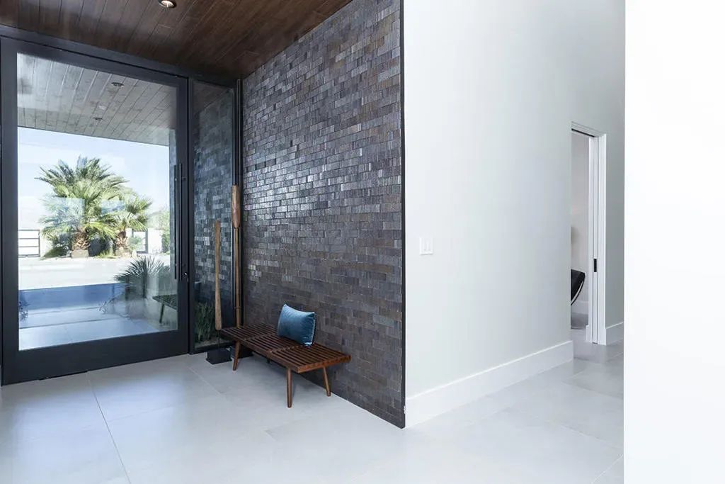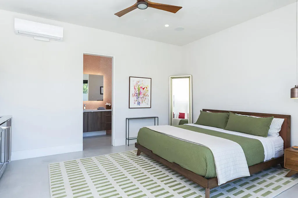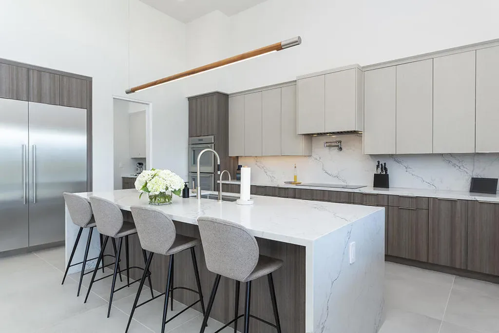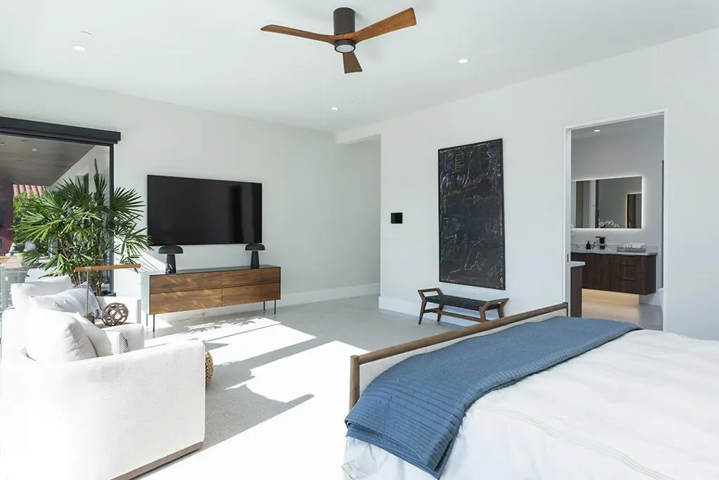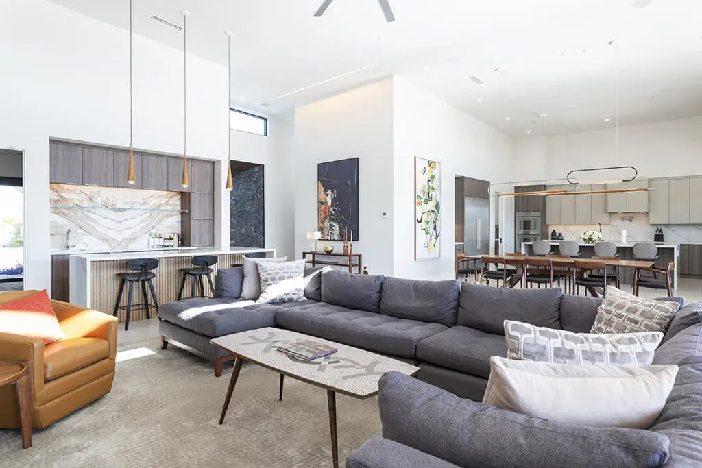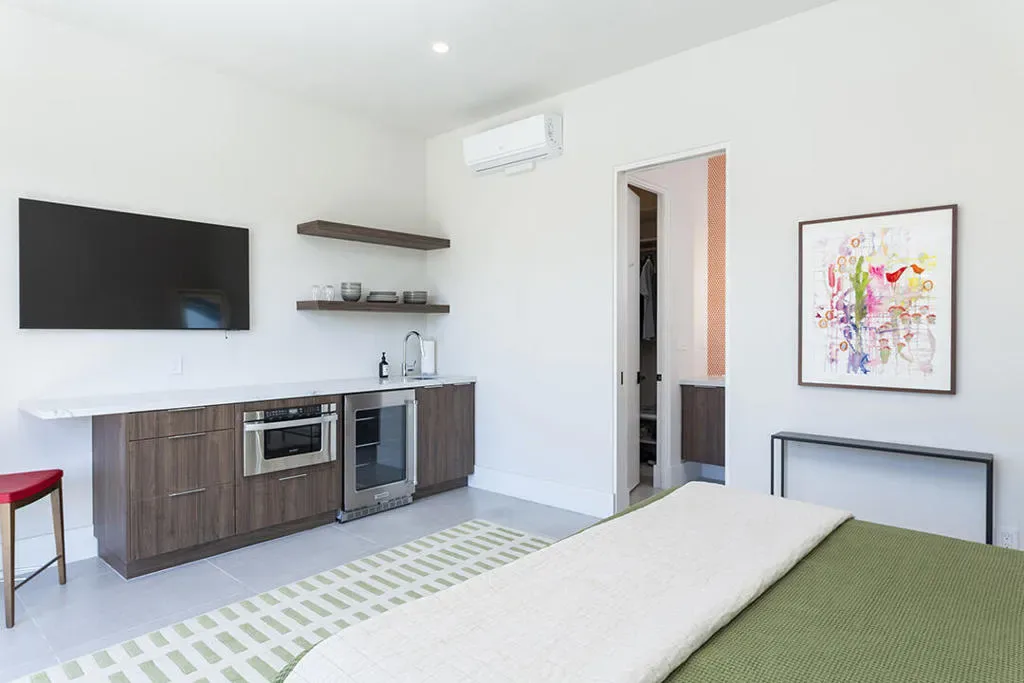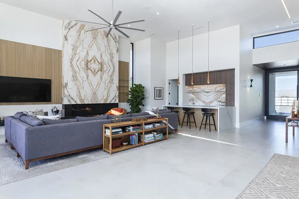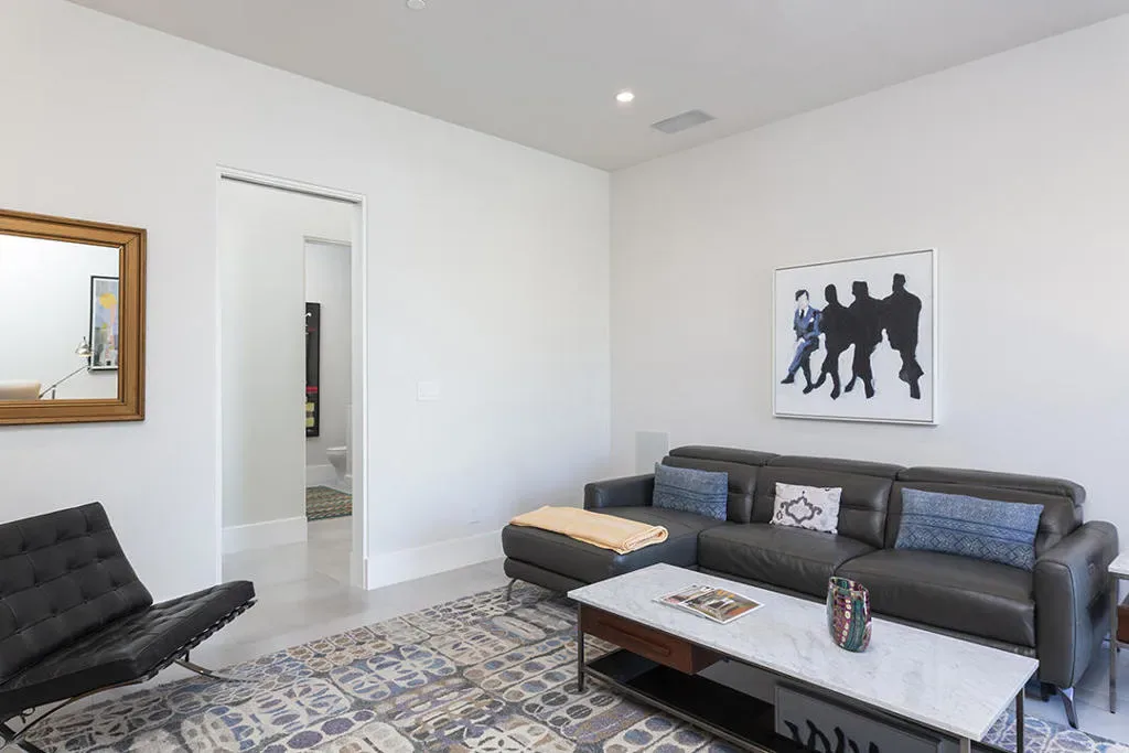 This exceptionally designed, ultra-private contemporary home was completed in 2022 and is set on a three-fourths-acre lot. The property features a generous motor court with a motorized entry gate, an ideal southern orientation that captures spectacular mountain views, and a home that represents a compelling blend of modern architecture, thoughtful layout, and resort-style living.Entering through the pivoting glass front door, a grand entry hall leads to the sophisticated and inviting central living space beyond. Both comfortable and visually striking, this area features vaulted ceilings, clerestory windows, a well-appointed wet bar, and a generous living area centered around a wide horizontal fireplace accented with bookended marble and contemporary wood detailing. The open dining room and chef’s kitchen extend beyond, with the kitchen offering a full suite of Thermador appliances, light gray modern wood cabinetry, a substantial eat-in prep island, and a butler’s pantry.In the living room, a wall of sliding glass doors pocket away, allowing for a seamless connection between the interior and the covered outdoor living and dining areas. A wood-accented overhang with a professional misting system provides shade while framing elevated views of the Sean Lockyer-designed landscape and the mountains beyond. The backyard is thoughtfully arranged with an outdoor kitchen, a fire-pit conversation area, and a detached casita with an en-suite bath. The casita also includes a pool bath accessible from the exterior, offering added convenience for guests.Within the main residence, the tranquil primary suite enjoys direct access to the rear covered patio and pool areas, along with serene mountain views. The spa-inspired en-suite bathroom features dual vanities, a large walk-in shower, a soaking tub, and a spacious walk-in closet. Three additional bedrooms are located within the main home, each with its own en-suite bathroom. A generous media room, guest powder bath, and a bonus room positioned off the motor court at the far end of the two-car garage provide additional flexibility. This bonus space could serve as an optional sixth bedroom, home gym, or office.Located just minutes from premier shopping and dining, this contemporary estate also offers the opportunity to be purchased furnished, with furnishings available outside of escrow per inventory.