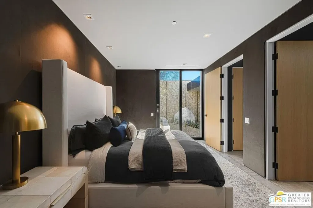 A residence of true architectural distinction, 3 Echo Lane is a sculptural modern home designed by Sean Lockyer, AIA, principal architect of the internationally recognized Studio AR&D. Known for refined modernism and materially expressive design, Lockyer’s work is celebrated for its clarity of form, thoughtful proportions, and seamless relationship to landscape qualities fully realized in this exceptional residence. Built with steel beam construction, the home exemplifies architectural integrity, structural honesty, and enduring craftsmanship. Clean horizontal lines, purposeful massing, and carefully composed sightlines frame west-facing mountain views, capturing the drama of the San Jacinto range and delivering unforgettable desert sunsets. Walls of Fleetwood sliding glass doors create expansive openings that dissolve the boundary between interior and exterior, a hallmark of architecturally significant modern design. Outdoor living is elevated by a dedicated pool pavilion, conceived as an extension of the home’s architectural language providing shaded lounge and entertaining space while anchoring the resort-style grounds with structure, balance, and presence. The outdoor environment has been thoughtfully reimagined with a recently redesigned zero-edge pool and spa, complemented by a dramatic water wall that functions as both architectural feature and kinetic art, enhancing sound, movement, and visual calm. Interiors reflect a gallery-like restraint enriched by bespoke finishes and couture-level details. The primary bathroom is a sculptural retreat, highlighted by a freestanding travertine soaking tub carved from a single monolithic block of stone a rare artisan element more commonly found in museum-quality design. Select walls are appointed with Gucci and Phillip Jeffries wall coverings, adding texture, depth, and refined luxury. California Closet systems are seamlessly integrated to preserve clean architectural lines while enhancing functionality. A Control4 home automation system supports modern living with intuitive control of lighting, window coverings and audio/video, ensuring comfort without compromising design intent. Architecturally significant, structurally sophisticated, and meticulously curated, 3 Echo Lane represents a rare opportunity to acquire a modern desert residence where architecture, landscape, and livability convergeset within the prestigious enclave of Echo at Rancho Mirage.