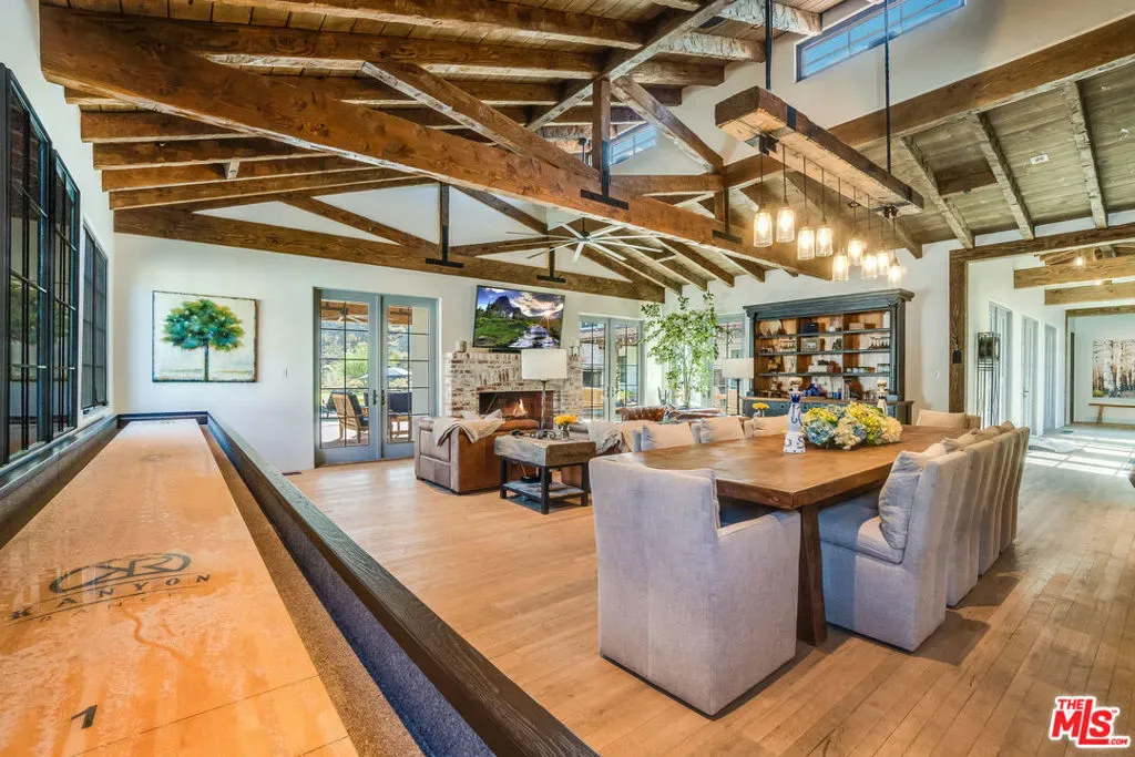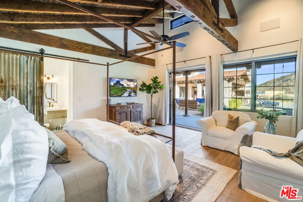Situated at the end of a peaceful cul-de-sac in Rancho Mirage, this extraordinary 2+ acre California Spanish Estate known as “Kanyon Ranch”offers one of the most exceptional residential settings in the area. From the moment you arrive, the energy of the desert fades away, replaced by the serenity of your own private entertainer’s paradise.Custom-built in 2019, the residence features four spacious en-suite bedrooms. A detached ADU with its own en-suite bath brings the total to five bedrooms and seven bathrooms, offering ideal accommodations for guests or extended family. Culinary enthusiasts will find true kitchen nirvana here. Designed for both everyday living and grand-scale entertaining, the chef’s kitchen is equipped with multiple ovens, a wood-burning pizza oven, a salamander indoor grill, an open-hearth wood-burning oven, an oversized walk-in pantry, and temperature-controlled wine storage.Outdoors, the expansive and tranquil grounds stretch toward the dramatic Santa Rosa Mountain backdrop, creating a striking natural focal point. An open-air entertaining pavilion invites both lively celebrations and relaxed evenings, complete with a fully equipped outdoor kitchen designed for hosting unforgettable gatherings.The resort-style grounds feature a tiled pool and spa, an outdoor fireplace, a fire pit, and a full-size pickleball/sport court. Golf enthusiasts will appreciate the private one-hole golf course with a white sand bunker perfect for practicing chip shots. A 15-seat private theater provides a luxury viewing experience worthy of Hollywood premieres or binge-worthy series nights. The home is equipped with indoor and outdoor surround sound as well as a comprehensive security camera system, ensuring both entertainment and peace of mind.Ample parking includes an attached three-car air-conditioned garage and driveway space for approximately 20 additional vehicles. A secondary detached air-conditioned garage suited for an RV or 5 additional vehicles keeps every adventure within reach. This is a rare opportunity to own a truly one-of-a-kind desert retreat.