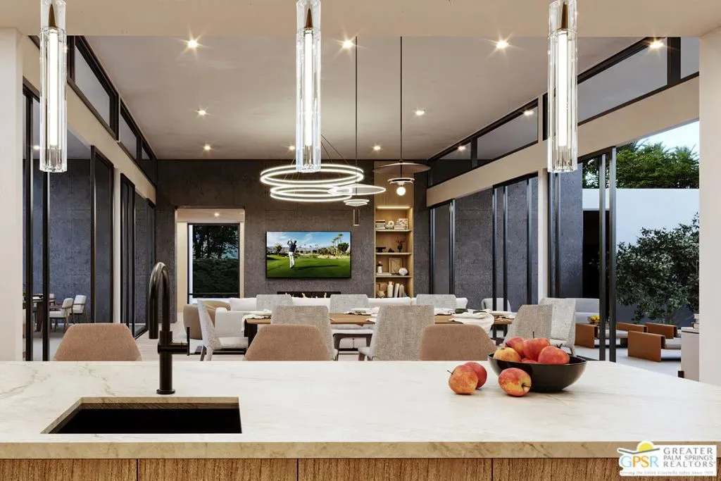 This striking modern residence on Vista Court offers a refined interpretation of contemporary desert architecture, blending timeless design with advanced technology and thoughtful craftsmanship. Carefully curated throughout, the home seamlessly integrates lighting, sound, solar energy, security, and whole-home water filtration to create a sophisticated and highly functional living environment. The main residence features three spacious en-suite bedrooms, while a generous detached guesthouse offers one bedroom, one bath, and a comfortable sitting room ideal for guests, extended stays, or a private retreat. Designed to embrace the essence of modern desert living, the architecture highlights clean lines, open spaces, and a seamless connection between indoor and outdoor environments.Inside, premium finishes elevate everyday living, including Dacor appliances, high-end plumbing fixtures, stone countertops, and a sophisticated blend of tile and wood flooring. Modern systems enhance comfort and efficiency, with five HVAC systems, a Control4 smart-home automation system, solar power with a backup battery, and a five-stage Halo 5 water filtration system. Expansive floor-to-ceiling glass, generous ceiling heights, and a thoughtfully designed split floor plan create a residence that is both visually striking and exceptionally livable. An outdoor shower and beautifully integrated outdoor spaces further strengthen the connection to the surrounding desert landscape delivering a lifestyle that reflects the very best of modern architecture in a setting celebrated for its clean lines, minimalism, and effortless indoor-outdoor living. New construction. Estimated completion Summer 2026.