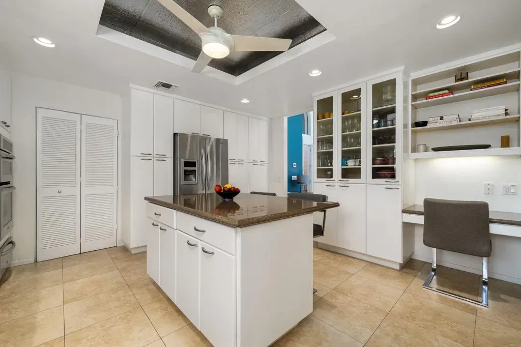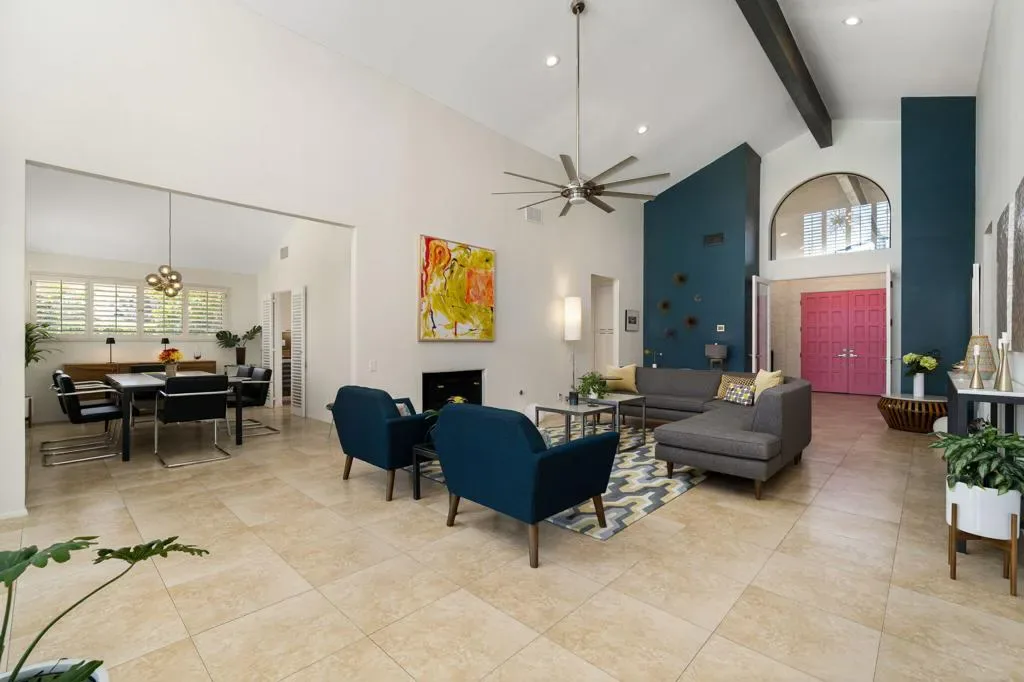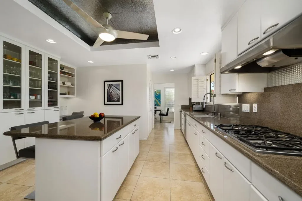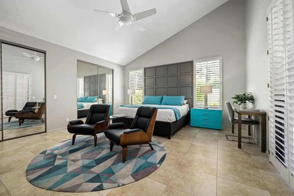 Fabulous Rancho Mirage Vacation Retreat in Presidential Estates Located in the heart of Rancho Mirage, this stunning home is set within the quiet, gated community of Presidential Estates. Designed with modern style and comfort in mind, it features floor-to-ceiling windows that seamlessly blend indoor and outdoor living. The spacious living room boasts vaulted ceilings, a cozy fireplace, wet bar, and expansive views of the sparkling pool and outdoor entertaining area. The gourmet kitchen is fully equipped with abundant cabinet space, an island, and everything you need for hosting or enjoying relaxed meals at home. A formal dining room offers the perfect setting for gathering with family and friends. The luxurious primary en-suite includes a split king bed with individually adjustable tilt. One additional en-suite provides ideal guest accommodation, 3rd en-suite is set up as a den/office. All bathrooms have been beautifully remodeled with a sleek, modern design. Step outside to your private backyard oasis featuring a lap pool with water features, spacious covered patio, full-size Weber gas grill, and seating areas perfect for lounging or entertaining. Residents and guests also enjoy access to the community tennis courts, pool, and spa, while the home’s owned solar system provides added efficiency. Situated directly across from Mission Hills Golf Course, this home places you minutes from world-class golf, dining, and shopping. Don’t miss the opportunity to experience this fabulous Rancho Mirage seasonal rental!