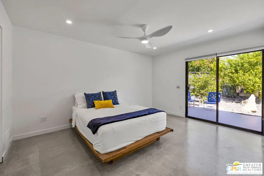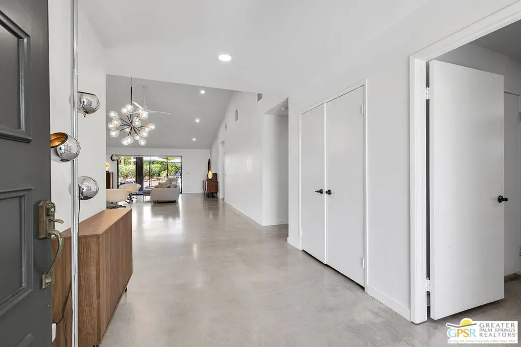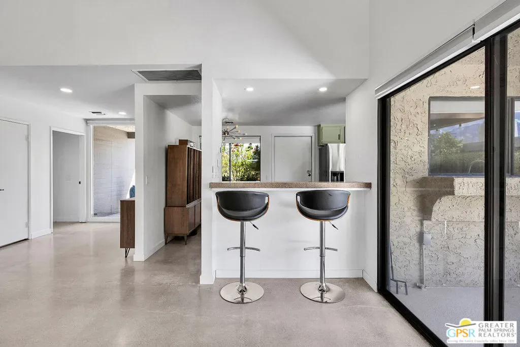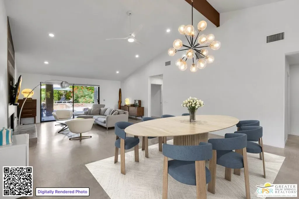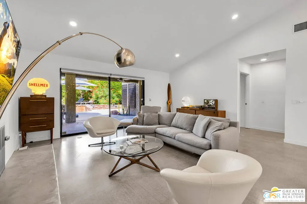 New quartz countertops and a stylish tile backsplash have just been added, elevating this already exceptional home. This is a rare opportunity to own a piece of architectural history, beautifully reimagined with modern upgrades and eco-conscious features. Designed by renowned mid-century modern architect Donald Wexler, this stunning free-standing residence is located within the private, gated community of Rancho Estates. The thoughtfully updated interior showcases sleek polished concrete floors, energy-efficient LED lighting, and a renovated kitchen. The living room centers around a striking floor-to-ceiling fireplace, perfectly capturing mid-century modern design. Bathrooms have been tastefully upgraded with new countertops, sinks, faucets, and toilets, while the luxurious primary suite features a spa-like bathroom complete with a new walk-in shower and a freestanding soaking tub. Custom closet systems enhance the spacious walk-in closet. Designed for both comfort and efficiency, the home includes a dual-zoned HVAC system, a 14-panel OWNED solar system, and an EV charging station. Set on one of the largest lots in the community, the backyard is a private retreat featuring a pebble-tech saltwater pool and spa, mature citrus trees, and a fully equipped outdoor kitchen, ideal for entertaining or relaxing in style. Community amenities include a pool, tennis courts, pavilion, and beautifully maintained grounds. HOA dues also cover internet and cable.