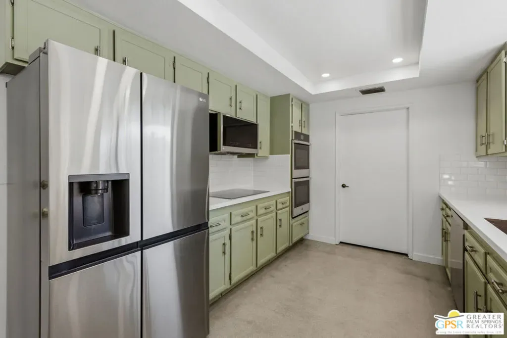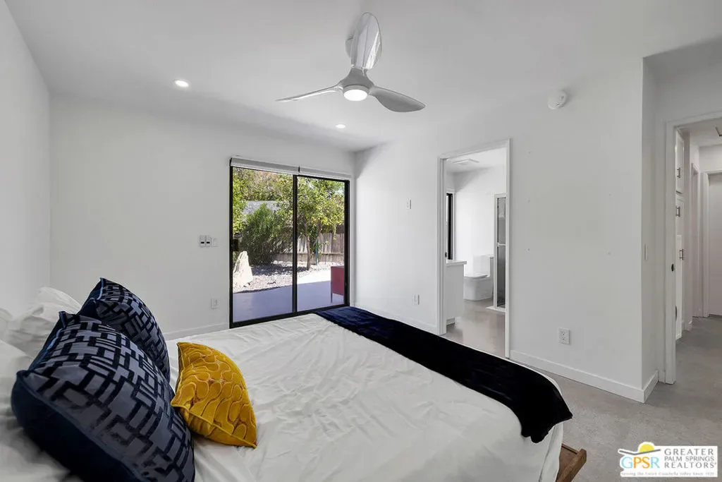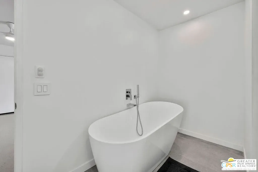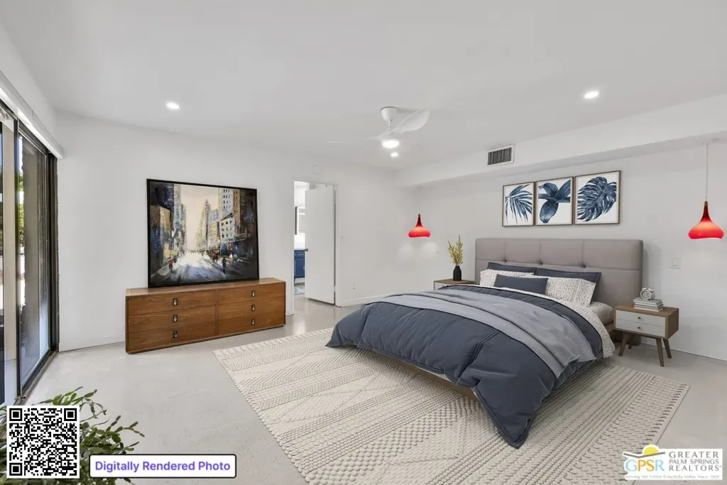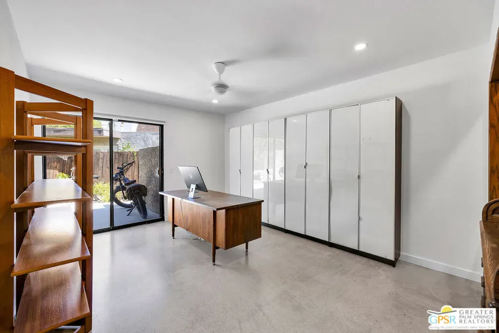 New quartz countertops and a stylish tile backsplash have just been added, elevating this already exceptional home. This is a rare opportunity to own a piece of architectural history, beautifully reimagined with modern upgrades and eco-conscious features. Designed by renowned mid-century modern architect Donald Wexler, this stunning free-standing residence is located within the private, gated community of Rancho Estates. The thoughtfully updated interior showcases sleek polished concrete floors, energy-efficient LED lighting, and a renovated kitchen. The living room centers around a striking floor-to-ceiling fireplace, perfectly capturing mid-century modern design. Bathrooms have been tastefully upgraded with new countertops, sinks, faucets, and toilets, while the luxurious primary suite features a spa-like bathroom complete with a new walk-in shower and a freestanding soaking tub. Custom closet systems enhance the spacious walk-in closet. Designed for both comfort and efficiency, the home includes a dual-zoned HVAC system, a 14-panel OWNED solar system, and an EV charging station. Set on one of the largest lots in the community, the backyard is a private retreat featuring a pebble-tech saltwater pool and spa, mature citrus trees, and a fully equipped outdoor kitchen, ideal for entertaining or relaxing in style. Community amenities include a pool, tennis courts, pavilion, and beautifully maintained grounds. HOA dues also cover internet and cable.