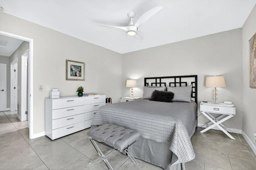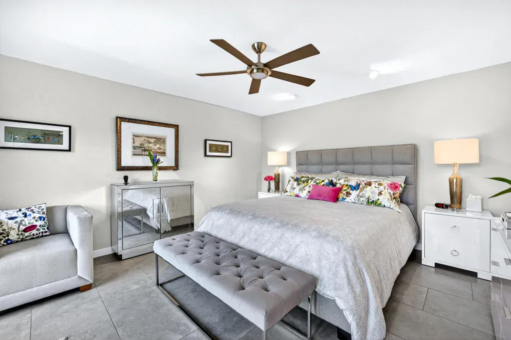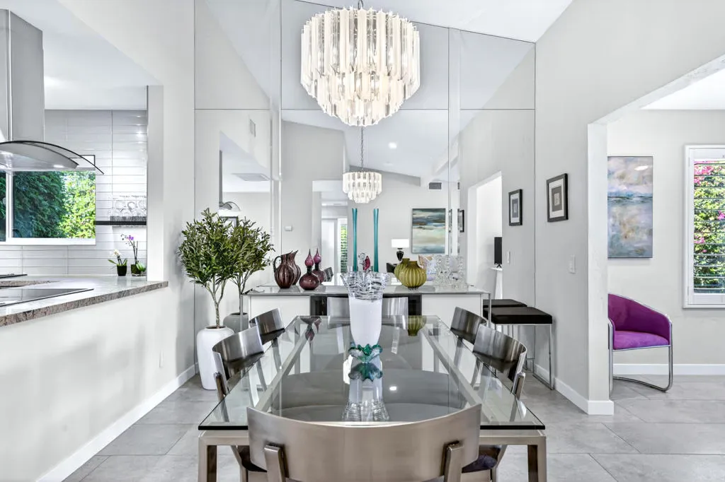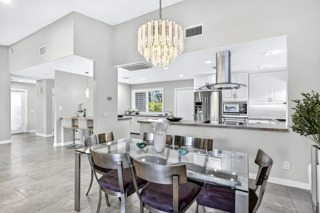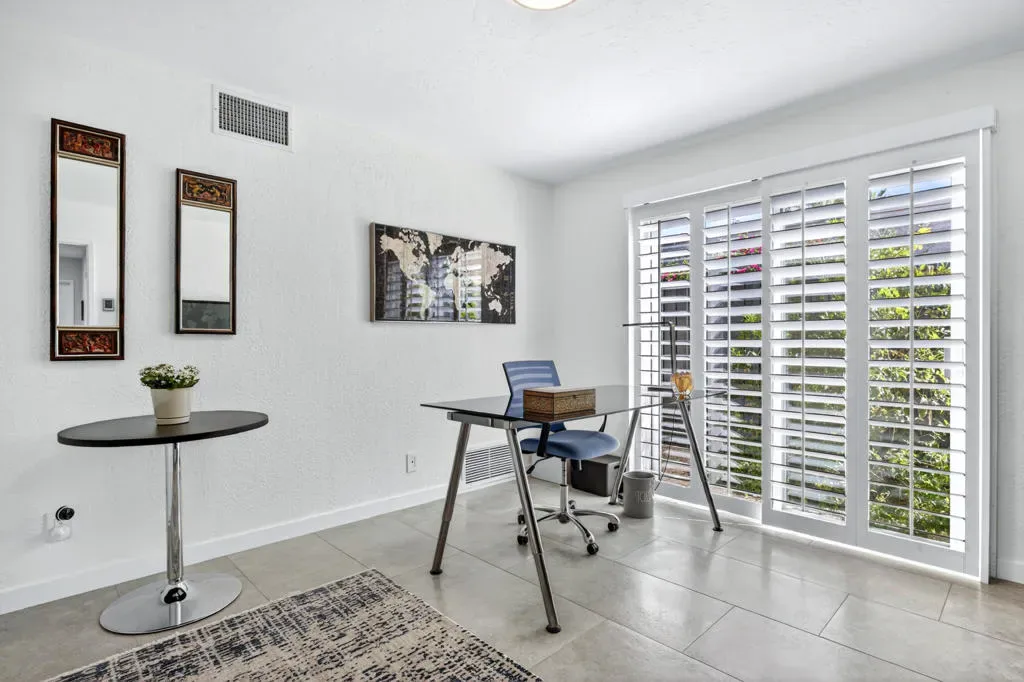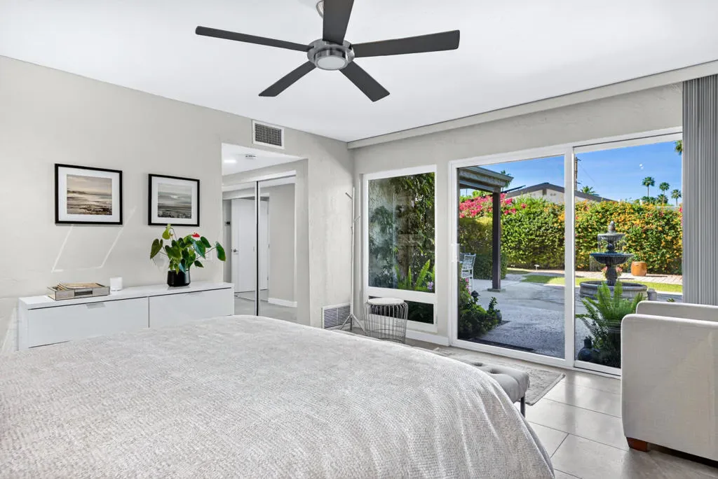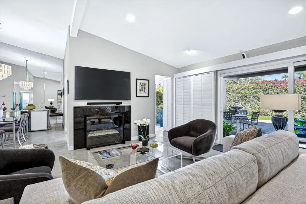 Located within the exclusive gated enclave of Rancho Estates, a boutique community entirely designed by renowned architect Donald Wexler, this beautifully reimagined Desert Modern residence offers a rare blend of architectural pedigree and refined contemporary living. Rancho Estates is comprised of just 28 detached homes arranged around a circular drive with shared amenities including tennis courts and a community pool, celebrated for its timeless design and serene desert setting. This extensively upgraded residence features designer upgrades throughout and showcases an open-concept floor plan filled with natural light. Expansive glass doors create a seamless connection to a private courtyard framed by lush landscaping and a tranquil water feature. Capturing both mountain and garden views, the home embodies the essence of indoor-outdoor desert living. The thoughtfully designed layout offers 3 bedrooms and 2 baths, including a spa-inspired primary ensuite with a calming, modern aesthetic. The kitchen is beautifully appointed with contemporary cabinetry, honed granite countertops, breakfast bar seating for four, and generous prep space, opening effortlessly to the main living and dining areas–ideal for entertaining. Additional highlights include custom built-ins, upgraded closet systems, and a thoughtfully designed, separate office, offering both functionality and style. A rare opportunity to own within a Donald Wexler-designed community in one of Rancho Mirage’s most architecturally significant enclaves.