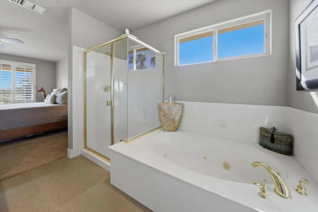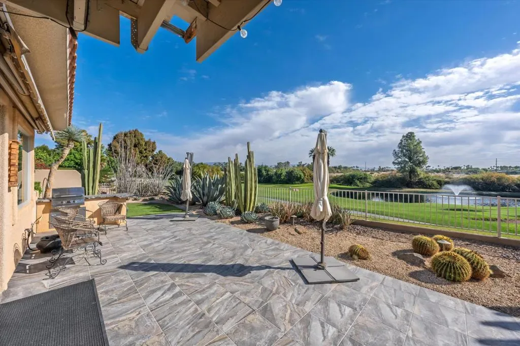 Beautifully remodeled modern contemporary home showcasing refined finishes, modern lighting, and breathtaking lake, mountain, and lush greenbelt views. Thoughtfully designed with clean lines and an open, airy layout, this residence offers an elegant yet comfortable living experience. Enjoy your morning coffee while taking in elevated views that create a serene and inspiring backdrop throughout the home.The open-concept kitchen is a chef’s dream, featuring Thermador appliances, granite and quartz countertops, and a spacious center island ideal for entertaining. Designed for both functionality and style, the kitchen flows seamlessly into the main living areas.The living room is warm and inviting, highlighted by a fireplace, wet bar, custom modern lighting, shutters throughout, and 4-inch baseboards. A separate laundry room with a wet sink adds everyday convenience, while the upstairs loft provides flexible space perfect for a home office or additional living area.The primary suite is a private retreat with large walk-in closets and a peaceful ambiance. An attached casita with a separate entrance offers exceptional versatility for guests, extended family, or a private workspace. Recent upgrades include 3-ton Lennox units and both furnaces replaced in 2021.Enjoy indoor-outdoor living in the backyard with awnings, built-in BBQ, and TV–ideal for entertaining or relaxing. The property also features a spacious two-car garage along with a golf cart garage, with Lift Master electric garage door motors replaced in 2021. Owned solar panels connected to SCE’s grid–nine panels in total–significantly offset electric utility costs, adding long-term energy efficiency and savings. This exceptional home offers a rare blend of modern luxury, comfort, and efficiency. Schedule a private showing today and experience everything this beautiful residence has to offer.