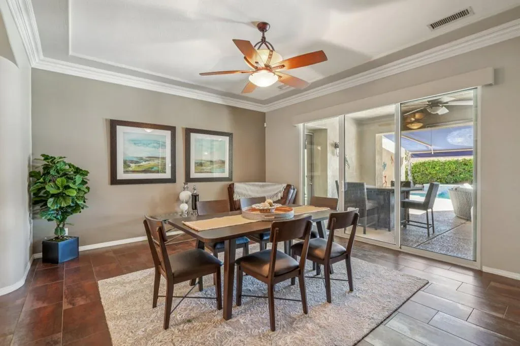Best-Value Solar Home in St. Augustine with NEM 2.0 & Resort-Style BackyardLocated within the prestigious gated community of St. Augustine, this beautifully upgraded 4-bedroom, 3-bath residence offers 3,650 sq ft of refined desert living on a large south-facing lot, featuring highly desirable NEM 2.0 solar for significant long-term energy savings.A private gated slate courtyard sets the tone, leading into an elegant interior featuring high ceilings, crown molding, custom built-ins, and multiple living spaces designed for both comfort and entertaining. The formal living area showcases a fireplace and seamless indoor-outdoor flow, while the former dining room has been thoughtfully converted into a high-end media room.The gourmet kitchen is the heart of the home, complete with expansive counter space, a large center island with gas cooktop, granite surfaces, stainless steel appliances, walk-in pantry, and a butler’s pantry–opening effortlessly to the spacious family room with a raised fireplace.The luxurious primary suite offers direct access to the backyard and features a spa-inspired bath with dual vanities, soaking tub, walk-in shower, and generous closet space. Two additional guest bedrooms provide comfort and flexibility, while the attached casita with private courtyard entrance is ideal for guests or multigenerational living.Step outside to your own private resort-style backyard, featuring newly refreshed landscaping, a covered patio, sparkling pool and spa, built-in BBQ, misting system, and ultimate privacy–perfect for enjoying the desert lifestyle year-round.Additional highlights include a 2-car plus golf cart garage, interior laundry room, smart home features, and more.St. Augustine offers a secure, beautifully maintained environment with low HOA dues, plus amenities including a 7-acre park, scenic lakes, walking paths, fountains, and tennis courts–making it one of the most desirable gated communities in the area.