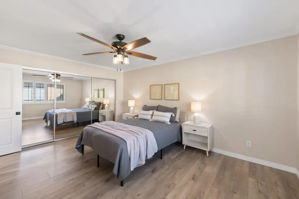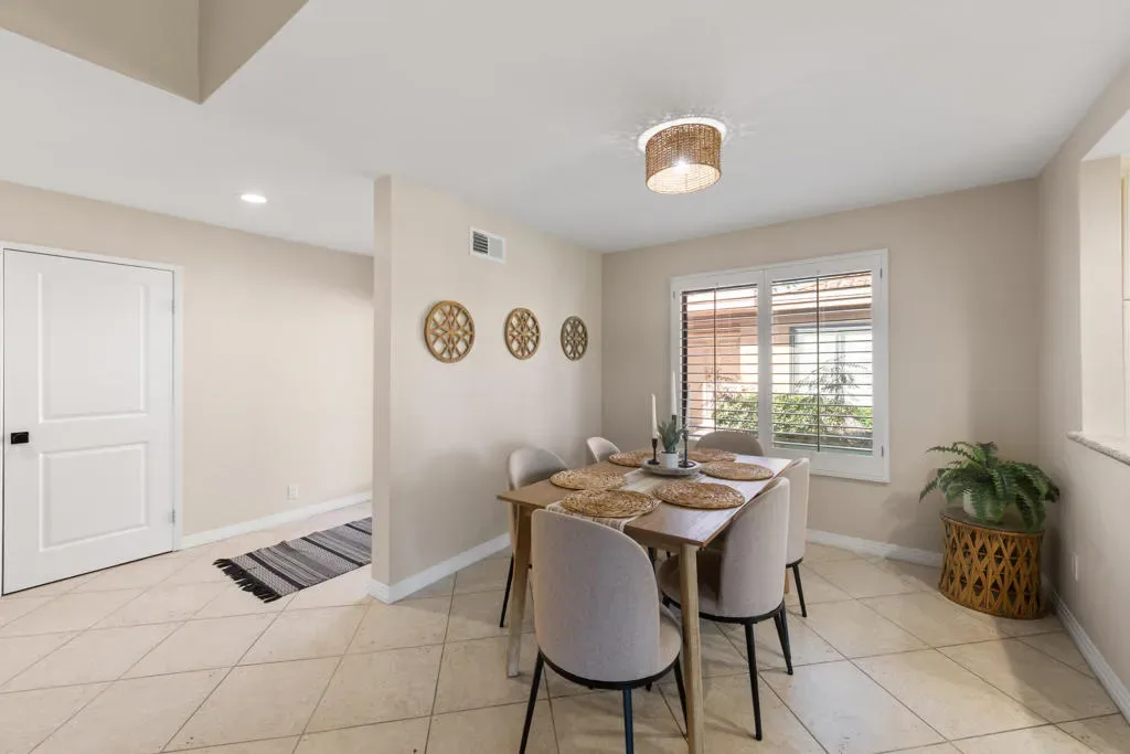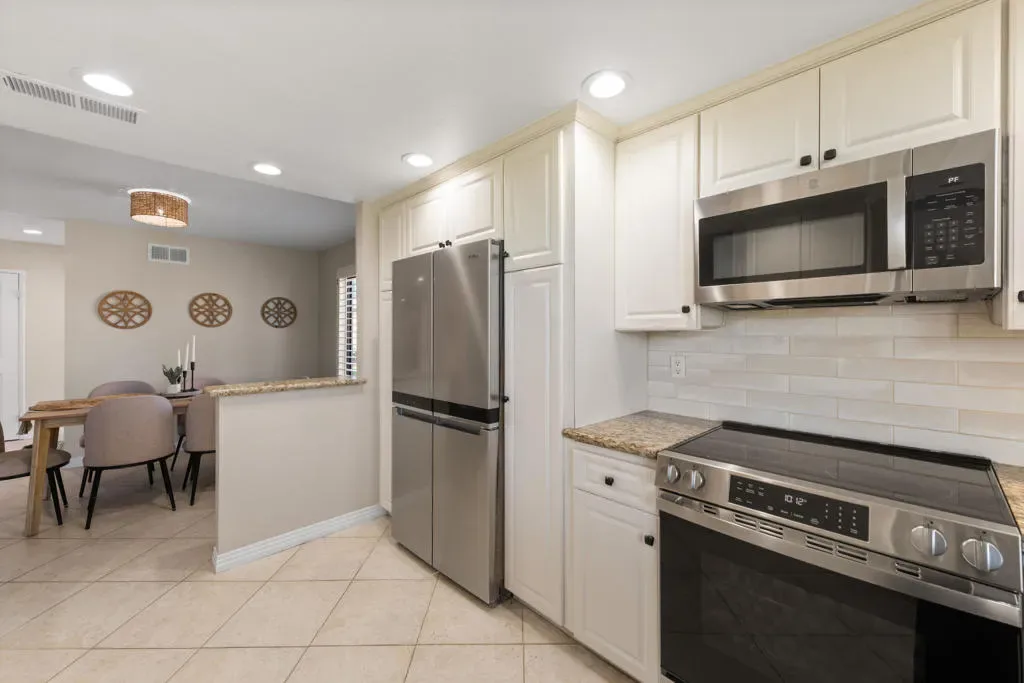Discover this exceptional Sunrise Country Club residence nestled within one of Rancho Mirage’s premier gated communities. This spacious home overlooking the lush 14th fairway offers serene golf course and mountain vistas. Step inside to an inviting open layout showcasing approximately 1,650 sq ft. This expanded desirable Barcelona model features 2 bedrooms, 2 baths, plus a versatile den/office/3rd bedroom. The bright living room boasts vaulted ceilings and sliding glass door that connect indoor living to the private patio – ideal for morning coffee or sunset relaxation. Additional features: dual pane windows, plantation shutters, newer AC, garage door, and laminate flooring. The kitchen with granite counters and newer appliances, offers abundant cabinetry and counter space with a natural flow into the adjacent dining area. The comfortable primary suite includes an ensuite bathroom and walk-in shower. Convenience meets functionality with an indoor laundry room that opens directly to the attached 2 car garage. Sunrise Country Club offers an exceptional resort-style living with 24 hour security, golf, 21 swimming pools, 19 spas, tennis and bocce courts, fitness center, clubhouse amenities, and more, all within a beautifully landscaped enclave just minutes from world class dining, shopping, and desert recreation.