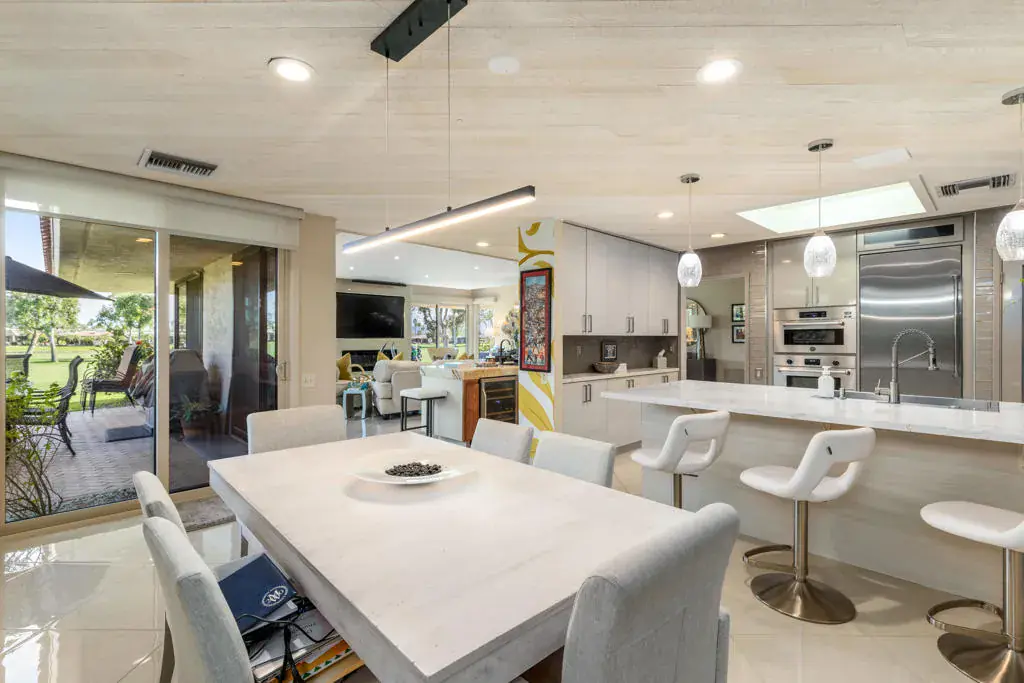 Welcome to 10 Lafayette Drive! This highly coveted, recently remodeled Shaughnessy floorplan offers 2,940 square feet of contemporary living space accompanied by gorgeous west mountain views. As you enter the spa-like courtyard you are greeted with lush, mature landscaping, a private pool and spa, and a lounge area with a fire feature. It’s the perfect place to soak in the desert sun and admire the beautiful sunsets. Custom glass double doors welcome you inside of the home and lead you into the main living space. The open floorplan and high ceilings create a light and bright space that opens out to the back patio that has stunning southern mountain views. The kitchen is equipped with custom cabinetry, quartz counter tops, and Bertazzoni stainless-steel appliances. The adjacent dining area opens out to its own private patio providing additional dining and/or sitting space. All bedrooms have full ensuite baths, oversized closets, and private patio areas. This meticulously maintained home includes leased solar, Amblin windows & doors, custom window treatments, 24×24 porcelain tile flooring, and resurfaced pool. The home encompasses luxury, comfort, spacious living, and gorgeous golf course and mountain views. Residents of The Springs Country Club enjoy access to numerous amenities, including multiple pools and spas, a luxurious clubhouse with both fine and casual dining options, as well as golf, tennis, and pickleball courts. The community also boasts a fitness center to maintain an active lifestyle. Start enjoying your desert lifestyle today!