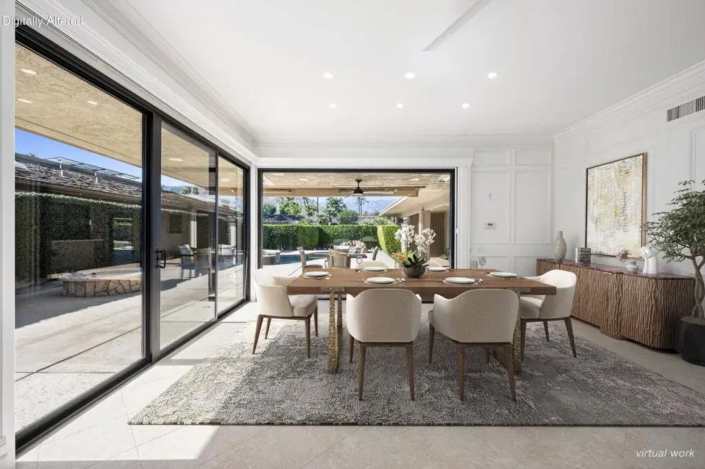 Welcome to Modern Romance meets Luxury Living @ it’s finest! If you’re looking for an upscale, rare desert estate, go no further! This stunning, detached St. Andrews floor plan is a newly renovated; 3BD/4BA sanctuary that offers the perfect blend of elegance, privacy and comfort, ideal for those seeking the ultimate high-end desert lifestyle. This private retreat on an expansive lot offers 3,644 square feet of living space and speaks ”Elegance” at every turn. The bright, open floor plan is perfect for both relaxed desert living, and entertaining guests in style. You’ll love the professional kitchen outfitted with quartz countertops, with a rare, custom 60” Viking double Professional Chef’s cooktop/oven and double Designer Frig. And for those who demand entertaining in style, there’s even a secondary catering kitchen/Butler’s Pantry offering high-end appliances, dishwasher, bathtub sink, and Subzero wine cabinet, Impressive! The primary bedroom offers a quiet retreat, adorned with designer quartz countertops and high-end finishes throughout. The additional bedrooms offer luxurious finishes and privacy for family or guests, with four bathrooms featuring imported Italian stone – talk about bathing in luxury! Beautiful custom woodwork is found throughout this stunning home. Enjoy down-time in the dedicated media room or relax in your expansive private courtyard, showcasing a pebble-tec saline pool, spa, and flowing rock water feature. With stunning southern views of the gorgeous San Jacinto mountains, you won’t want to leave. Add a gas BBQ, gather around the gas fire pit, and enjoy serene desert moments. An exercise room with a sauna are just some of the many fabulous touches to enjoy. At the warm and friendly Springs Country Club, you’re just a short drive from amenities like Eisenhower Medical Center, The River shopping center and world famous El Paseo.NOTE: All rooms shown furnished have been virtually staged.