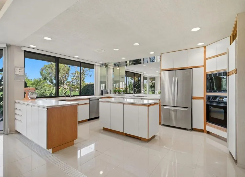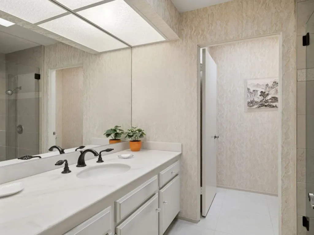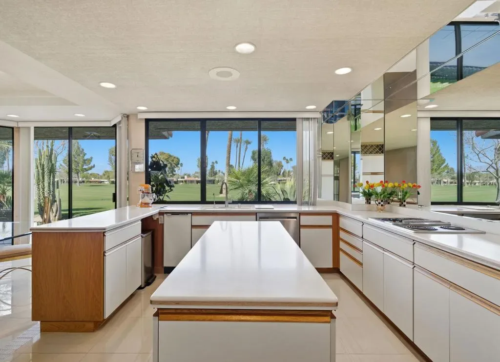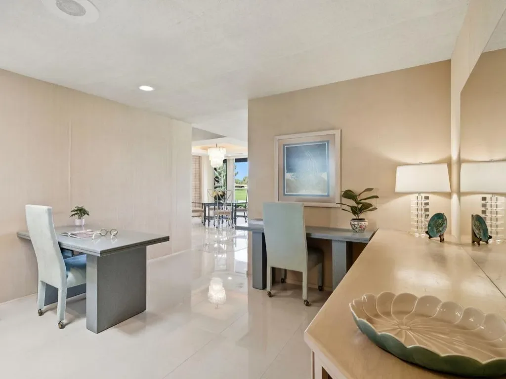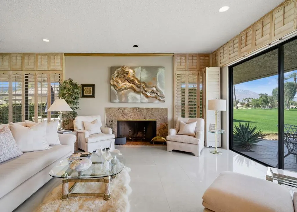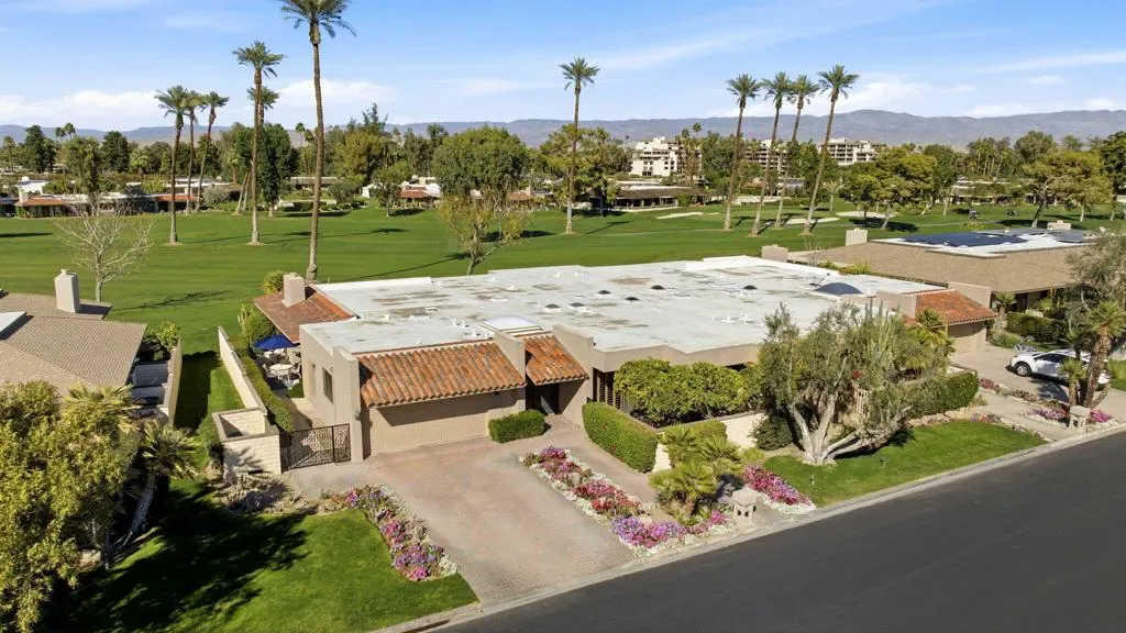 Ideally situated on the golf course in The Springs Country Club, this Broadmoor floorplan offers a rare combination of light, views, and thoughtful design. Positioned to capture expansive north and northwest exposure, the home enjoys 180-degree double fairway and mountain views from the primary living spaces, creating beautiful natural light throughout the day. The well-designed 3,037 sq ft layout features three spacious ensuite bedrooms and an open, easy-living floorplan with the living room, kitchen, and primary suite all oriented toward the views. A perfectly placed wet bar enhances the flow of the main living area, while an additional room off the kitchen provides flexible space ideal for a home office, library, or cozy TV room. Entry is offered through a private front courtyard or directly from the two-car plus golf cart garage into the laundry room, offering both charm and everyday convenience. The primary suite enjoys exceptional views including from the ensuite bath, and has an oversized walk-in closet–a notable feature. All bedrooms are well proportioned and offer sliding door access to a private patio, allowing for seamless indoor-outdoor living.The home has been meticulously maintained, with pride of ownership evident throughout. It is move-in ready, while also presenting an excellent opportunity for a buyer to bring their own ideas and elevate the home to a double ”wow.” A spacious rear patio provides the ideal setting to relax, watch the golfers, or enjoy sunsets framed by palms and fairways. The Springs HOA dues include a Social Membership to The Club, with the option to upgrade to a Golf Membership for an additional fee, making it one of the most affordable and desirable clubs in Rancho Mirage. The golf course has recently undergone a significant irrigation upgrade and is in excellent condition. Springs Country Club, it is where you belong!