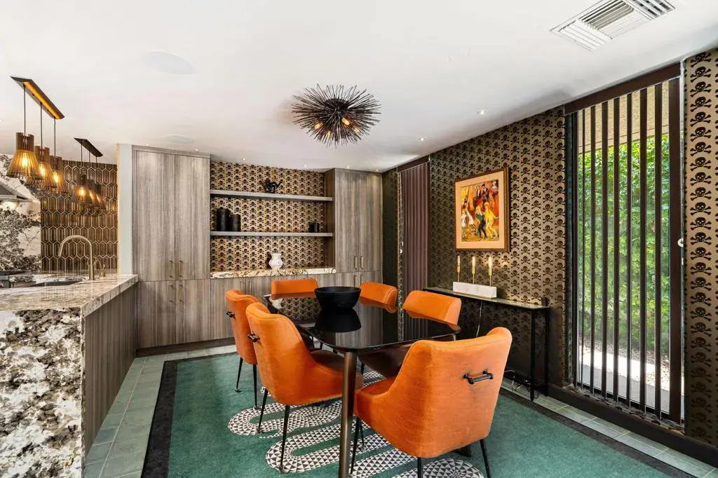 Inspired and unapologetically unique, this Contemporary Cyprus Point residence is designed for those who appreciate style, creativity, and elevated living. Offering 3 bedrooms, 3 baths, and 3,088 sq ft, the home seamlessly blends modern elegance with a touch of Hollywood glamour. Completely upgraded throughout, highlights include a dramatic entry, open-concept living spaces, custom bar with high-gloss finishes, bold accent walls, copper metallic 3-D kitchen tile, and distinctive designer details throughout.The chef’s kitchen features striking Brazilian stone surfaces, a high-end Italian gas cooktop, custom cabinetry, and a 160-bottle wine refrigerator, flowing effortlessly into both the living and formal dining areas–ideal for entertaining. The primary suite is a private retreat with a spa-inspired bath, steam shower, ample closet space, and direct access to the pool. Two guest bedrooms each offer their own bath and private patio.Outdoors, enjoy a private pool surrounded by manicured landscaping and inviting lounge and dining areas. Additional features include a spacious garage with split A/C. Located in The Springs Country Club, residents enjoy access to an 18-hole golf course, tennis courts, pickle ball courts, bocce courts, a state-of-the-art fitness center, and a beautiful clubhouse with multiple dining options. A true lifestyle property that delivers glamour, comfort, and sophistication.