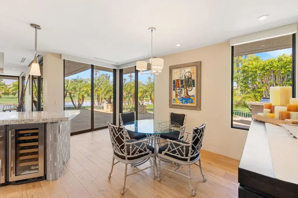 Set on one of the premier west-facing, lakefront sites in The Springs Country Club, this beautifully reimagined Shaughnessy plan overlooks the 13th tee with tranquil water views and expansive fairways beyond. Mature landscaping and thoughtful positioning create a rare sense of seclusion, allowing you to enjoy the scenery without sacrificing intimacyA dramatic entry leads into a light-filled interior where French wide-plank white oak floors and floor-to-ceiling Fleetwood glass doors establish a seamless connection to the outdoors. Coffered ceilings with soft indirect lighting add architectural depth while maintaining a warm, livable elegance. The home strikes a refined balance between modern sophistication and everyday comfort.This is a comprehensive, top-to-bottom renovation executed with intention and quality at the forefront. Every finish was carefully selected, every system thoughtfully updated–resulting in a residence that lives and feels like new construction. It was redesigned for long-term enjoyment, not resale.The open-concept living areas flow effortlessly to the outdoor spaces, creating an ideal environment for entertaining or quiet relaxation by the lake. Whether enjoying morning light over the water or evening reflections across the fairway, the experience is both peaceful and elevated.With generous ensuite bedrooms and a thoughtfully designed primary retreat, the floor plan offers flexibility and privacy. For buyers seeking premier positioning, meaningful upgrades, and true move-in readiness within The Springs Country Club, this residence delivers on every level.