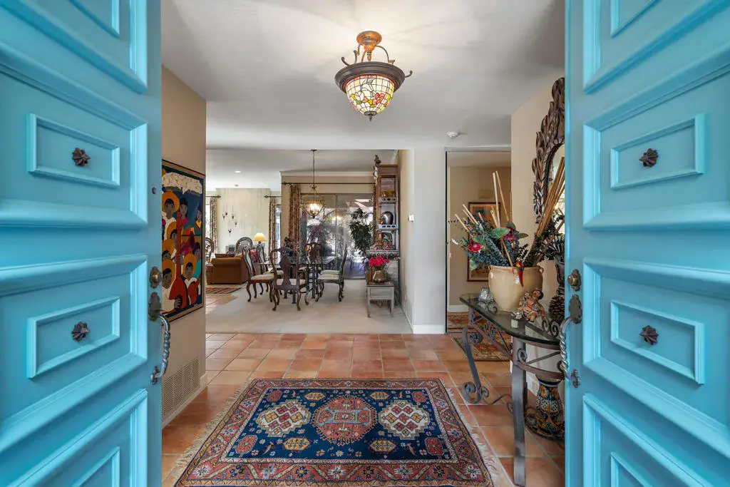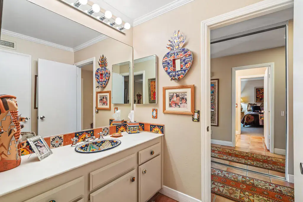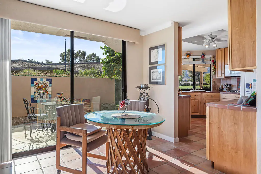 Welcome to Your Desert Oasis in The Springs!Discover Serenity on a Premier LotNestled in a quiet cul-de-sac, this exquisite home offers a rare opportunity to experience luxury and tranquility in The Springs. This property boasts breathtaking greenbelt, fairway, and mountain views that create an idyllic backdrop for your everyday life.**Elegant Living Redefined – The Augusta Floor Plan**Step inside the Augusta floor plan that has been expanded to create a larger den off the kitchen. This generous family room/den is versatile enough for all your living needs. Entertain with flair in the formal living and dining room, where a stunning Travertine slab fireplace extends to the ceiling, and a walk-in wet bar is ready for your gatherings. With walls of glass sliders surrounding the space, you’ll enjoy unobstructed vistas of the magnificent landscape.There are two generous sized bedrooms with ample closet space. Both bathrooms have been designed with hand painted tiles.Outside, discover dual patios that beckon you to unwind and soak in the expansive greenbelt and mountain views. Just steps away, one of the community’s pool/spas offers a private retreat, blending the convenience of a nearby amenity with the feel of your own personal oasis.**Ample Space for Your Lifestyle**The property includes a spacious garage, perfect for accommodating a golf cart and two vehicles. An oversized laundry and storage room provides extra functionality and convenience.**Resort-Style Living at The Springs**The Springs isn’t just a place to live – it’s a lifestyle. Enjoy direct access to the 18-hole Desmond Muirhead world-class golf course, along with tennis, pickleball, and a state-of-the-art fitness center. With a vibrant community spirit, partake in endless social gatherings and indulge in several on-site dining options.**Prime Rancho Mirage Location**Situated in the heart of Rancho Mirage, this home offers proximity to cultural and historical landmarks including the iconic Annenberg Estate. Ease of access to the Eisenhower Medical Center ensures peace of mind, while upscale shopping, dining, and entertainment are just moments away.**Your Dream Home Awaits**If you seek a harmonious blend of elegance, comfort, and convenience, look no further than this extraordinary home in The Springs. Come experience the perfect balance of luxury living against a backdrop of natural beauty.