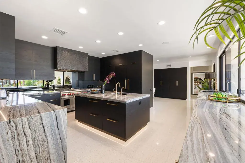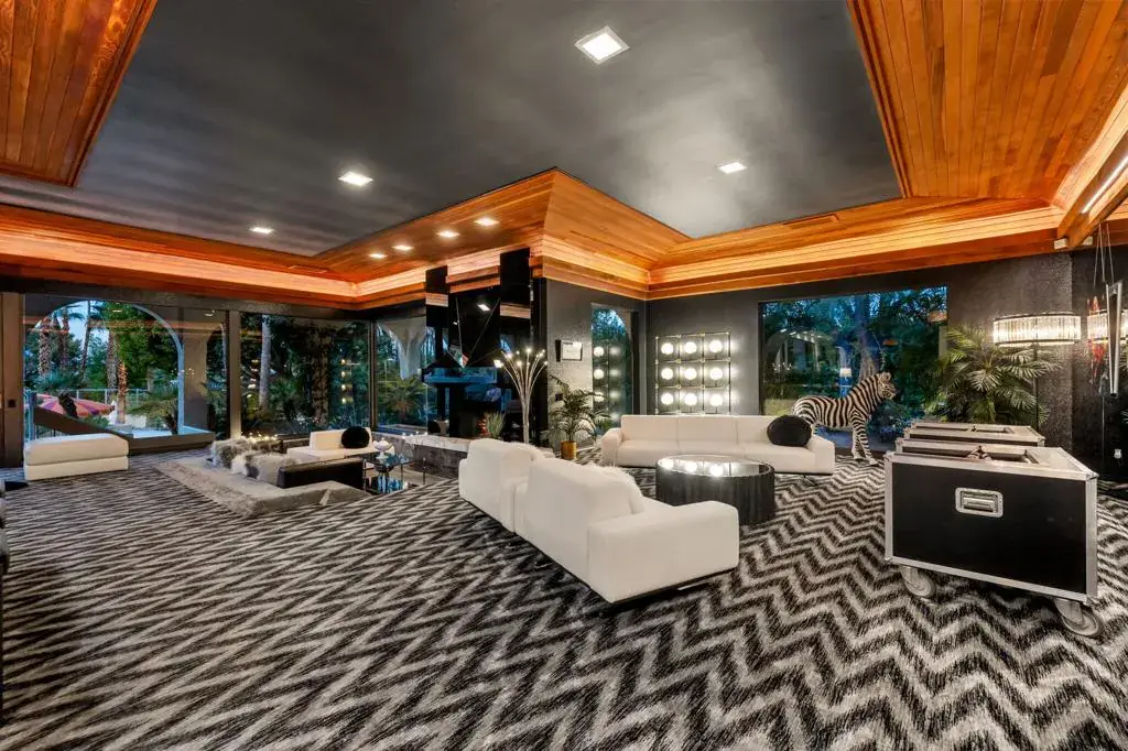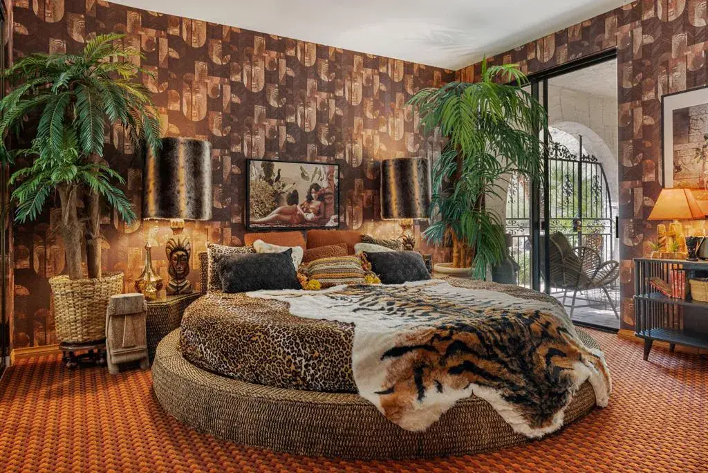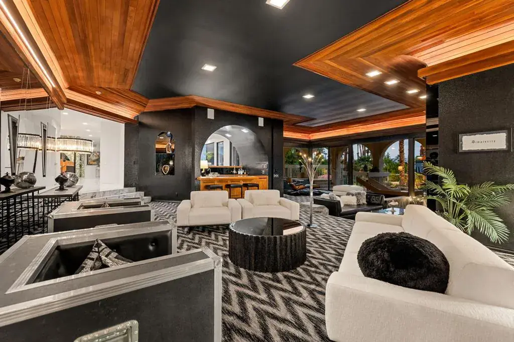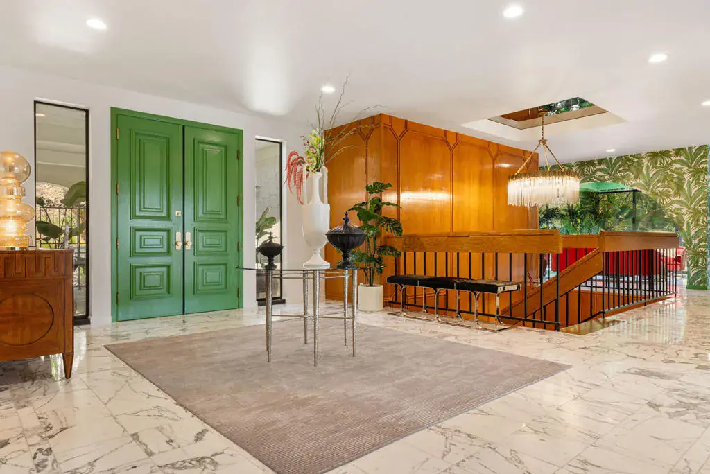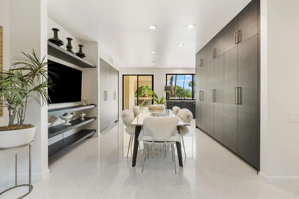 Perched at the top of a very private cul-de-sac in the guard-gated enclave of Thunderbird Heights lies a large multi-generational home that combines classic California architecture with artful design and enjoyable amenities. This multi-level and sprawling 6-bedroom, 5-bath estate is a playground created to inspire, entertain, and have some delightful fun for yourself and your loved ones. Newly reimagined, this property was formerly owned by celebrated songwriter and music producer Michael Masser (and visited by Diana Ross, Barbara Streisand, Neil Diamond, and Whitney Houston) this home carries a legacy of creativity that resonates throughout. The expansive living area is centered by a dramatic sunken fireplace and retro-chic conversation pit, and is adjoined by a sleek wet bar and direct access to the loggia. The chef’s kitchen is a showpiece boasting terrazzo flooring, floor-to-ceiling custom cabinetry, top-of-the-line appliances, and a large pass-through window to the upper terrace for effortless indoor-outdoor entertaining. Enjoy sunny mornings in the glamorously tropical atrium lounge or outside on the loggia from your primary suite. The primary suite is an expansive hideaway overlooking lush landscaping and featuring a spa-inspired bath with a soaking tub, steam shower, separate sauna, dual vanities, a walk-through custom closet, and an adjoining private yoga room. Each ensuite guest room offers a curated story and direct outdoor access through its floor-to-ceiling glass sliders. The walk out level offers a massive rumpus room with a retro kitchenette, a new poolside lounge and shower room, additional guest/staff room, laundry, and wine storage. Multiple levels and spaces for multi-generational entertaining or activity abound. The huge resort-style backyard is a private and lush wonderland complete with a shimmering pool and spa, a sunken and fully lit tennis court, several lounging, grilling, and dining areas, fragrant fruit and mature ficus trees, and more than 50 soaring palms swaying over your sun-soaked desert oasis. 70663 Oroville offers it all.