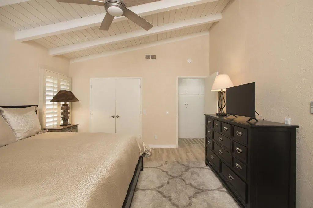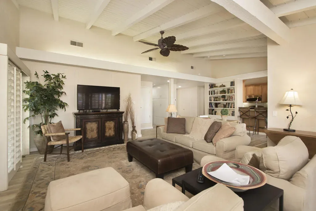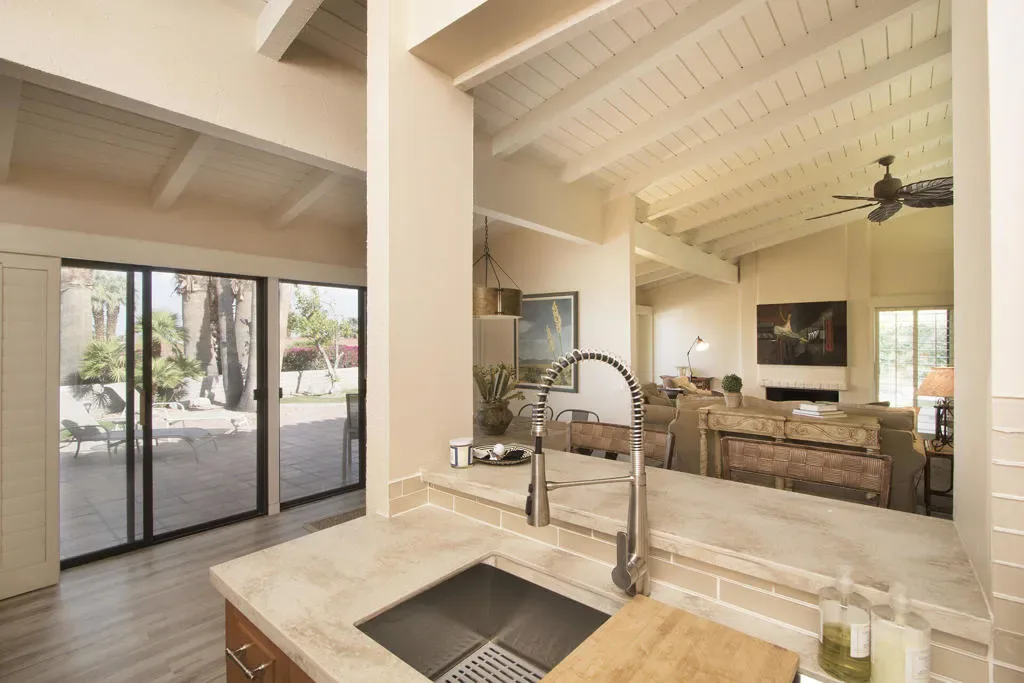 Available for the 2026-2027 Season!! Located in the guard gated community of Thunderbird Villas this home is perfect for next desert retreat. This three bedroom, three bathroom furnished home boasts recent renovations with the classic desert charm intact. Vinyl plank flooring, high ceilings, two-car garage, stainless steel appliances, new washer/dryer and a charming outdoor space with desert views are just a few of the features this home has to offer. Offered turnkey furnished and with a minimum stay of 5 months. November $6,000, December $6,000, January – April $9,000 Per Month.