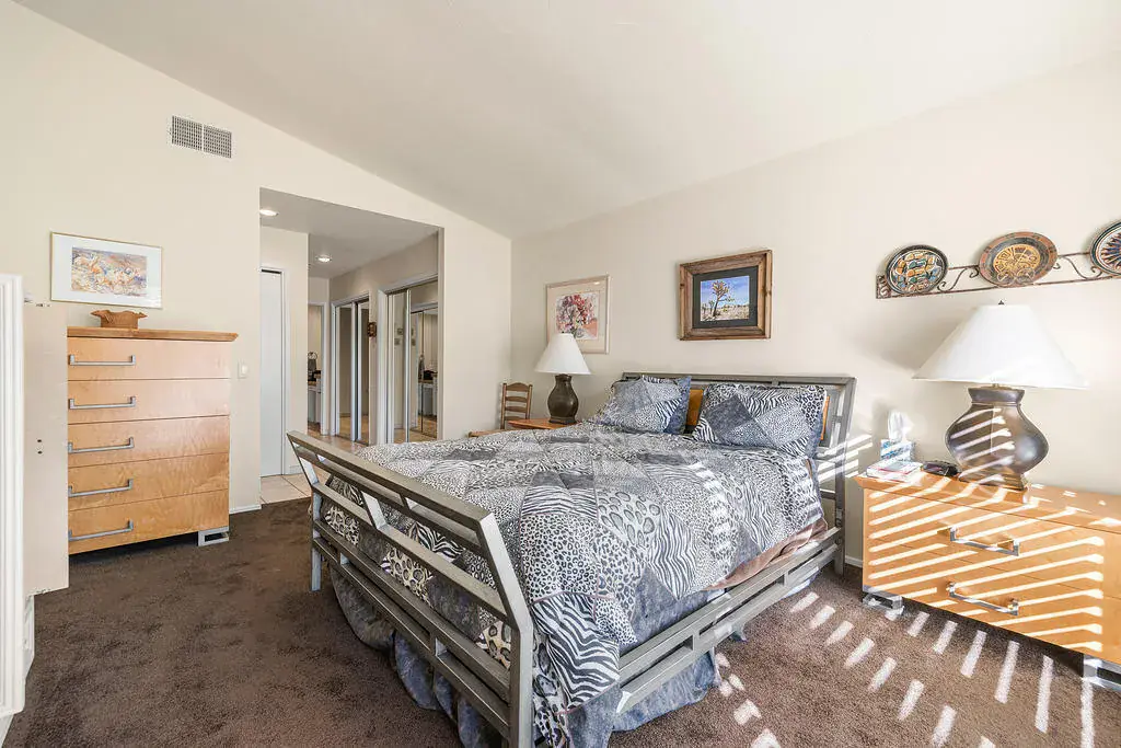 Comfortable 3-Bedroom, 2.5-Bathroom Condo in Thunderbird Villas. Nestled in the prestigious Thunderbird Villas, this former model home offers an exceptional blend of comfort, convenience, and breathtaking surroundings., This residence also provides a perfect balance of privacy and community. Step inside an inviting open-concept living space, where the dining area, built-in bar, cozy fireplace, and stylish kitchen seamlessly flow together–ideal for both entertaining and everyday relaxation. Expansive windows invite breathtaking mountain views, filling the home with natural light and serene beauty. The thoughtfully designed layout places the primary suite in its own private wing, while the guest bedrooms are located on the opposite side, ensuring comfort and tranquility. Outdoors, a spacious patio beckon with a built-in barbecue, perfect for dining and enjoying the picturesque desert evenings. Just beyond, is a community green space adorned with citrus trees adds to the charm, while one of the community’s sparkling pools is just a short stroll away. Experience the perfect blend of luxury and lifestyle in this exceptional Thunderbird Villas home–where every detail enhances the beauty of desert living.