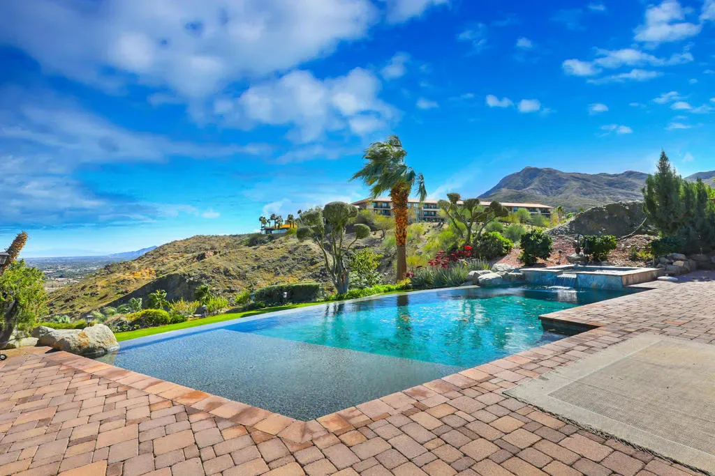 Stunning ridge line home with fabulous valley views in one of the Deserts hidden gems, Villas of Mirada, in Rancho Mirage. You are in the heart of the desert with easy access to all of the amazing venues here.Features an open floor plan and outdoor living space that flows seamlessly together, creating the perfect desert lifestyle.A kitchen for the serious cook features Wolf, SubZero and Thermador appliances and a large island with plenty of seating with adjacent formal dining space. Spacious primary suite has down valley views and a luxurious bathroom. 2 ensuite bedrooms are in the main house. A casita with private entrance is off the entry courtyard. Enjoy outdoor living with a covered patio featuring a fireplace , valley views, an infinity saltwater pool and spa, covered BBQ and a elevated spot perfect for yoga or meditation. Tranquil patios off the dining room and one bedroom and a entry courtyard provide peaceful areas to relax. Did I mention Views? A community center features a Gym and a pool and homeowners enjoy privileges and discounts at the near by Ritz Carlton-Rancho Mirage. Virtual tour and floorplan available at www.Homes.com