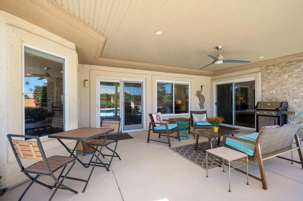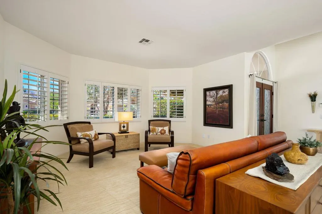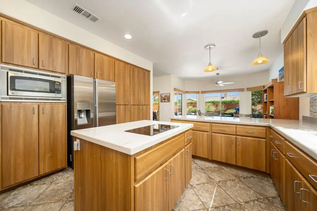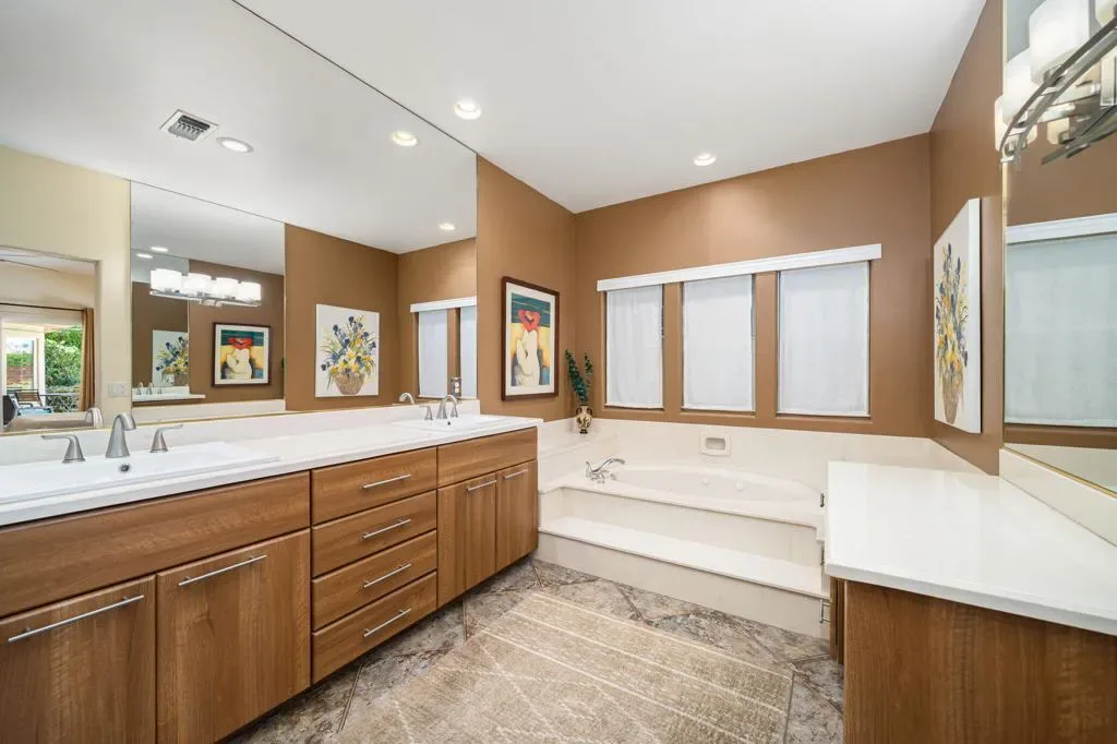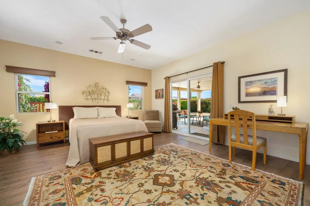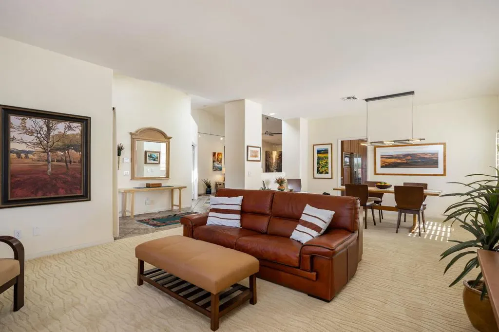 Rancho Mirage gated pool home in the private residential enclave of White Sun Estates, a hidden gem offering spacious living, resort-style outdoor amenities, and an exceptional central valley location. White Sun Estates is an intimate community of just 52 residences with low monthly HOA dues, attractive homes, and a peaceful setting. The neighborhood was thoughtfully developed on the historic grounds of the White Sun Guest Ranch, a beloved desert retreat dating back to the 1940s.Enter through an elegant double-door entry where your eye is immediately drawn through the home to the back patio and sparkling pool, creating a beautiful sightline and seamless indoor-outdoor connection. This 4-bedroom, 3-bath residence offering 2,947 square feet feels both spacious and welcoming. The light and airy interior is filled with abundant natural light, creating warm and inviting living spaces designed for both everyday comfort and effortless entertaining. From the living room, enjoy west-facing mountain and sunset views that enhance the relaxed desert ambiance.The updated kitchen serves as the heart of the home, flowing seamlessly into the living and dining areas–ideal for gatherings with family and friends. The well-designed floor plan is thoughtful and balanced, including a private primary bedroom retreat enjoying relaxing views of the backyard and pool, creating a quiet sanctuary to begin and end the day.Step outside to your expansive private backyard designed for inspired outdoor living, set on a generous 11,000+ square foot lot. Enjoy a resort-style pool, soothing jacuzzi, and low-maintenance desert landscaping, while a newer patio cover creates shaded space for outdoor dining, entertaining, and relaxing.Recent updates include induction cooktop, epoxy garage flooring, patio cover, resurfaced pool decking, ceiling fans, blinds, skylight, and water heater.Ideally located near El Paseo, The River, the McCallum Theatre, Eisenhower Medical Center, hiking trails, the CV Link cycling path, downtown Palm Springs, and Palm Springs International Airport.This exceptional residence offers a rare blend of space, comfort, and location–an outstanding opportunity to enjoy the very best of desert living.