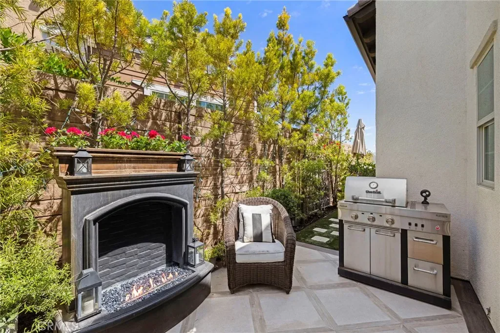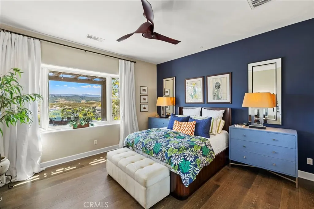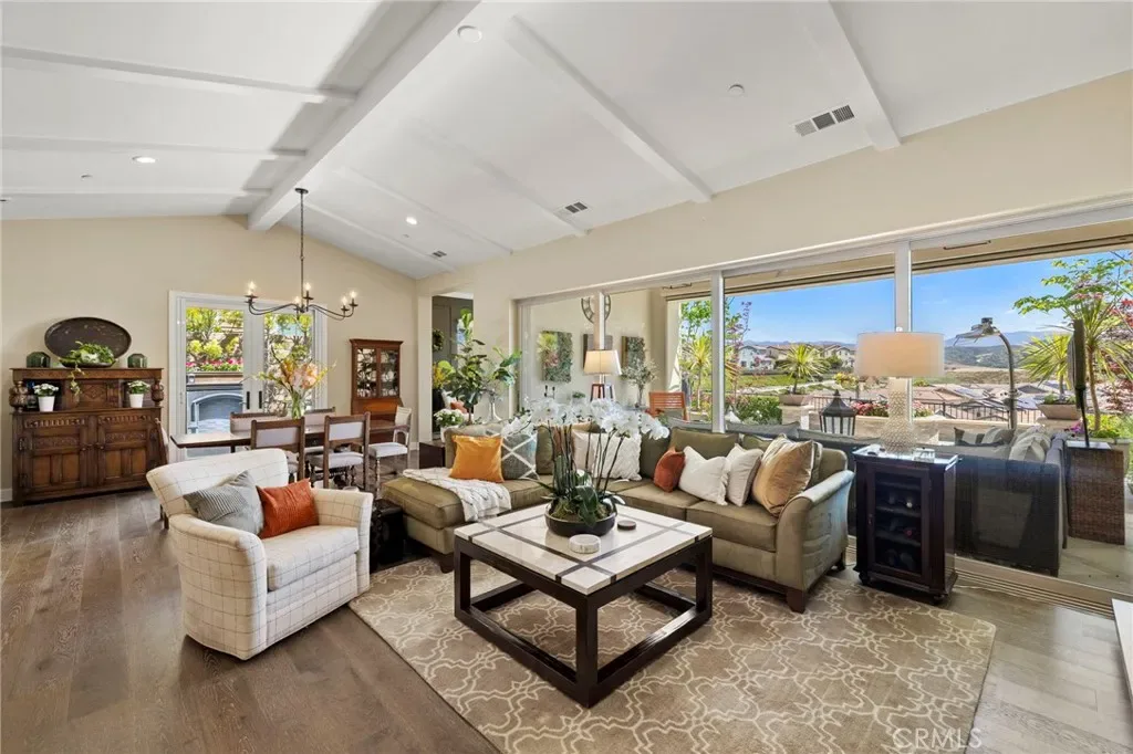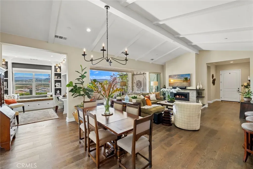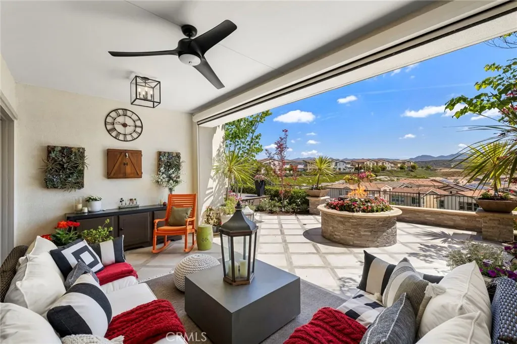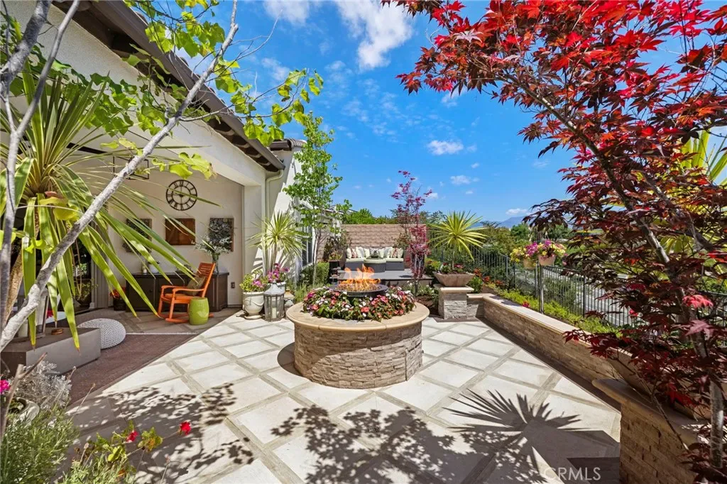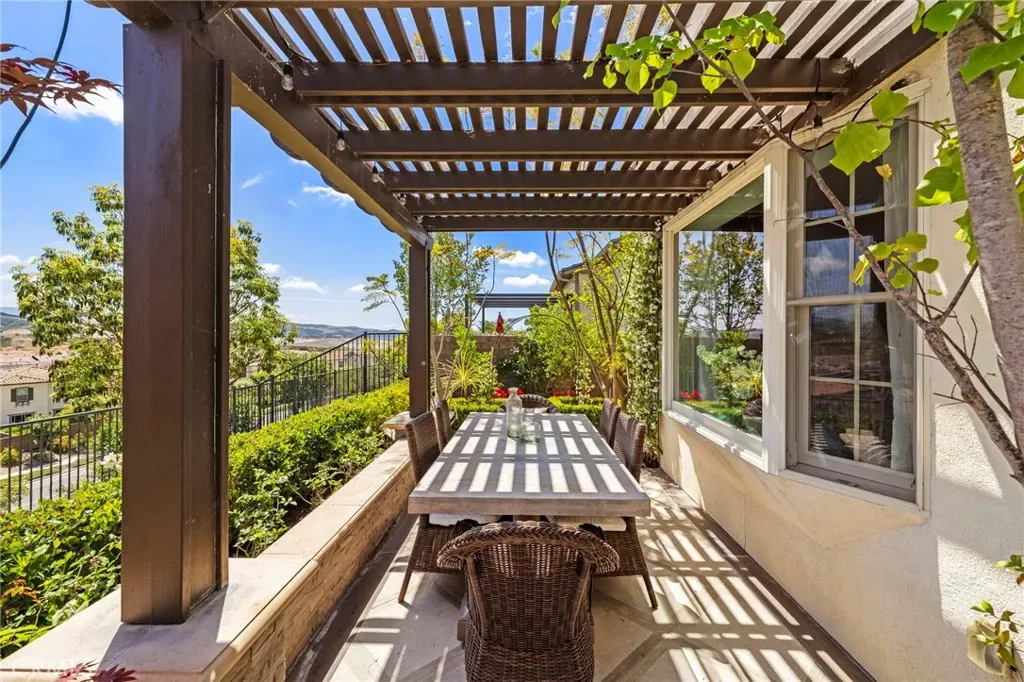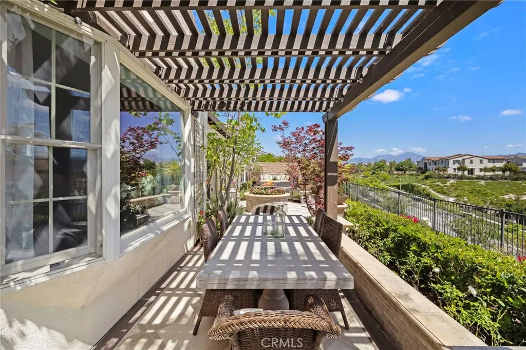 Set along the edge of the community for exceptional privacy & sweeping mountain views, this beautifully upgraded single-level residence offers a rare blend of tranquility & convenience. Just moments from the renowned amenities of Esencia, plus the added benefits of the Gavilan enclave exclusively for those active adults over 55. This home showcases model-quality finishes & thoughtful upgrades throughout. At the heart of the home, a gourmet kitchen features granite countertops with sleek tile backsplash, custom floating shelves & cove lighting, an upgraded stainless steel appliance package & a versatile laundry room with butler’s pantry functionality. Striking two-tone cabinetry & a large center island flow seamlessly into the expansive living room with cozy gas fireplace, highlighted by a vaulted wood-beamed ceiling & ample space for both everyday living & formal dining. Rich hardwood flooring extends throughout, complemented by gorgeous designer tile in the bathrooms. The primary suite offers a peaceful retreat with bay window framing the stunning view, a spacious walk-in closet with custom built-ins & a beautifully remodeled bathroom complete with frameless glass shower with marble inset & dual shower heads, double vanity sinks, chandelier & luxurious soaking tub. On the opposite side of the house is the secondary bedroom or dual master also with walk-in closet & remodeled ensuite bathroom. A flexible bonus room, currently styled as an office or den, features custom built-ins & opens to the main living area, enhancing the home’s open-concept feel. Step outside through expansive sliding glass panels to a beautifully curated entertainer’s backyard designed for effortless indoor-outdoor living year-round. A serene California room invites you to unwind while taking in picturesque views, enhanced by a sun-drenched deck, trellis-covered dining area perfect for al fresco gatherings & a charming garden that adds warmth & character to this private outdoor retreat. Two-car attached garage with direct access, built-in storage & epoxy flooring. Residents enjoy an elevated 55+ lifestyle with access to Gavilan’s resort-style amenities, including a clubhouse with a staffed bar, outdoor kitchen & BBQ area, picnic spaces overlooking bocce ball courts, a fully equipped fitness center, yoga studio & a saltwater pool & spa. Ideally located near scenic hiking trails, tennis, pickle ball, golf, shopping & just a short bike ride to the historic charm of San Juan Capistrano.