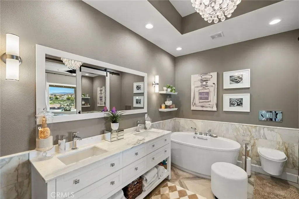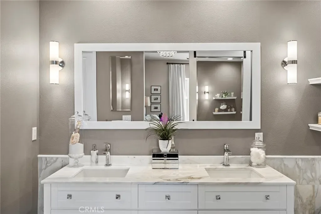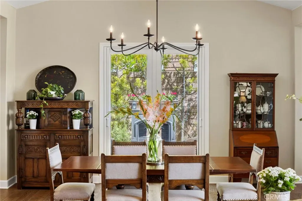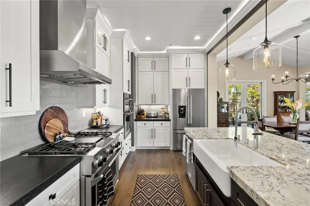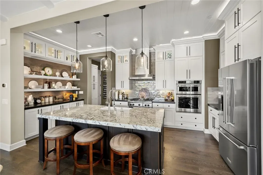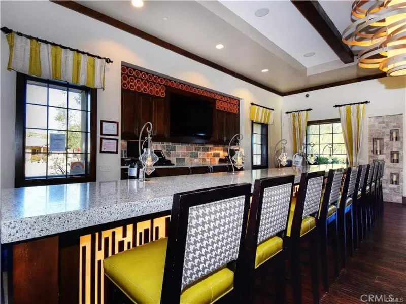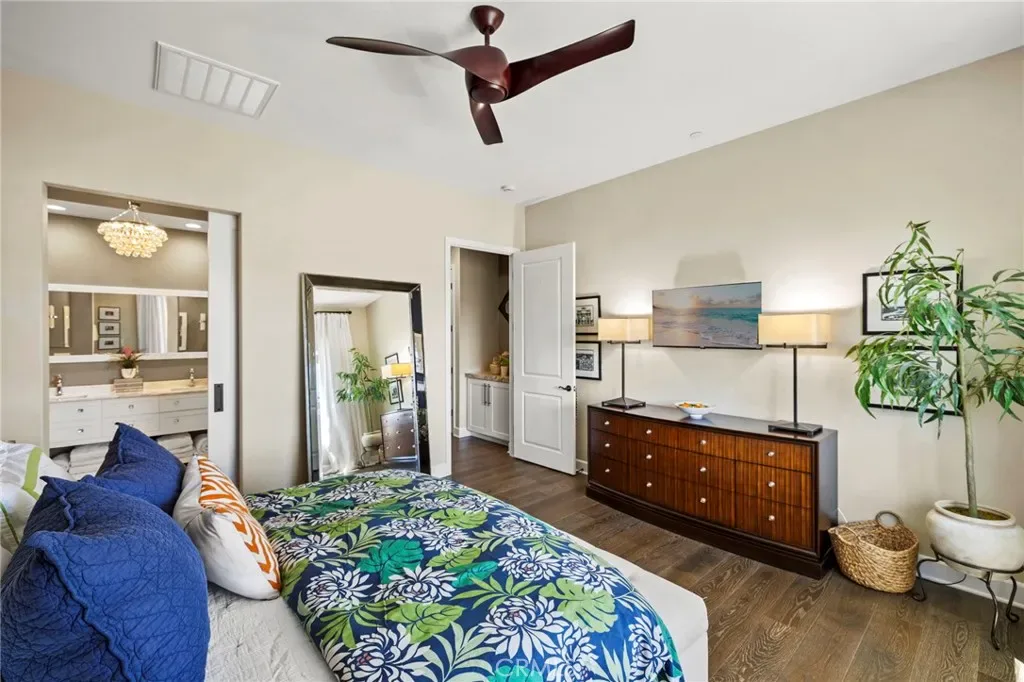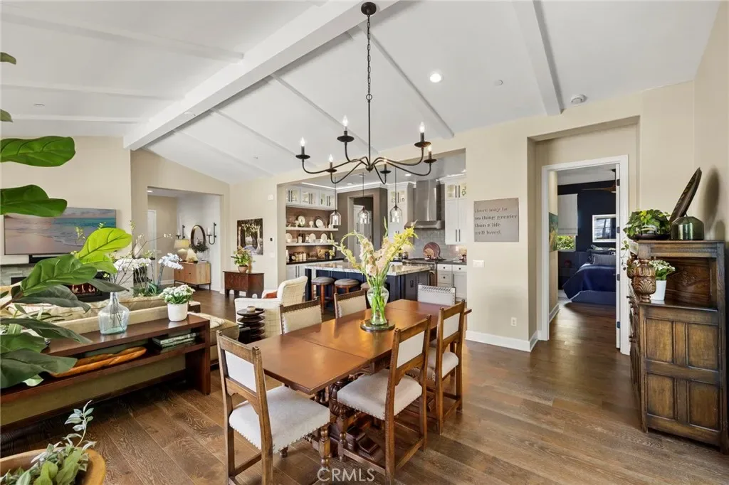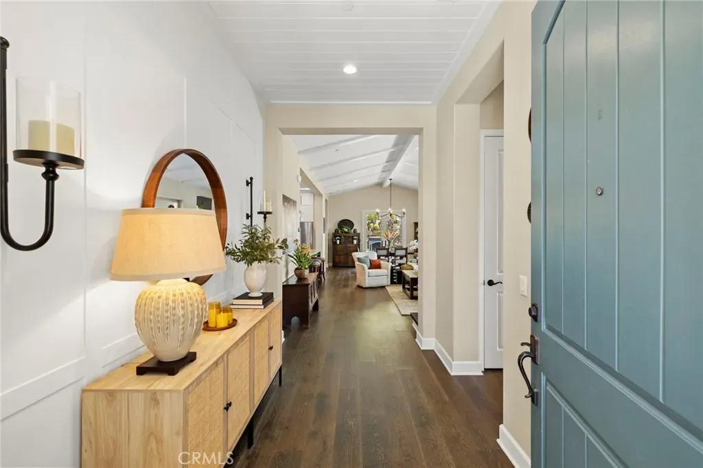 Set along the edge of the community for exceptional privacy & sweeping mountain views, this beautifully upgraded single-level residence offers a rare blend of tranquility & convenience. Just moments from the renowned amenities of Esencia, plus the added benefits of the Gavilan enclave exclusively for those active adults over 55. This home showcases model-quality finishes & thoughtful upgrades throughout. At the heart of the home, a gourmet kitchen features granite countertops with sleek tile backsplash, custom floating shelves & cove lighting, an upgraded stainless steel appliance package & a versatile laundry room with butler’s pantry functionality. Striking two-tone cabinetry & a large center island flow seamlessly into the expansive living room with cozy gas fireplace, highlighted by a vaulted wood-beamed ceiling & ample space for both everyday living & formal dining. Rich hardwood flooring extends throughout, complemented by gorgeous designer tile in the bathrooms. The primary suite offers a peaceful retreat with bay window framing the stunning view, a spacious walk-in closet with custom built-ins & a beautifully remodeled bathroom complete with frameless glass shower with marble inset & dual shower heads, double vanity sinks, chandelier & luxurious soaking tub. On the opposite side of the house is the secondary bedroom or dual master also with walk-in closet & remodeled ensuite bathroom. A flexible bonus room, currently styled as an office or den, features custom built-ins & opens to the main living area, enhancing the home’s open-concept feel. Step outside through expansive sliding glass panels to a beautifully curated entertainer’s backyard designed for effortless indoor-outdoor living year-round. A serene California room invites you to unwind while taking in picturesque views, enhanced by a sun-drenched deck, trellis-covered dining area perfect for al fresco gatherings & a charming garden that adds warmth & character to this private outdoor retreat. Two-car attached garage with direct access, built-in storage & epoxy flooring. Residents enjoy an elevated 55+ lifestyle with access to Gavilan’s resort-style amenities, including a clubhouse with a staffed bar, outdoor kitchen & BBQ area, picnic spaces overlooking bocce ball courts, a fully equipped fitness center, yoga studio & a saltwater pool & spa. Ideally located near scenic hiking trails, tennis, pickle ball, golf, shopping & just a short bike ride to the historic charm of San Juan Capistrano.