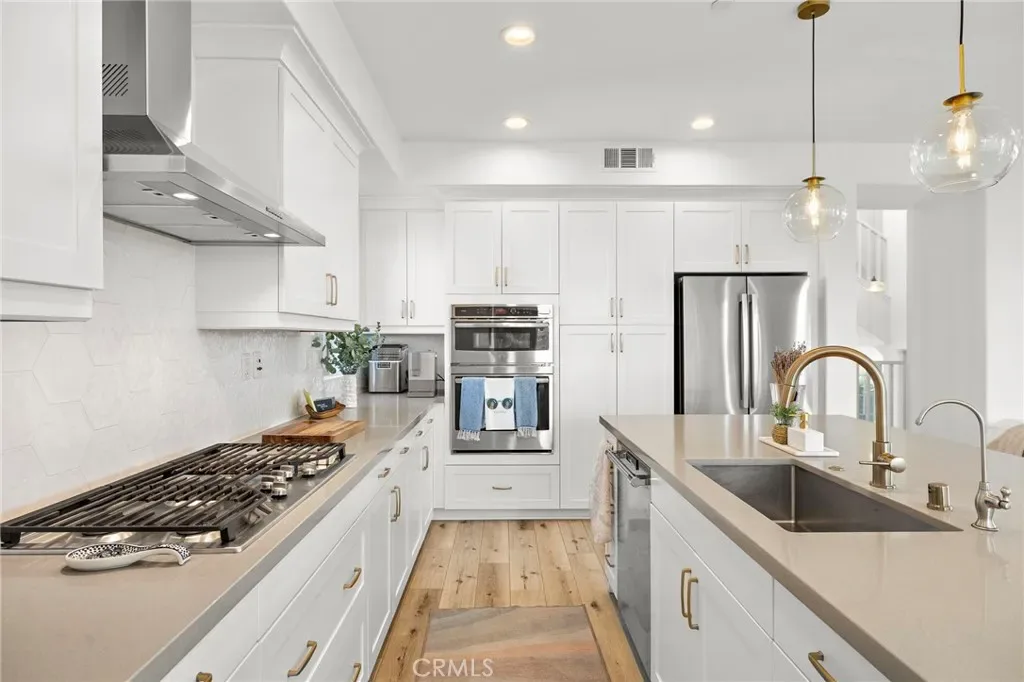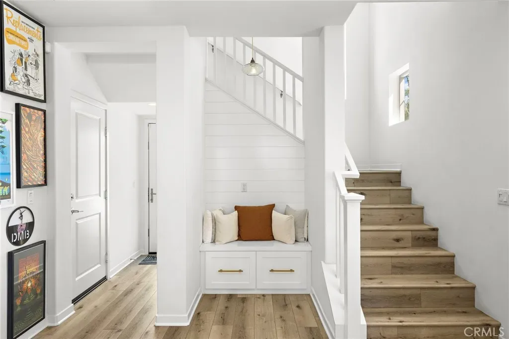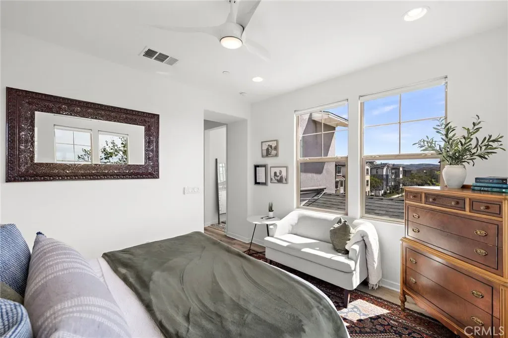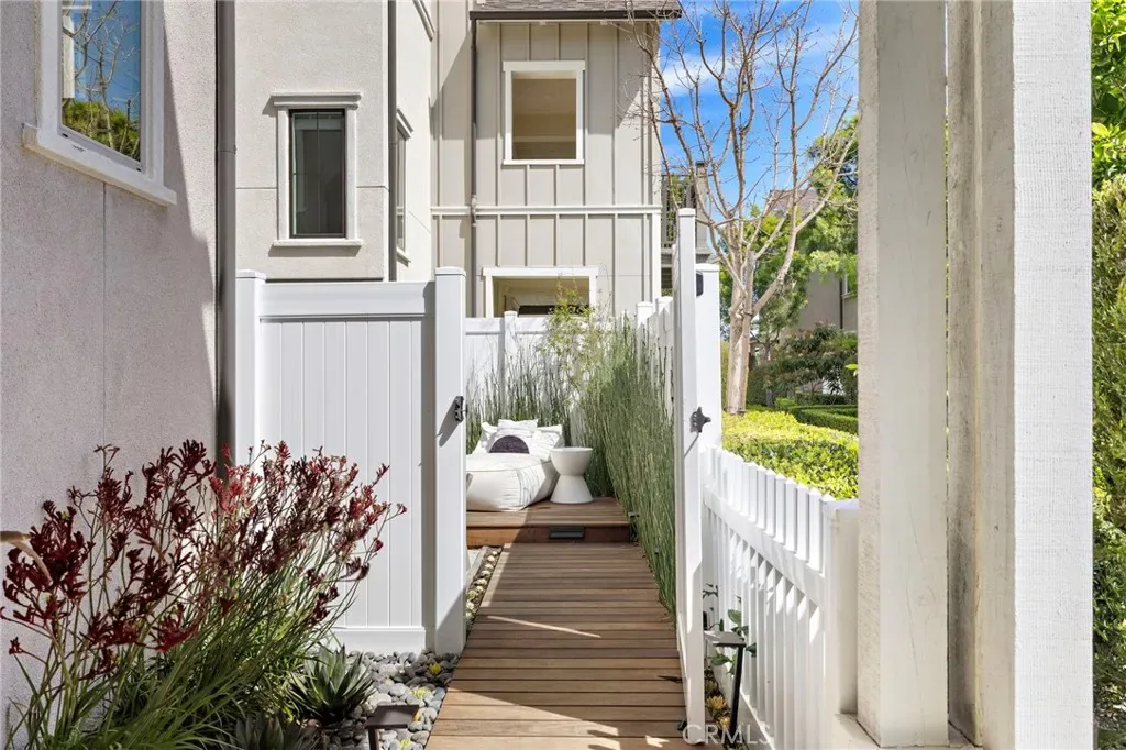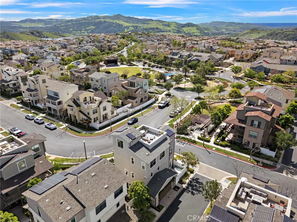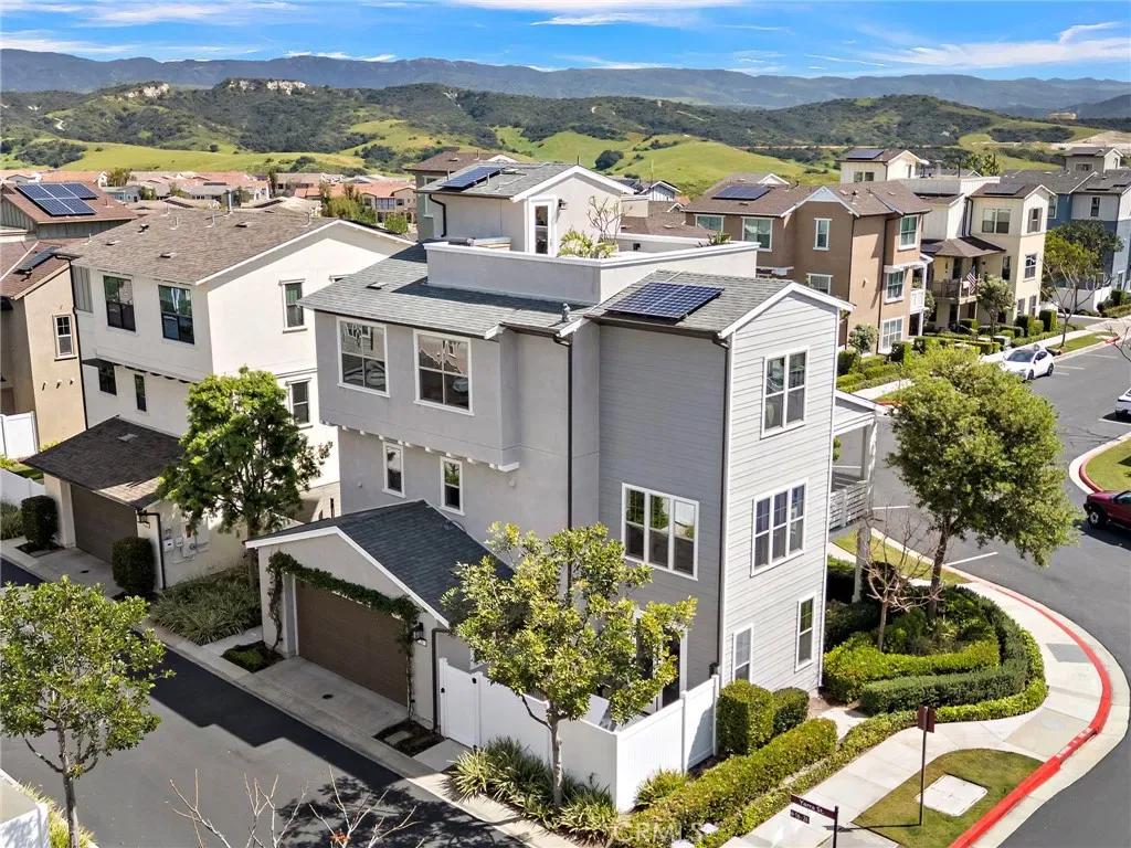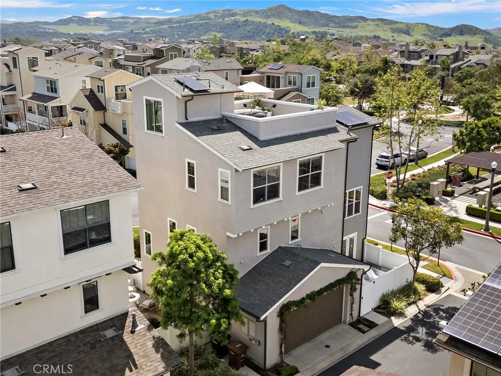Welcome to 26 Yerra Street, an exceptionally upgraded, single-owner Canopy residence in the coveted Esencia enclave of Rancho Mission Viejo, where refined design meets effortless Southern California living. Positioned on a premium corner lot and enhanced with approximately $200K in curated upgrades, this residence offers a rare blend of sophistication, comfort, and resort-inspired outdoor spaces. A striking red Dutch door and covered front porch set the tone, framed by mature, thoughtfully designed landscaping. Inside, elevated finishes include moisture-resistant luxury vinyl plank flooring, custom shiplap and board and batten detailing, and built-in bench seating with integrated storage, creating a warm yet refined aesthetic. The entry-level suite offers a private retreat with its own full bath, direct porch access, and a secluded outdoor escape featuring a plunge tub, outdoor shower, and designer tile—ideal for guests, multigenerational living, or a private workspace. Just beyond, an expansive and rarely found side yard has been transformed into an entertainer’s sanctuary with a raised IPE hardwood deck, multiple lounge areas, custom white concrete fire feature, tranquil water element, living succulent wall with handcrafted mandala focal point, and ambient landscape lighting for seamless indoor-outdoor living. The main living level is bright and open, anchored by a designer kitchen with upgraded appliances, custom backsplash, oversized island, expanded soft-close cabinetry, and generous pantry, flowing into dining and living spaces with custom built-ins and an elevated media wall, while a wraparound deck captures serene, private treetop views. Upstairs, the primary suite offers expansive hillside views and a spa-inspired bath with custom tilework and an oversized soaking tub, complemented by two additional bedrooms and a full bath. The rooftop deck showcases sweeping views of the Santiago and Santa Ana Mountains with peekaboo ocean views on clear days, complete with a built-in beverage station with sink and refrigeration for effortless entertaining. Additional enhancements include owned solar, whole-house water softening and filtration system with heavy metal and chloramine removal, re-mineralized reverse osmosis drinking water, one-touch hot water, motorized blinds, custom garage cabinetry, and upgraded closets. Ideally located near Esencia K–8, parks, scenic trails, resort-style amenities, and approximately 20 minutes from the beach.