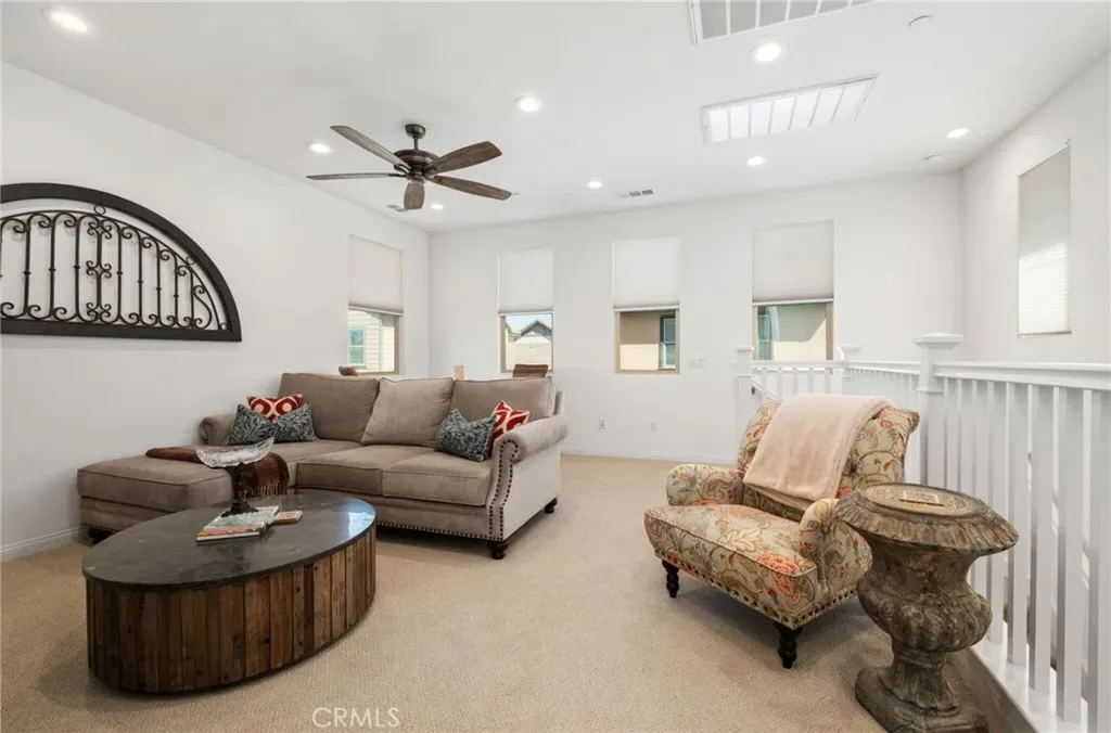 Welcome to the elevated 55+ resort-style community in Rancho Mission Viejo. This immaculate home has 3 Bedrooms and 3 full baths in just over 1,760 square feet. The entry flows right into the open kitchen with a large center island featuring quartz counters and stainless appliances. The 5 burner cooktop is framed with an elegant backsplash and under cabinet lighting. The large Primary is on the main level and includes a spa-like bath with a zero clearance shower with bench seating. The 2nd main floor bedroom is adjacent to a full bath. This makes for a great guest room or office. The laundry room is on the main level for ease of use and has beautiful upper and lower cabinetry and a nice quartz counter for work space. Upstairs is an additional Bedroom with a spacious loft area that can be used for games, movie nights or a private getaway for guests. The upstairs loft also features another full bath. The community of Gavlan at Rancho Mission Viejo is resort like with access directly above the property to Hilltop pool and social areas and also the Lookout pool and BBQ area. As part of the Gavlan over 55+ community, you will have access to all the beautiful pools, fitness centers, social clubs and events that make being a part of this community a very sought after feature.