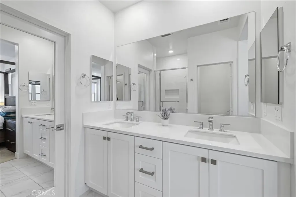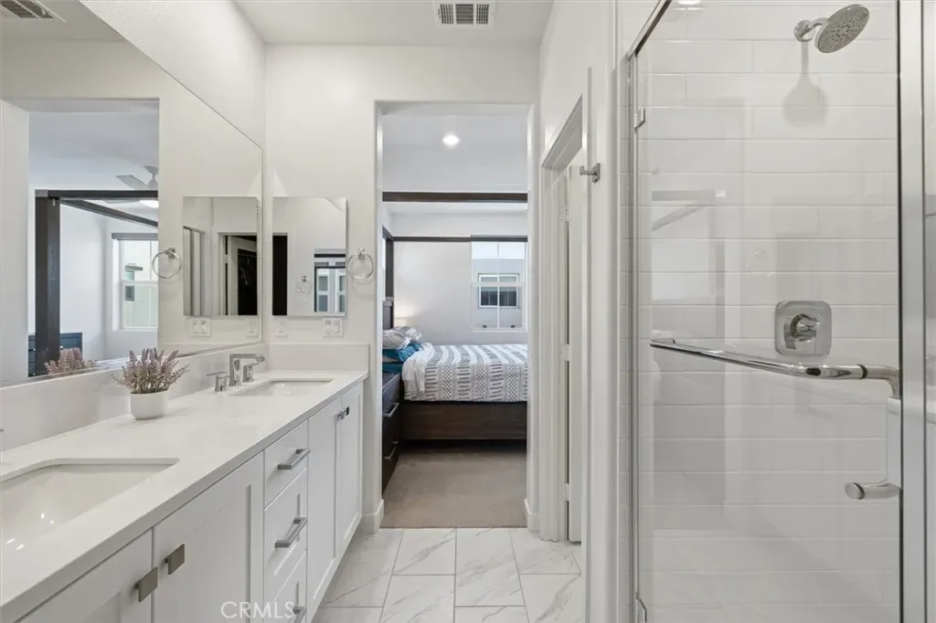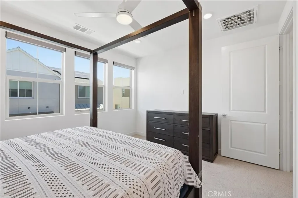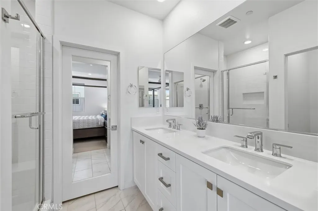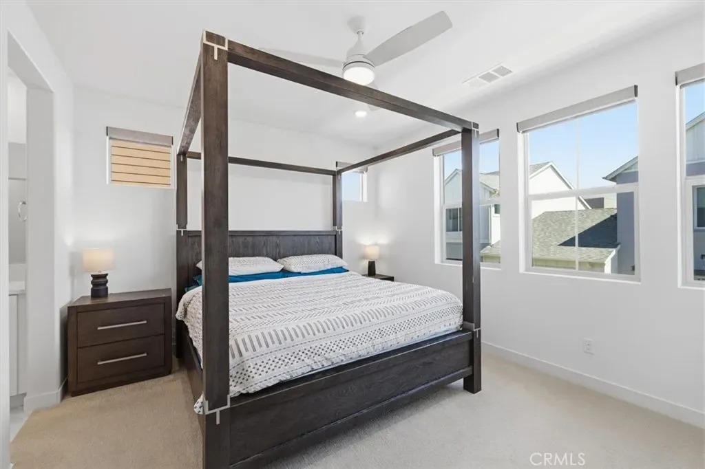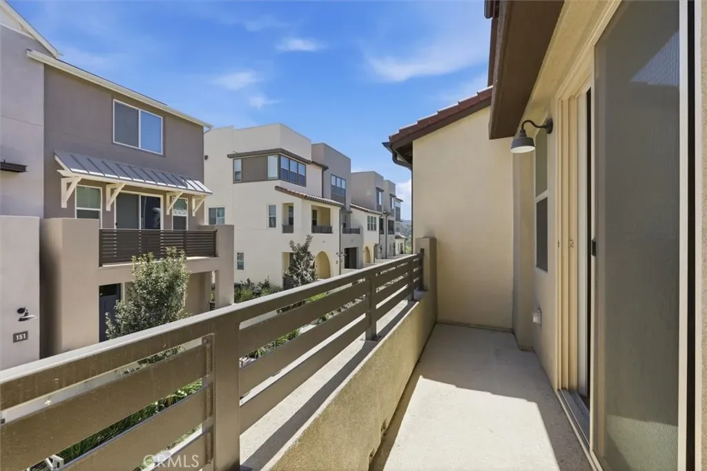 Welcome to this beautifully upgraded home in the highly sought-after Oasis neighborhood within the Village of Rienda of Rancho Mission Viejo, offering 2 bedrooms, 2.5 bathrooms, a versatile bonus room, owned solar panels, and a thoughtfully designed living space that blends modern comfort with effortless style. Step through the welcoming front patio and enter the first level, featuring a flexible bonus room perfect for a home office, study, or creative space. Upstairs, the open-concept living and dining areas flow seamlessly to a second-floor balcony, creating the ideal setting for both everyday living and entertaining. The modern kitchen features an expansive island with barstool seating, shaker-style white cabinetry, quartz countertops, walk in pantry, and stainless steel appliances. The top level offers two spacious bedrooms, each with its own private ensuite bathroom. Additional highlights include upstairs laundry, a convenient half bathroom off the living area, custom window coverings, upgraded flooring, ceiling fans, and a two-car garage with direct access and plenty of storage room. Enjoy indoor-outdoor living with both a gated front patio and a charming living room balcony, perfect for morning coffee or relaxing evenings. Ideally located just a short stroll from the new Boulder Pond, playground, and ample guest parking, this home is surrounded by the natural beauty and vibrant lifestyle that Rancho Mission Viejo is known for. Residents enjoy access to an exceptional array of resort-style amenities, including pools, fitness centers, clubhouses, Ranch Camp, community farms, sports courts, playgrounds, scenic hiking and biking trails, and more, offering not just a place to live but a lifestyle defined by comfort, connection, and the best of South Orange County living.