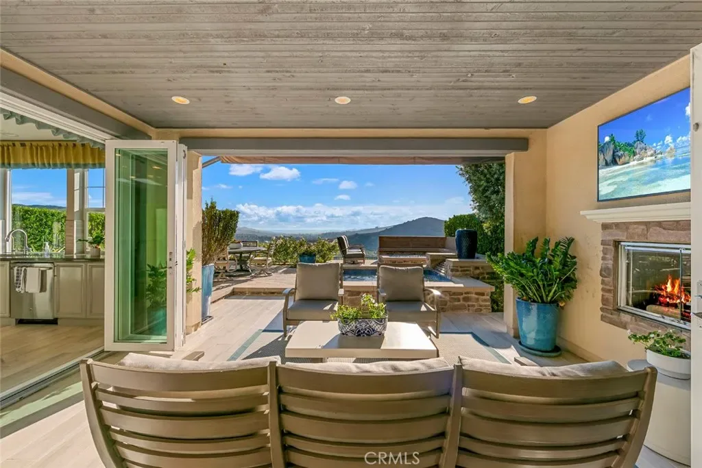 Welcome to one of Rancho Mission Viejo’s most remarkable view homes! An architectural masterpiece in the exclusive Ventana enclave in the award-winning community in Rancho Mission Viejo. This residence is designed for both grand entertaining and everyday luxury. The backyard is a private retreat featuring a custom-designed jacuzzi with a rare standing zone for a full-body hydro massage, a tranquil waterfall feature, gas fire pit, built-in BBQ with full appliances, and generous gathering space. All set against sweeping views and refreshing ocean breezes. The great room impresses with a 16-foot sliding glass door that seamlessly connects to the covered California Room, complete with fireplace, designer ceiling paneling, and a motorized retractable awning extending 16 feet for instant shade at the touch of a button. Inside, the kitchen is a chef’s dream, a built-in refrigerator, wine refrigerator, abundant cabinetry, and an oversized island invite both creativity and connection. The main level includes a full bedroom and bath, while upstairs offers a spacious loft and three additional bedrooms. The primary suite is a true sanctuary with panoramic views and a private balcony adorned with custom ceiling paneling. Additional premier features include epoxy-coated garage flooring with built-in cabinets, plantation shutters, custom closets, surround sound, and thoughtfully designed built-ins throughout. This home delivers the perfect balance of architectural design, modern comfort, and resort-style living, a rare find in one of Rancho Mission Viejo’s most coveted enclaves. Exclusive to Rancho Mission Viejo residents are all amenities in the Villages of Sendero, Esencia, Rienda and future Villages. There are community amenities for all from breath-taking resort-style pools and spas, Esencia school K-8, community farms, fitness centers, guest house, putting green, bocce ball courts, tennis and pickle ball courts, playgrounds, coffee shop, fire pits, an arcade and so much more!
