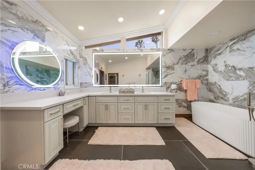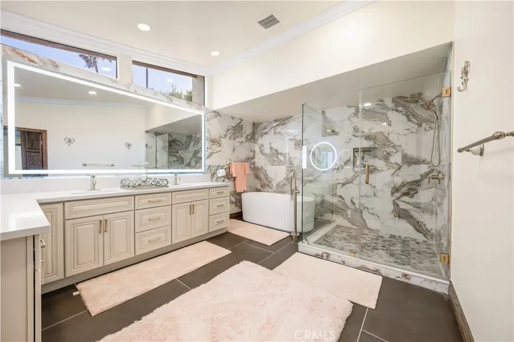 The main level includes a convenient bedroom with full bath. perfect for visitors or multi-generational living. A large bonus room offers flexibility as a home office, gym, or entertainment space. The fully new remodel kitchen include new cabinet , countertop ,flooring and all new appliances. built in refrigerator and so on.There is a large bonus room on the second floor for family entertainment The expansive primary suite features a sitting area and spectacular views, along with a luxurious new remodel bathroom complete with a soaking tub. All bathrooms and all wallpaper are new remodel .This home also be installed new AC ,New Exterior Stucco, New lights ,New garage flooring .