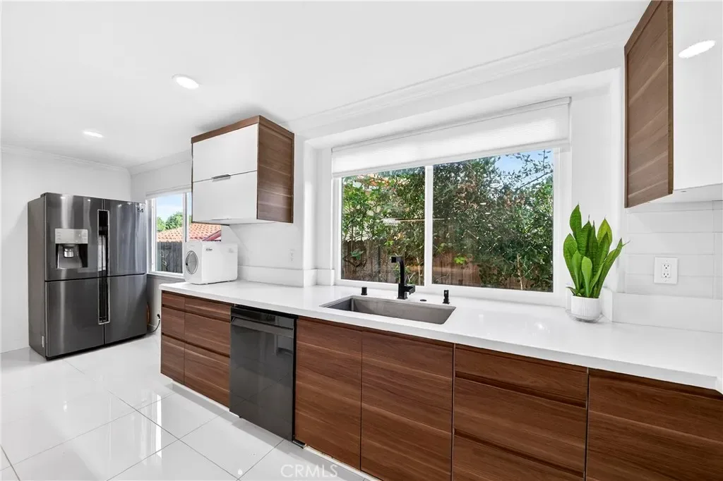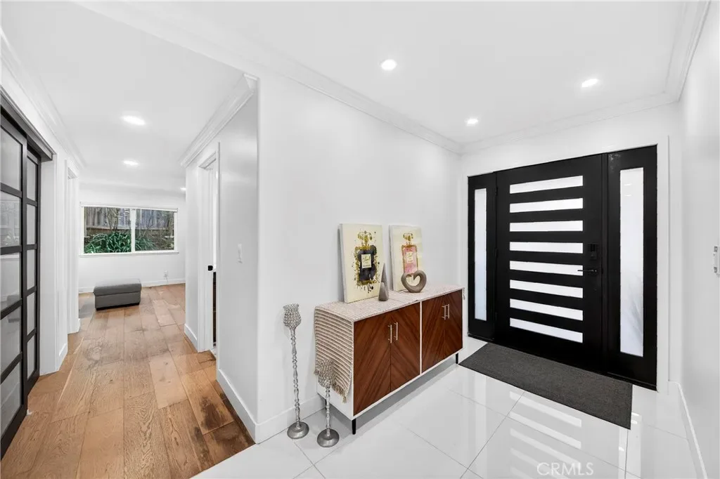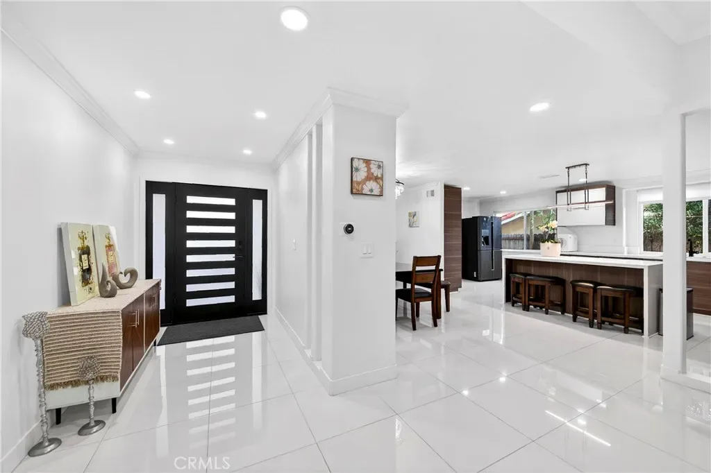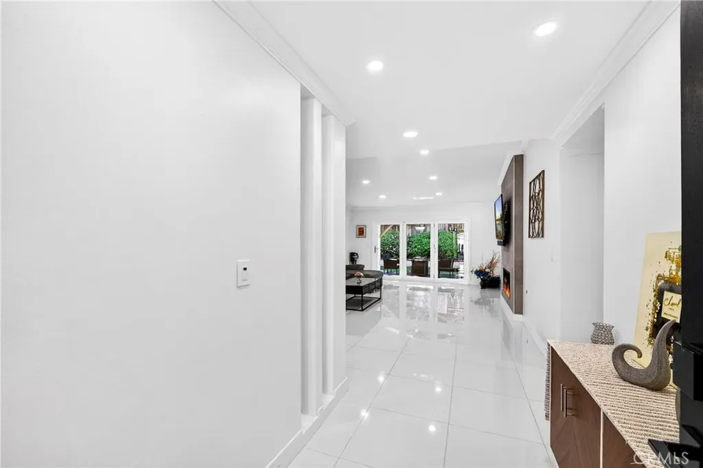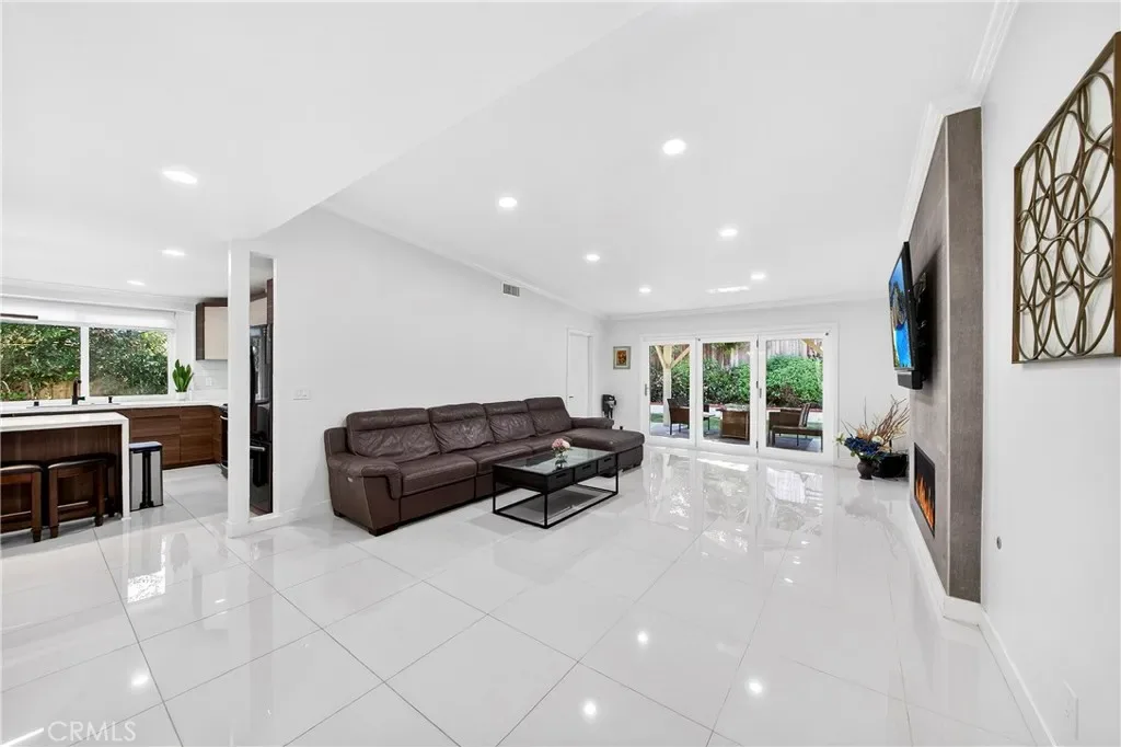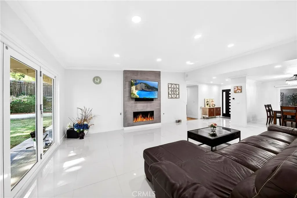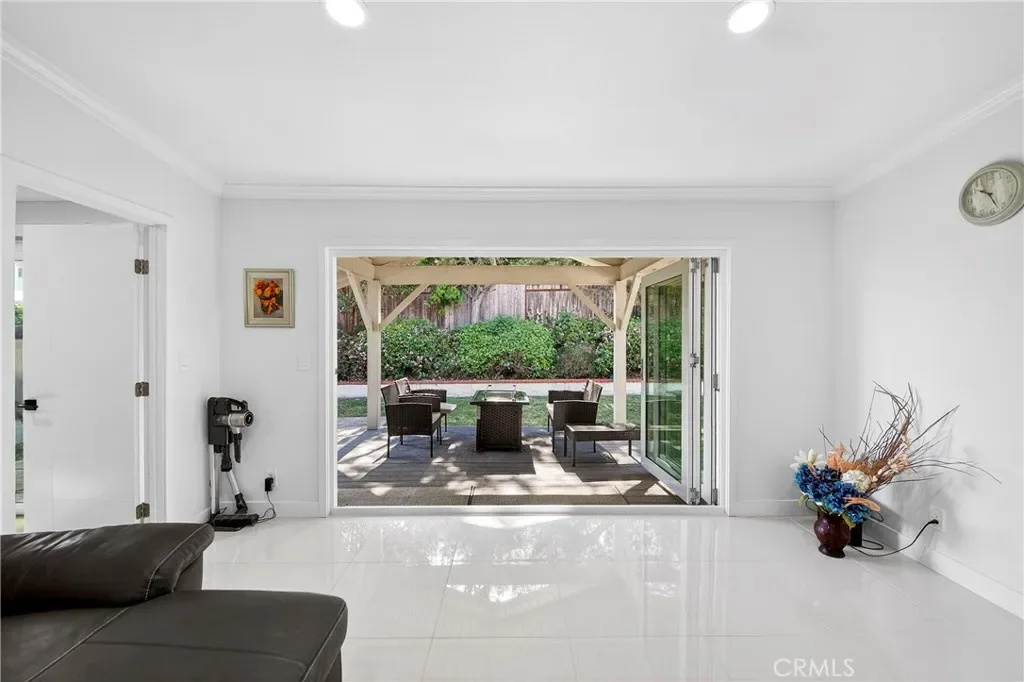 Experience refined single-story coastal living in this beautifully updated Spanish-inspired home, ideally situated in the rolling hills of Rancho Palos Verdes. Designed for effortless indoor-outdoor living, this residence showcases bright, open spaces enhanced by sleek tile flooring, crown molding, recessed lighting, and warm wood accents throughout. Your living room centers around its chic fireplace, a focal point for tranquil evenings or lively conversations, while bifold patio doors open wide to reveal a lush backyard that feels like a personal escape.