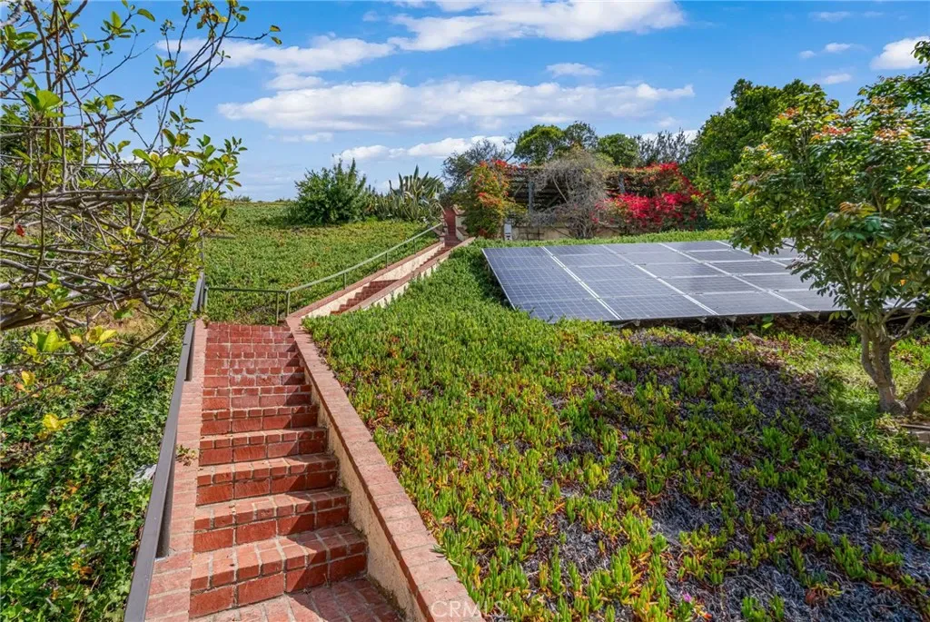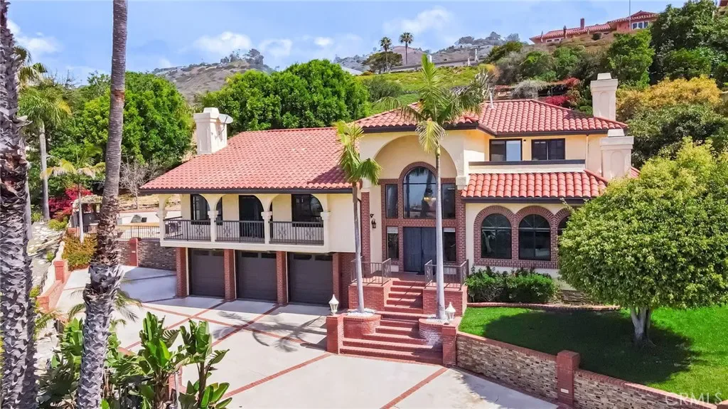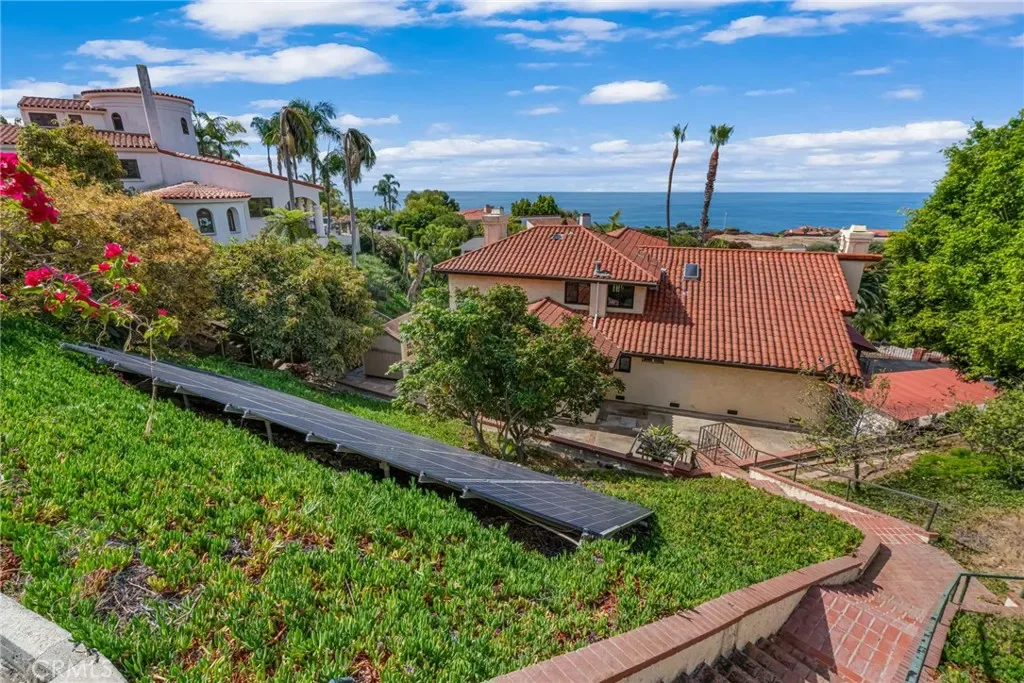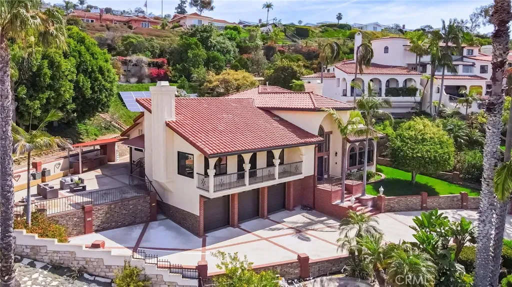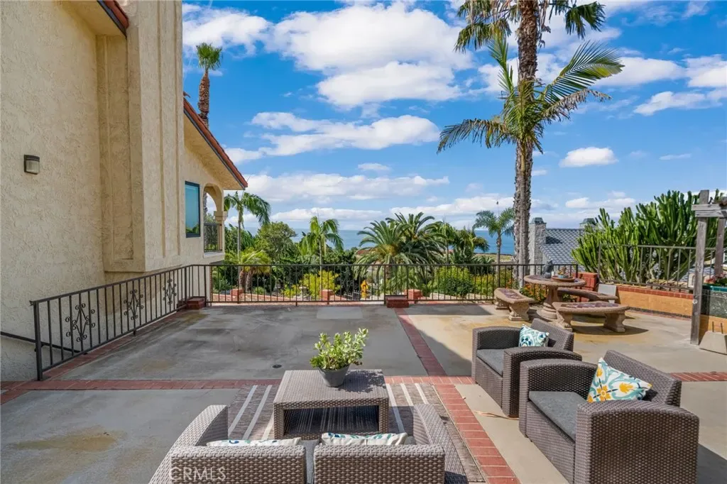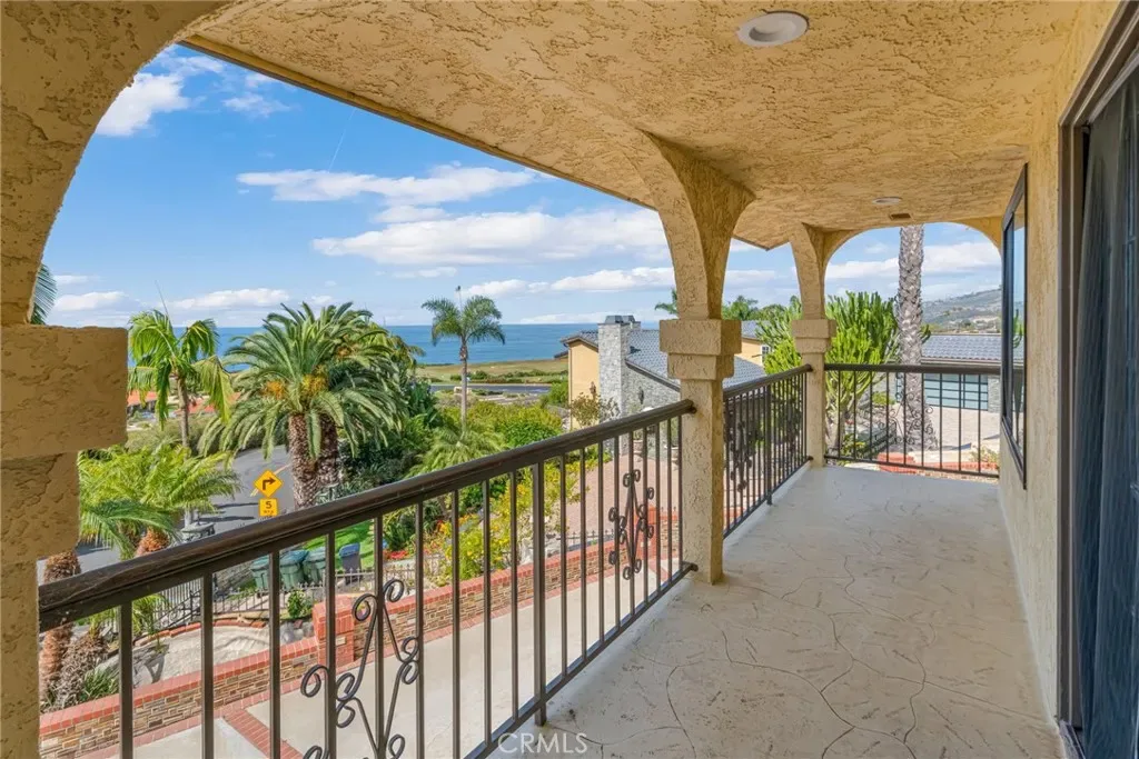 Perched above the Pacific coastline in a private cul-de-sac of just 8 residences, across from Trump National Golf Club, this custom-built estate captures mesmerizing views of the Pacific Ocean and a close and remarkably view of the Catalina Island from multiple vantage points. A concrete and brick-paved driveway leads to a grand double-door entry, opening to a dramatic two-story landing and split-level layout designed to maximize natural light and breathtaking vistas. Inside, the house has been updated throughout the years with wood floor, recessed lights, a remodeled kitchen, bathrooms and powder room. The living room features a fireplace and a wall of garden windows framing the Pacific. Meanwhile, the elevated formal dining room connects seamlessly to a remodeled chef’s kitchen with a breakfast nook, quartz countertops and abundant shaker-style cabinetry. A versatile bonus room next to the dining room offers flexibility as a tea room, office, or fitness space. The front-facing family room showcases soaring cathedral ceilings with exposed beams, a stately fireplace, wet bar with adjacent pantry, and French doors opening to a view balcony, perfectly positioned to take in stunning sunsets over Catalina Island. The private sleeping area includes an en-suite bedroom with walk-in closet, two additional spacious bedrooms each with its own adjacent bathroom, plus a powder room and storage. Occupying its own level, the ocean-facing primary suite is a true retreat, complete with a sitting area, fireplace, dual walk-in closets, and French doors opening to a large private view deck. The expansive primary bath offers dual vanities, a large shower, and a spa-like bath area with a freestanding tub. An additional private room provides ideal flexibility for a lounge, office, or gym. Set on appr. 32,000 sq ft, the outdoor spaces are equally impressive and designed to embrace the coastal backdrop. French doors from the kitchen and family room lead to a spacious view patio with BBQ kitchen, ideal for entertaining and al fresco dining against the ocean horizon. Ascending pathways reveal a large flat pad with potential for an ocean-view ADU, an upper-level view terrace, and a secluded sitting area at the top of the property, each offering serene, unobstructed views of the Pacific and Catalina Island. This is truly a rare opportunity to experience luxury coastal living with exceptional privacy, premier orientation, and seamless indoor-outdoor flow.