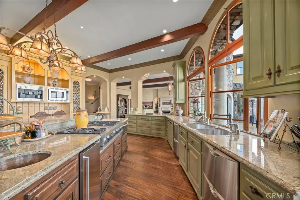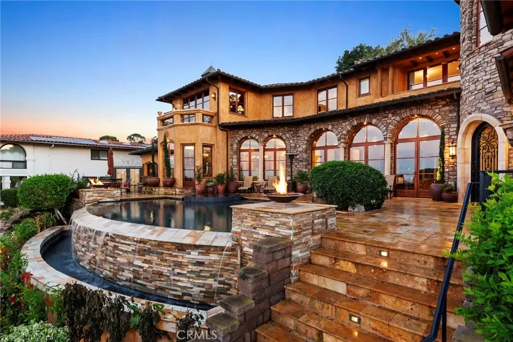 Available for the first time ever, 4 Yellow Brick Road is a custom Italianate estate tucked away on a private cul-de-sac shared by only seven homes. Defined by timeless architecture, exceptional craftsmanship, and sweeping coastal views, the residence stands as a true original. Designed by renowned architect Doug Leach, the home has been featured in magazines and commercials and has influenced multiple South Bay residences since its completion in 2005. Built as a forever home, the owners worked closely with the architect to create a floor plan that seamlessly balances multigenerational living with elevated entertaining. Spanning 6,468 square feet on an over half-acre lot, the home is thoughtfully oriented to capture 180-degree ocean and city views from nearly every room, creating a constant connection to its elevated setting. Ideally located within walking distance of the Palos Verdes Golf and Tennis Club and just minutes from Riviera Village and Redondo Beach, the property also offers convenient access to acclaimed restaurants and scenic coastal trails. The residence offers five bedrooms plus a library that functions as a sixth bedroom, along with seven bathrooms and an impressive collection of resort-style amenities. A Skip Phillips designed infinity pool and spa anchor the outdoor spaces, surrounded by lush gardens and multiple private areas for entertaining. Inside, a home theater with a 110-inch screen, two-stop elevator, and temperature-controlled wine cellar provide comfort and convenience. The chef’s kitchen features custom French Traditions cabinetry, Miele double ovens, a full-size Sub-Zero refrigerator, warming drawers, a built-in espresso machine, and an expansive butler’s pantry ideal for hosting memorable gatherings. Upstairs, the primary suite serves as a private retreat with double walk-in closets, a spa-like his-and-hers bathroom finished in honey onyx marble, and a jetted tub overlooking both Downtown Los Angeles and the Queen’s Necklace. Hand-selected finishes throughout include lighting by Fine Art, Belgard stone retaining walls, an Olympic stone pool deck, imported Italian tile and brick, walnut hardwood flooring, natural limestone, ceiling beams sourced from a historic French barn, and gates accented with wood imported from India. Rare and emotionally compelling, this is a home that must be experienced to be truly appreciated. An opportunity that comes along once in a lifetime.
