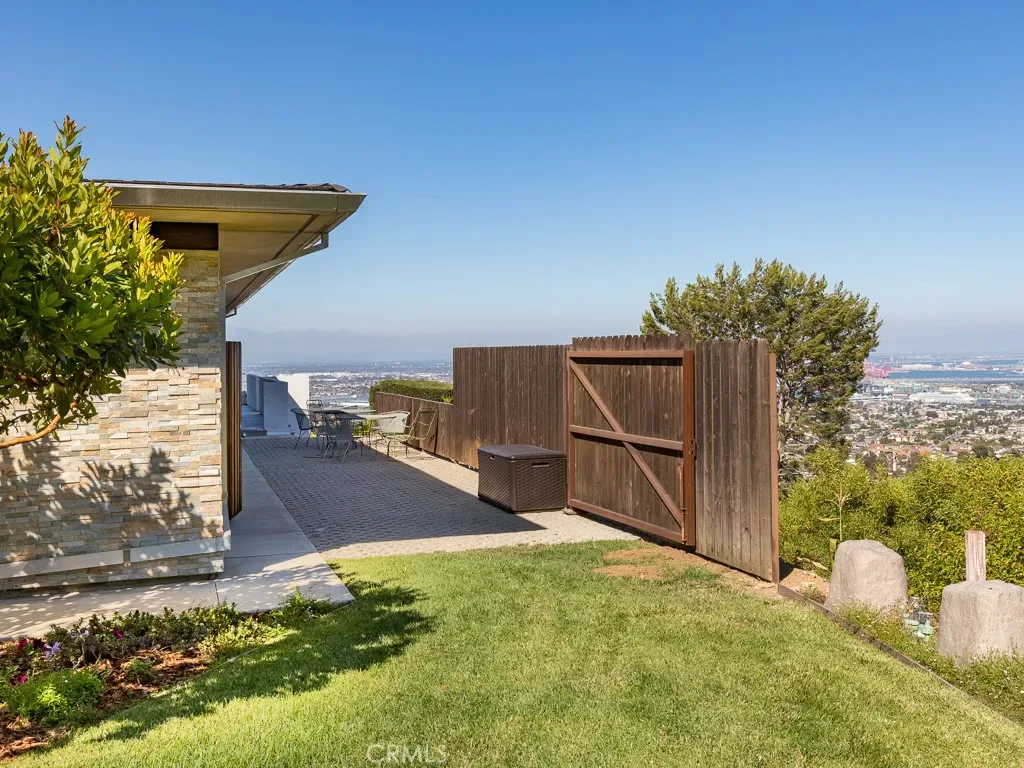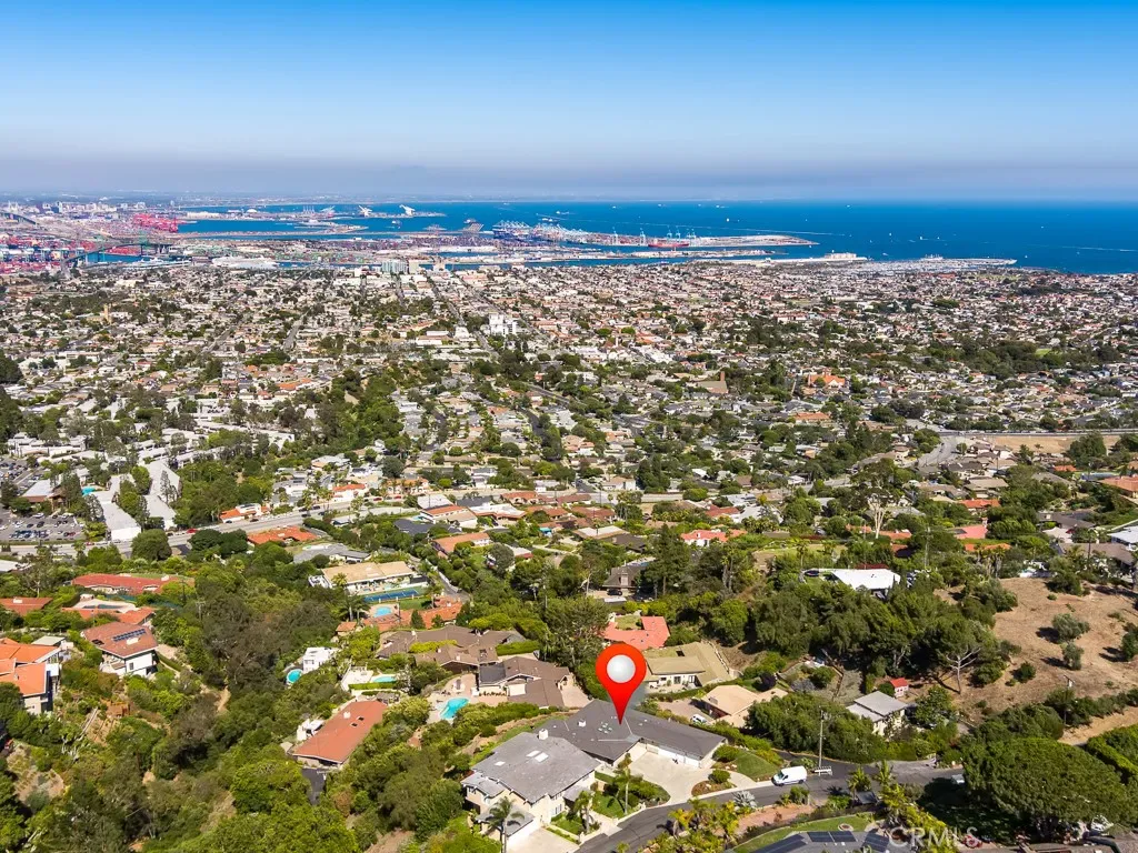 VIEWS, VIEWS, VIEWS! The Frank Lloyd Wright’s architectural style home was completed in 2012, this unique home captures panoramic views of mountains, city lights, harbor, ocean and beyond. While keeping its simplicity, the open living not only enriches the secluded La Vista Verde Estates landscape, but also embraces natural lights with meticulous details. Skylights and plantation shutters showcase the masterpiece. Over 4500 Sq.Ft. living space with 10 foot high ceilings and 8 foot doors. Brazilian teak hardwood adorn the floors the 5 bedrooms and 4 bathrooms offer peaceful and quite resort living. You can entertain guests in both private and open sittings, formal dining room with ocean view and a wet bar. The gourmet kitchen is wrapped with a continuous wall of glass showcasing the incredible blue ocean. The entry level is self contained with garage access to the master suite, additional bedroom/office, kitchen, family room and den and they all opening to a 8 foot deep wrap around balcony creating the ultimate retreat. Exterior camera system as well as Sonos system with indoor and outdoor speakers are found through out the home. Outdoor adventurists will enjoy a pool size rear yard, covered patio with wood inlaid ceilings, oversized 3-car garage, and spacious side yard are ready for your boat and recreation vehicles. Trump National Golf Course and Terranea resort are just minutes away. Residents have access to the top-ranked Palos Verdes Schools such as Mira Catalina Elementary, Miraleste Intermediate, and your choice from two of the top ranked high schools in California. Opportunity does not come too often, come and claim the pride ownership of this luxury property.