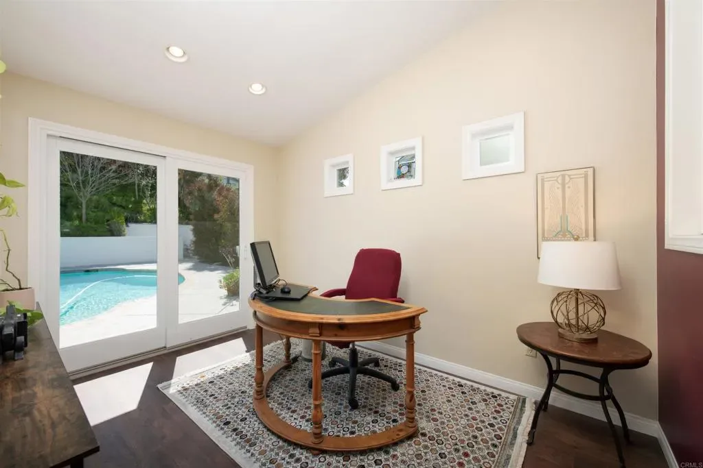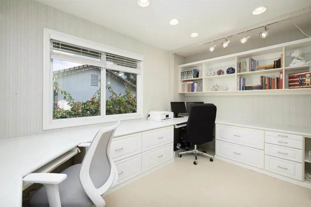 If you’ve been searching for a custom remodeled and expanded home in an award-winning school district on the famous Christmas Card Lane in Rancho Peñasquitos, your search ends here. This thoughtfully designed residence offers 4 bedrooms, a dedicated home office, 3.5 bathrooms, and a two-car garage with ample built in storage. A spacious bonus room—complete with its own kitchenette and bathroom and conveniently located near the pool—was designed to accommodate social gatherings of all kinds. With nearly 3,000 sq ft of highly flexible, open-concept living space, the kitchen sits at the heart of the home, creating a natural hub for everyday living and entertaining. Over 35 windows, sliders, and skylights flood the home with natural light. A one-of-a-kind covered rooftop deck overlooks a private backyard. The home is equipped with entertainers’ double ovens, ideal for hosting, and fully paid-for solar, delivering long-term energy efficiency and added value. Ideally located close to highly rated public elementary, middle, and high schools, and set in an established, desirable neighborhood offering a wide variety of sports, enrichment, and community amenities. A rare opportunity for flexible living, entertaining, and long-term comfort.
