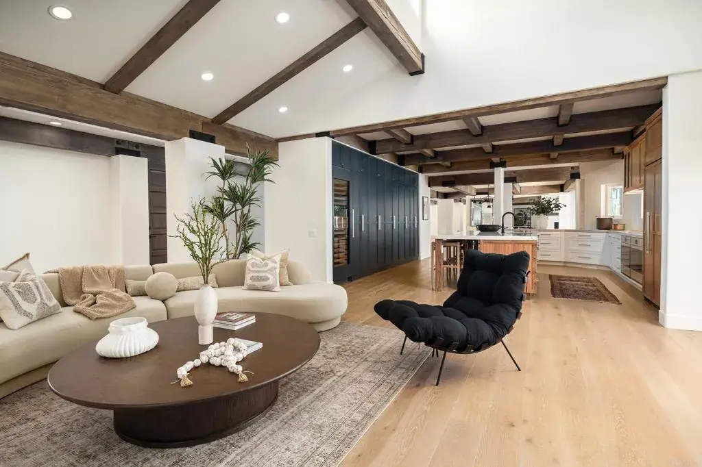 Positioned in the heart of Rancho Santa Fe’s historic Covenant, 6449 Las Colinas stands as a refined Spanish Modern estate—where timeless architecture is reimagined for today’s lifestyle. Recently renovated from the main residence to the guest house, every space showcases a balance of classic design and contemporary sophistication. A circular drive introduces the home with a graceful arrival, highlighting smooth white stucco walls, espresso-framed windows, and mature landscaping. Inside, natural light pours through expansive windows and sliding doors, accentuating European oak floors, custom cabinetry, and open-beamed ceilings that lend warmth and character. The chef’s kitchen is the centerpiece, appointed with Wolf and Sub-Zero appliances, an oversized island, and effortless connection to the dining and living spaces—ideal for both entertaining and day-to-day living. Multiple fireplaces, curated finishes, and seamless indoor-outdoor flow elevate the atmosphere throughout. Resort-style amenities define the grounds, with a private pool, full-size tennis court, and a detached guest house offering luxurious accommodations for visitors or extended stays. Every element has been thoughtfully designed to maximize comfort, privacy, and connection to the outdoors. The primary suite is a private retreat with vaulted ceilings, spa-inspired bath, and direct access to the backyard sanctuary. Designer lighting, high-end fixtures, and a versatile floor plan complete the home’s elevated living experience. As part of The Covenant, residents enjoy direct access to miles of equestrian trails, the Rancho Santa Fe Golf Club (social membership included others require separate membership(s)), award-winning Roger Rowe School, and the community’s unmatched lifestyle—without the restrictions of a gated enclave. A rare offering where historic Spanish charm and modern refinement meet in one of Southern California’s most coveted addresses.
