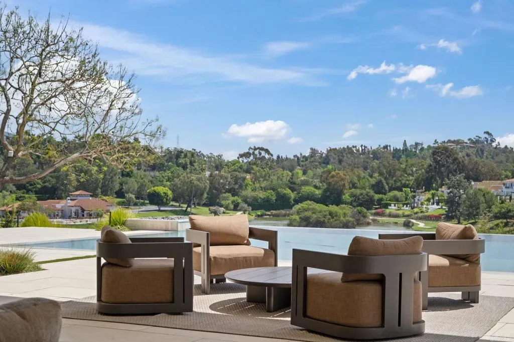 Introducing one of the most iconic and historically significant estates in all of Fairbanks Ranch—a true legacy property known as “The Jewel of Fairbanks.” Originally selected by Douglas Fairbanks himself, this extraordinary homesite represents one of the most coveted vantage points in the entire community. Completed in 2025 after an extensive three-year rebuild, this architectural masterpiece offers approximately 12,215 square feet of total living space (including covered areas, ADU, and garage), thoughtfully designed to capture breathtaking 270-degree panoramic views overlooking the north side lake, clubhouse, and beyond—all with ideal southwest-facing exposure for stunning sunsets. Privately gated and positioned at the end of one of Fairbanks Ranch’s most desirable cul-de-sacs, the estate delivers unmatched privacy while offering direct access from the property to the community’s walking trails, clubhouse, park, and tennis courts—a rare and highly sought-after lifestyle advantage. Inside, the residence blends grand scale with modern luxury, featuring two full interior kitchens, plus a fully equipped outdoor kitchen and separate ADU kitchen, two powder rooms, three interior fireplaces and four outdoor fire features, a total of six garage spaces. The primary suite is a true wellness retreat, anchored by a spa-inspired bathroom complete with an expansive sauna, steam room, and soaking tub—designed for ultimate relaxation and rejuvenation. Seamlessly integrated with a state-of-the-art Crestron smart home system, nearly every element of the estate is controlled at your fingertips—including lighting, climate, window shades, security, and fire features. The property is equipped with 22 security cameras, four Tesla backup batteries, and approximately 64 fully owned slope mounted solar panels, delivering both cutting-edge convenience and energy efficiency. The grounds are equally extraordinary, designed for both resort-style living and everyday enjoyment, a dramatic 1,100 sq ft infinity-edge pool, sport court for pickleball and basketball, bocce ball court, lush organic gardens and fruit orchard. This is more than a home—it’s a once-in-a-generation opportunity to own one of Fairbanks Ranch’s most prestigious and storied estates, where history, privacy, and modern luxury converge on an irreplaceable piece of land.