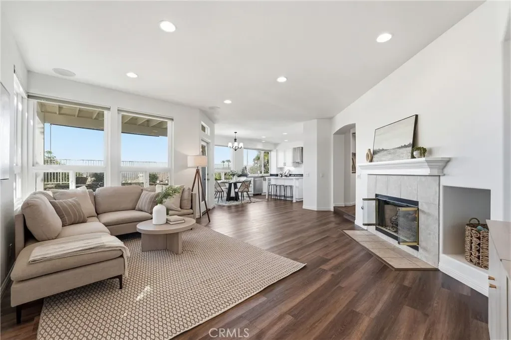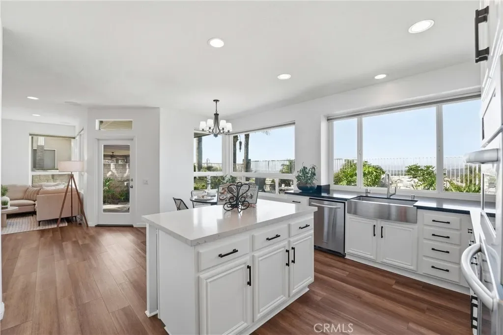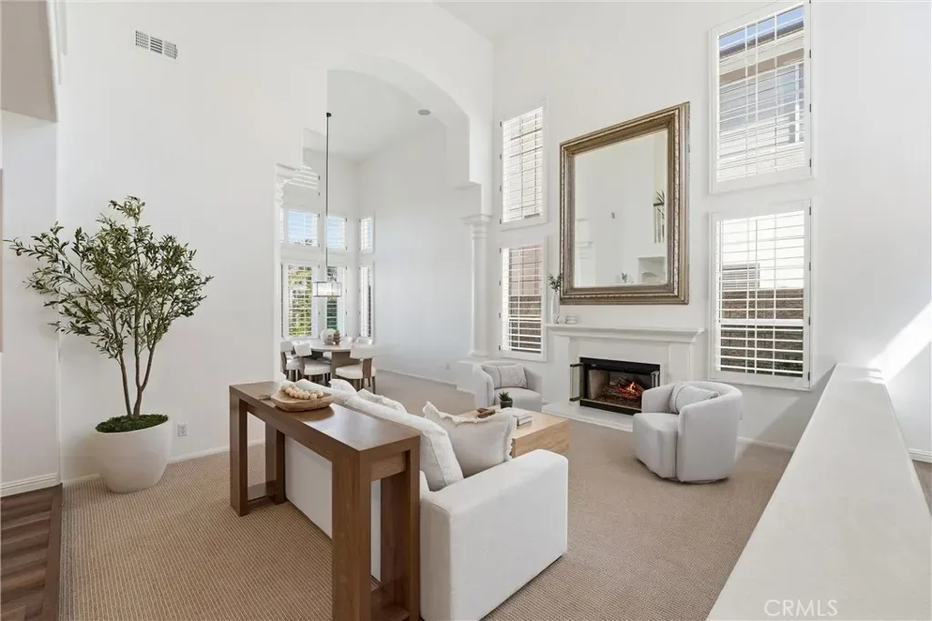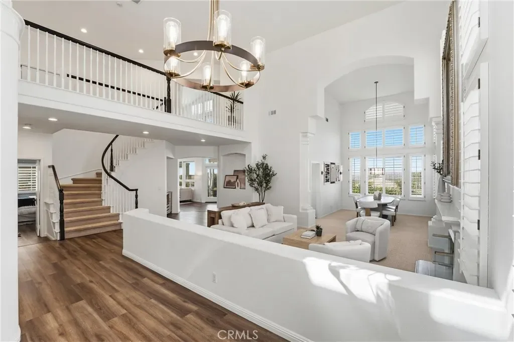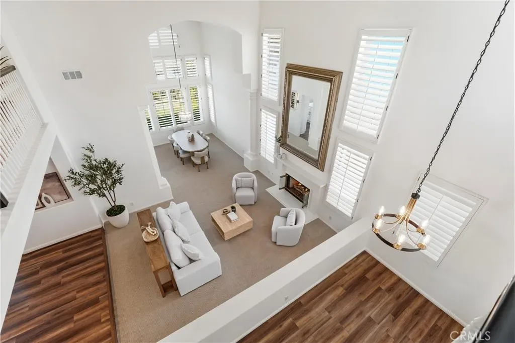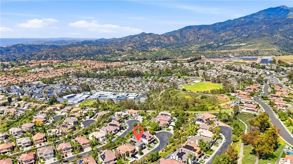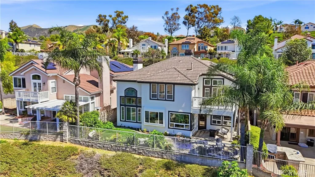 Welcome to your destination home in the gated community of Walden in Trabuco Canyon where breathtaking views, thoughtful design & everyday comfort come together in perfect harmony. This beautifully updated contemporary residence offers a highly desirable open floor plan. A grand double-door entry past a sparkling water feature welcomes you, setting the tone for effortless lifestyle awaiting inside. Step into the light-filled living & dining rooms w/ soaring vaulted ceilings – a dramatic yet inviting atmosphere. The living room features an elegant fireplace while formal dining room windows frame panoramic west-facing views of rolling hills, spectacular sunsets, where nature’s brush paints breathtaking vistas each evening. The remodeled kitchen is the heart of the home, thoughtfully designed with modern finishes & seamless flow into the family room—perfect for gatherings large or small. Ideal for multi-generational living, the first floor includes a private bedroom with its own en-suite newly redesigned bathroom, offering comfort & flexibility for guests or extended family, in addition to an upgraded guest powder room & a spacious laundry room. Upstairs, your airy primary suite is a true retreat featuring its own fireplace, panoramic views, en-suite bathroom with a new step-in shower, as well as a soaking tub adjacent to the fireplace. Additional bedrooms & bonus room (currently an office) provide plenty of space for family, work, or hobbies. Hallway bathroom is a freshly redesigned space w/ a brand new shower & dual vanity w/ new light fixtures. Recent improvements include owned solar, flooring, dual-pane windows & fresh interior & exterior paint. Step outside to your easy-to-maintain backyard oasis, where a covered patio & a tranquil waterfall create the perfect setting for relaxing or entertaining while enjoying the dreamy panoramic views. The soothing sounds of winds caressing palm fronds feed your spirit. Additional highlights include a 3-car garage & access to a tranquil community pool and spa, a picturesque catch-and-release fishing pond, and beautiful natural surroundings. Walden is conveniently located near award-winning schools, major employment centers & shopping, dining & entertainment; nearby hiking & biking trails nurture your adventurous spirit. Rarely does a property combine scenic beauty, modern updates & versatility in such an exceptional setting. Come experience the lifestyle … this is more than a home, it’s a destination!